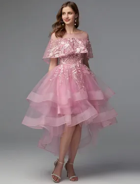 A-Line Elegant Dress Holiday Asymmetrical Sleeveless Illusion Neck Lace Tie Back with Lace Insert -