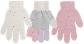BCBG Girls Little Kid Warm Winter Stretchy Sparkly Rhinestone Magic Knit Gloves - Cute Fall Winter Accessories (3 Pack) -