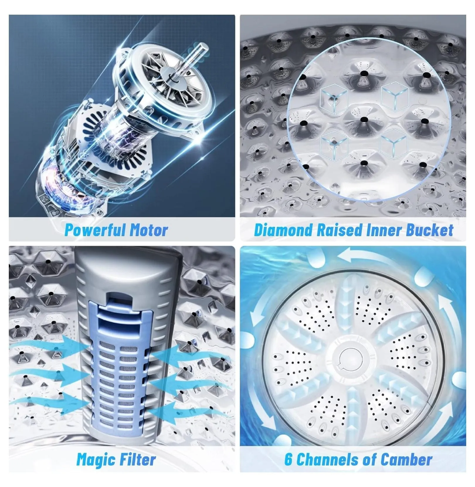 Experience the ultimate convenience with our portable washing machine, designed to revolutionize the way you do laundry. This compact, efficient appliance combines cutting-edge technology with user-friendly features, making it the ideal solution for busy lifestyles. With its space-saving design, it fits easily into any home, and its powerful washing cycle ensures your clothes come out clean and fresh every time. The portable washing machine is equipped with advanced sensors and controls, allowing you to customize settings for different types of fabrics and levels of dirtiness. Plus, its energy-efficient operation saves money on utility bills. Say goodbye to the hassle of lugging heavy loads to the laundromat and hello to a new era of laundry freedom.