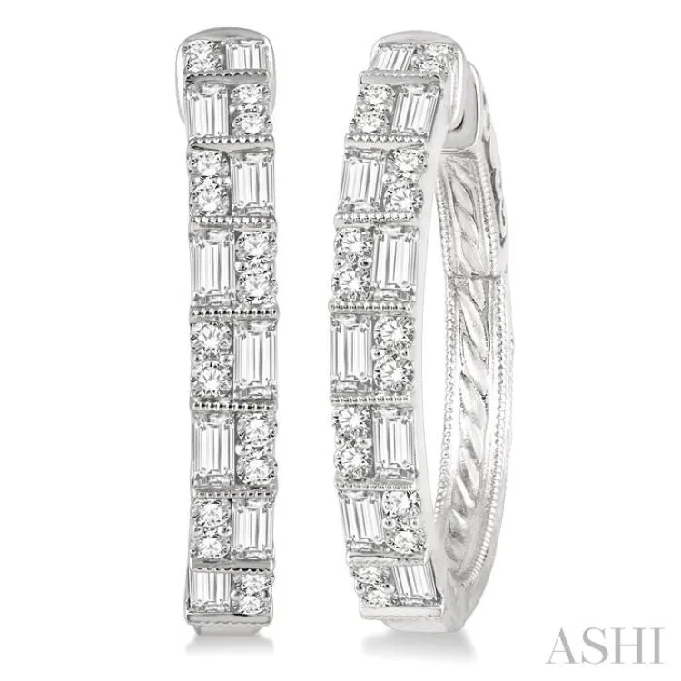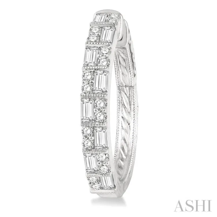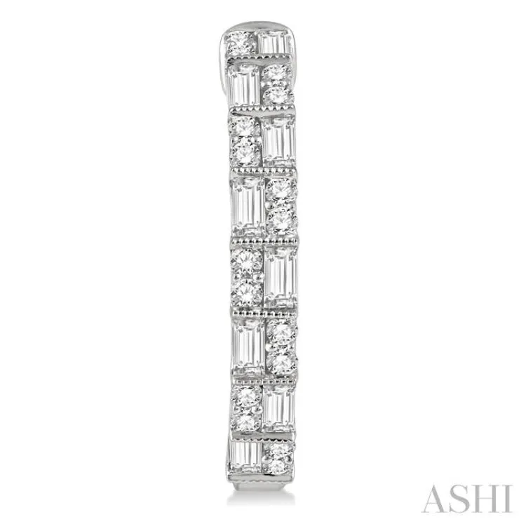 1 ctw Basket Weave Baguette and Round Cut Diamond Hoop Earrings in 14K White Gold