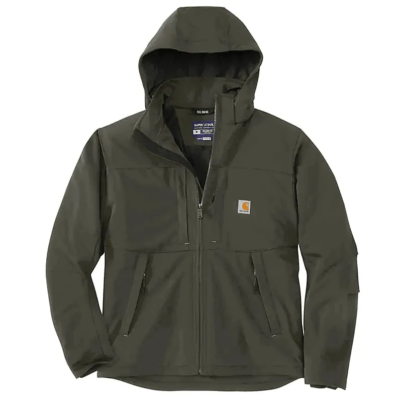 Work or play, when the weather turns damp and windy, this men's Super Dux® insulated jacket keeps you warm and mobile. It's named after the original Carhartt hunting gear from the 1930s, but it features modern insulation and a lightweight, low-profile feel that flexes for an unrestricted feel. Back pleats and underarm gussets make sure you always have room to swing an axe or reach over your head. It's also wind-resistant, sheds light rain, and is more abrasion-resistant than our traditional duck canvas. An adjustable hood and plenty of pockets make sure you're always prepared.