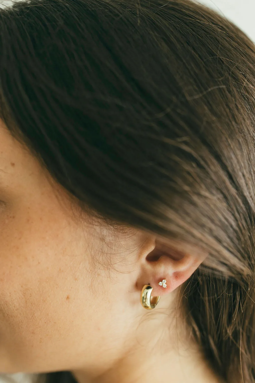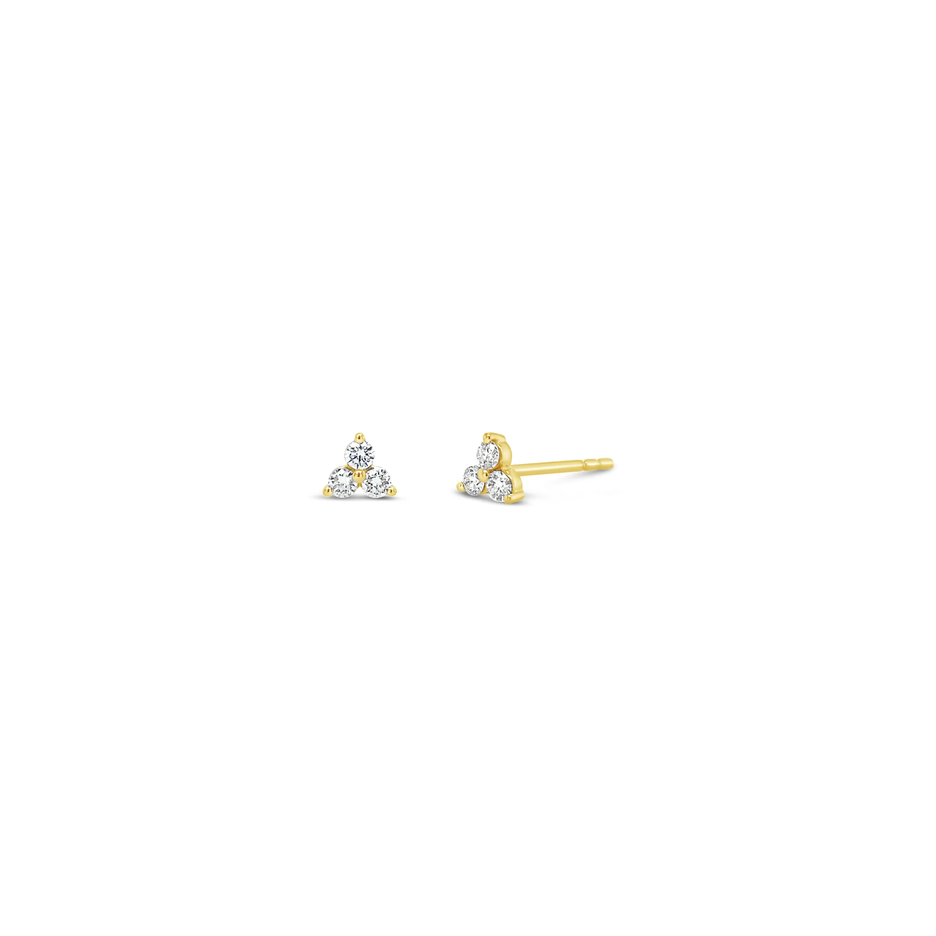 Our Diamond Trio Studs offer a classic, elegant design with three shimmering diamonds that add a touch of sparkle to any ensemble.