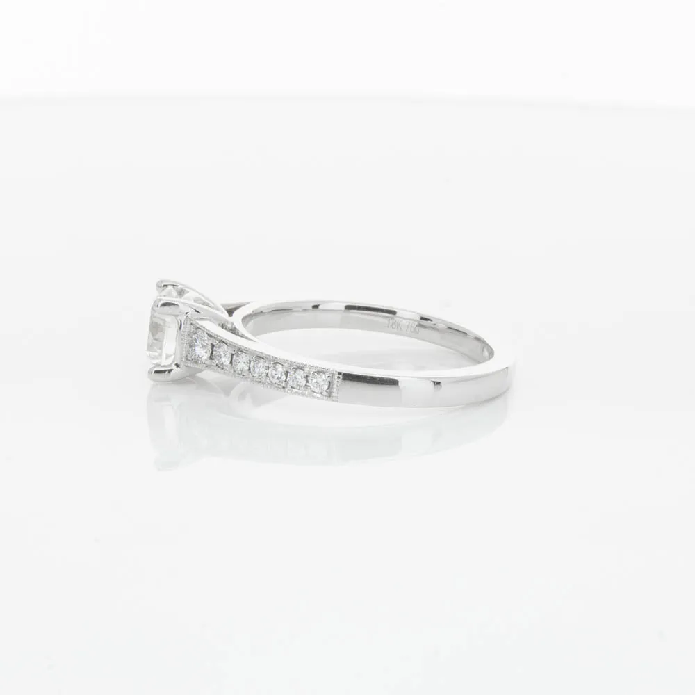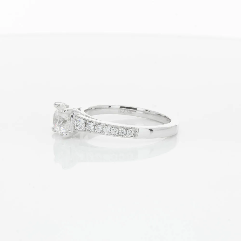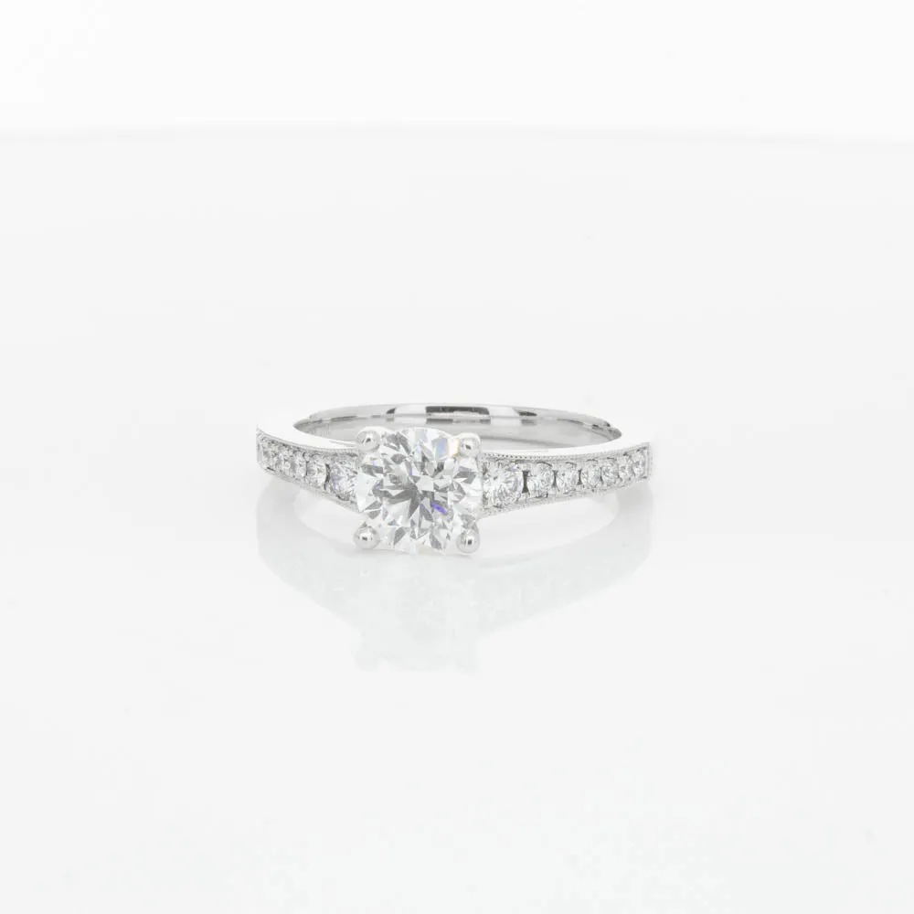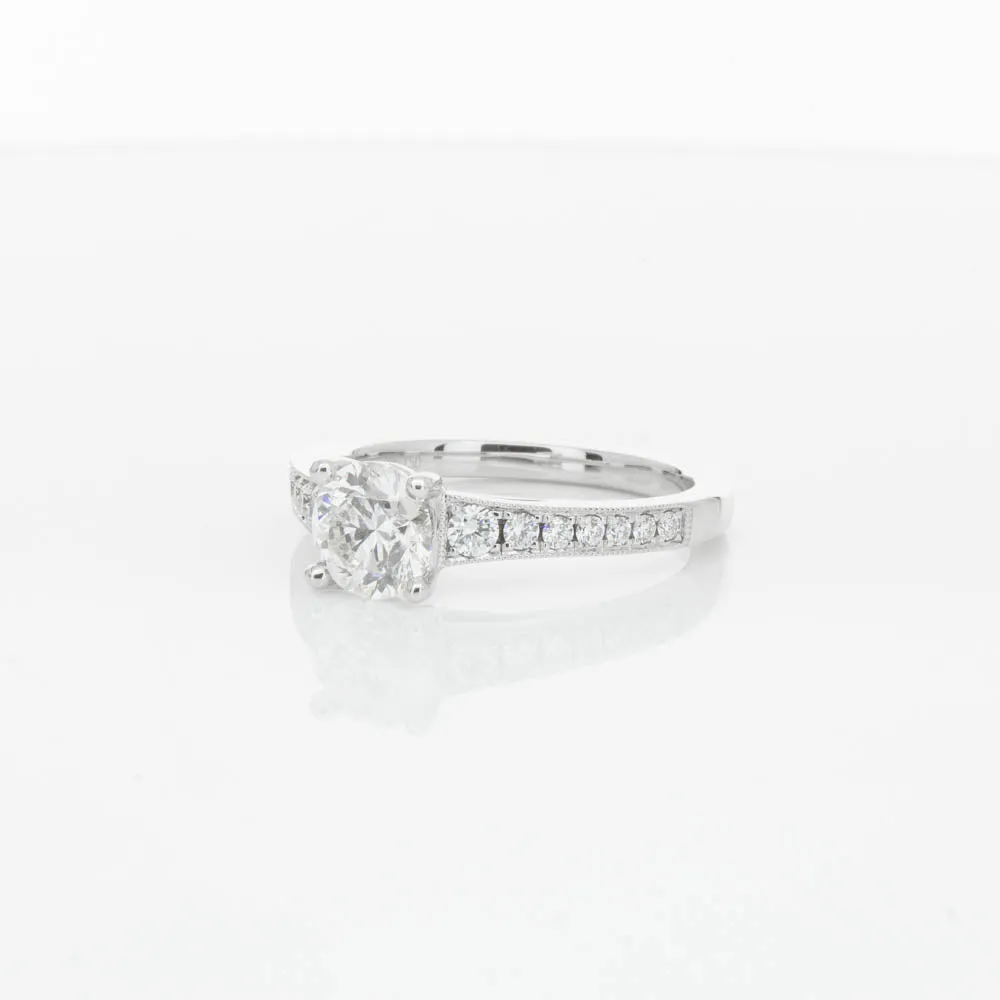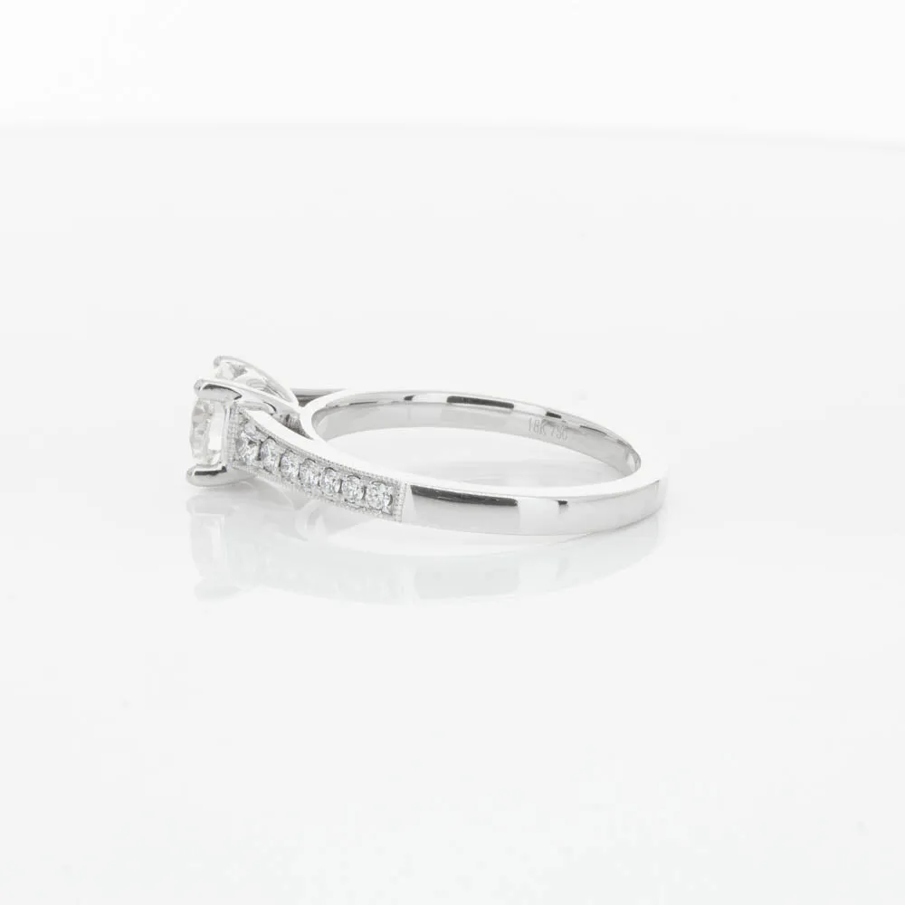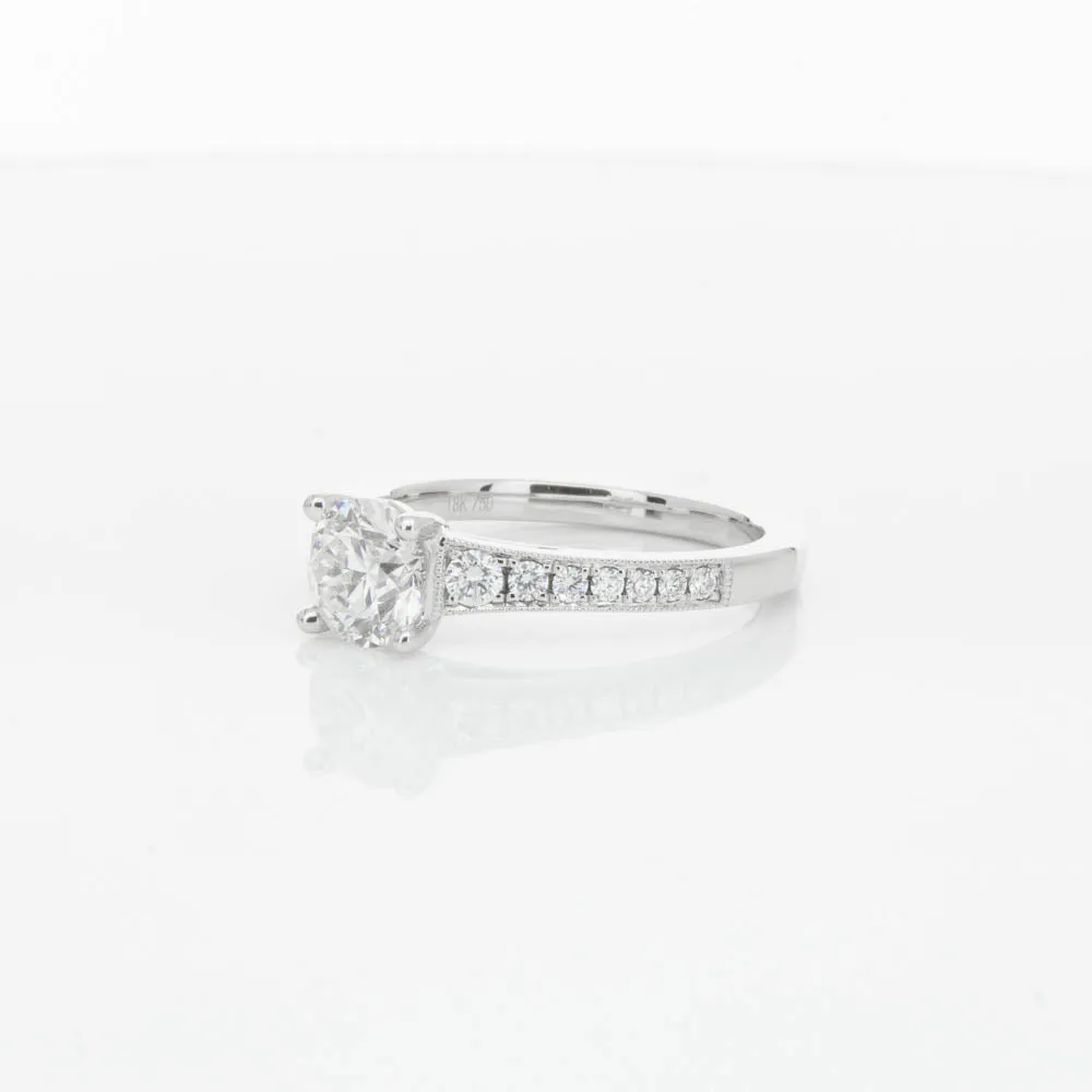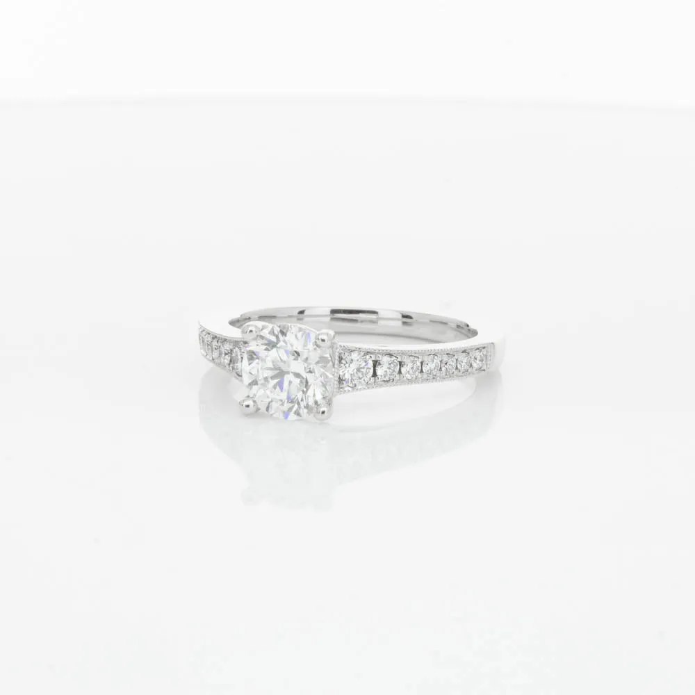 This impressive ring features a magnificent 1.01ct dazzling round brilliant cut diamond with bead set shoulders skilfully set in 18ct white gold from our signature 1899 collection.