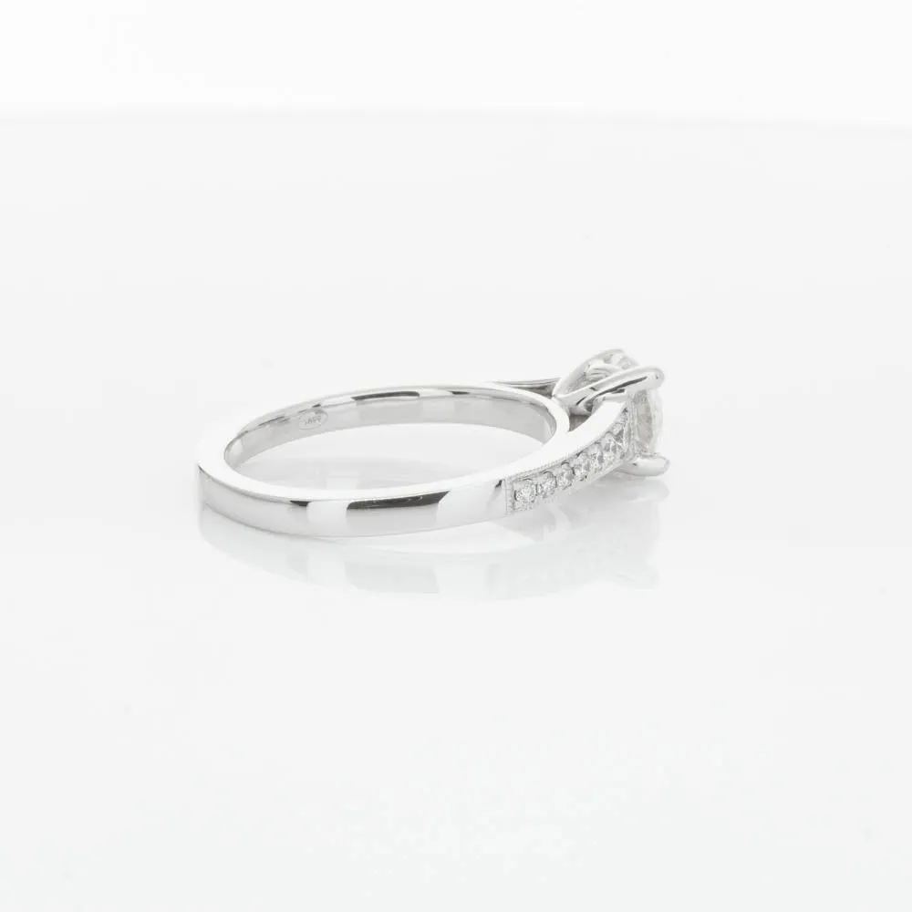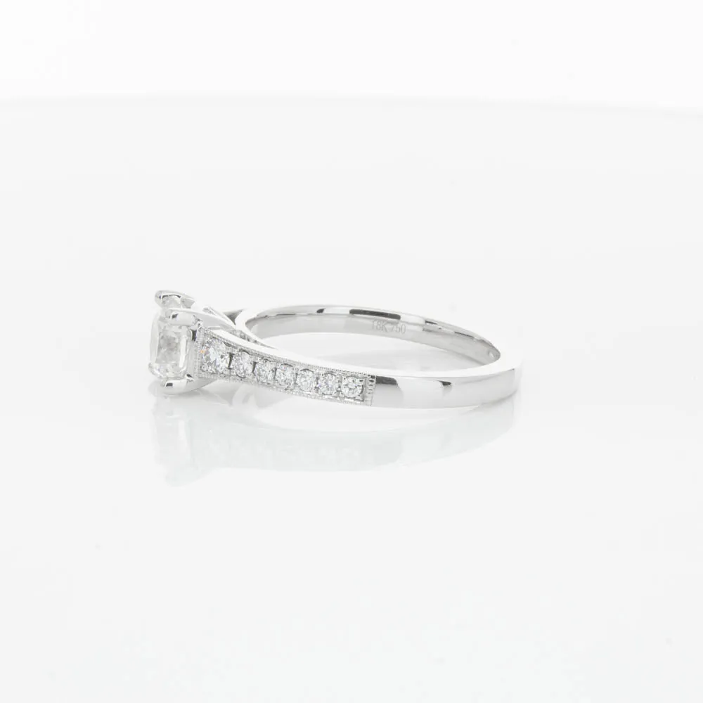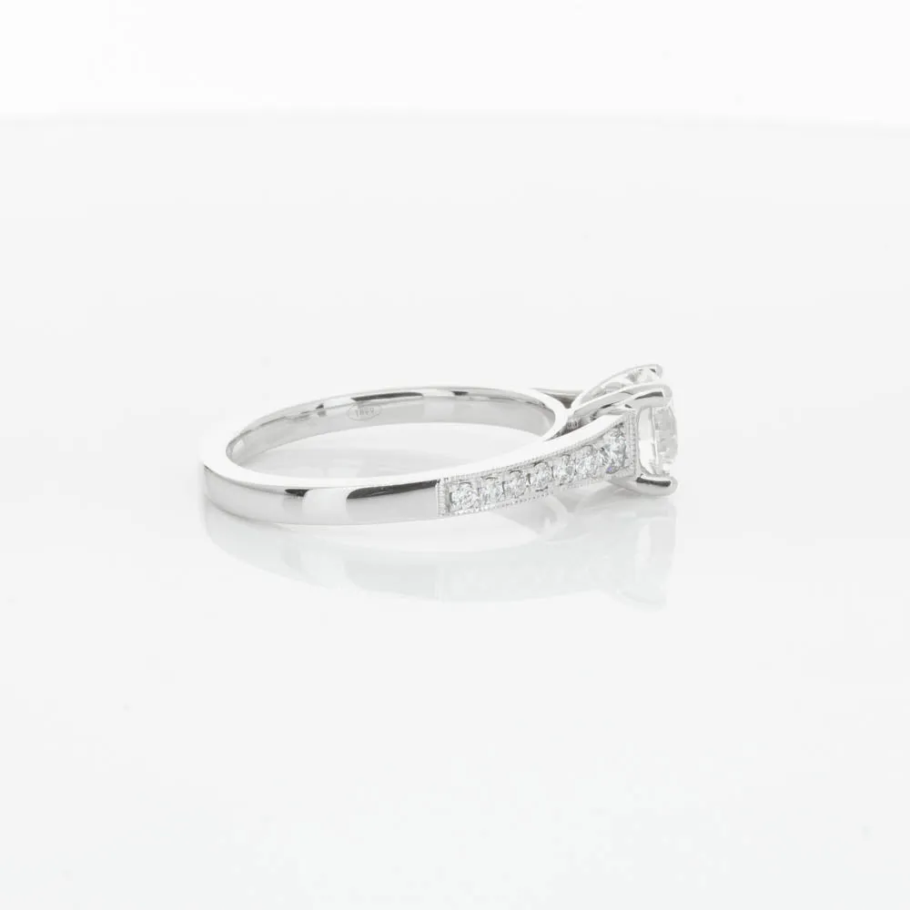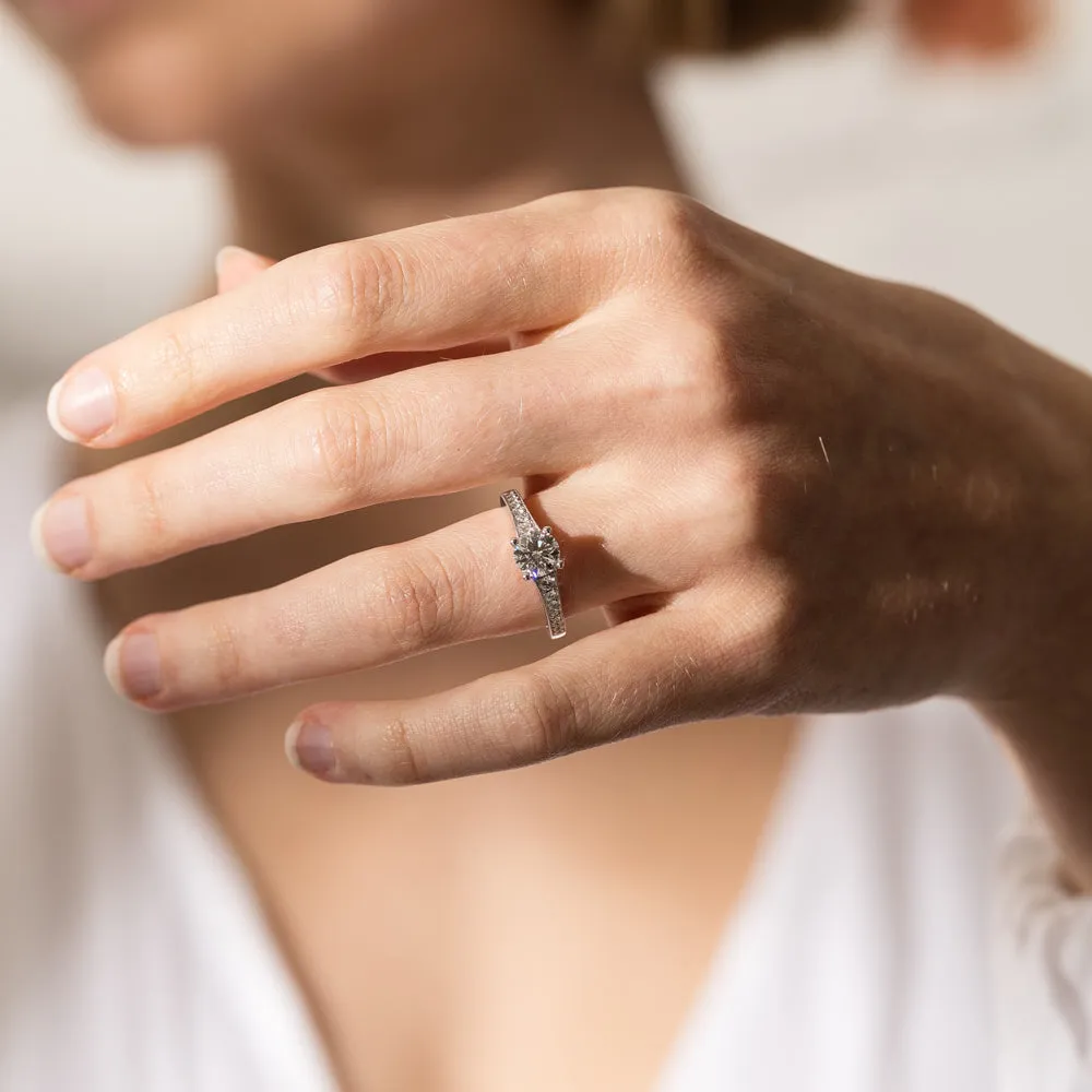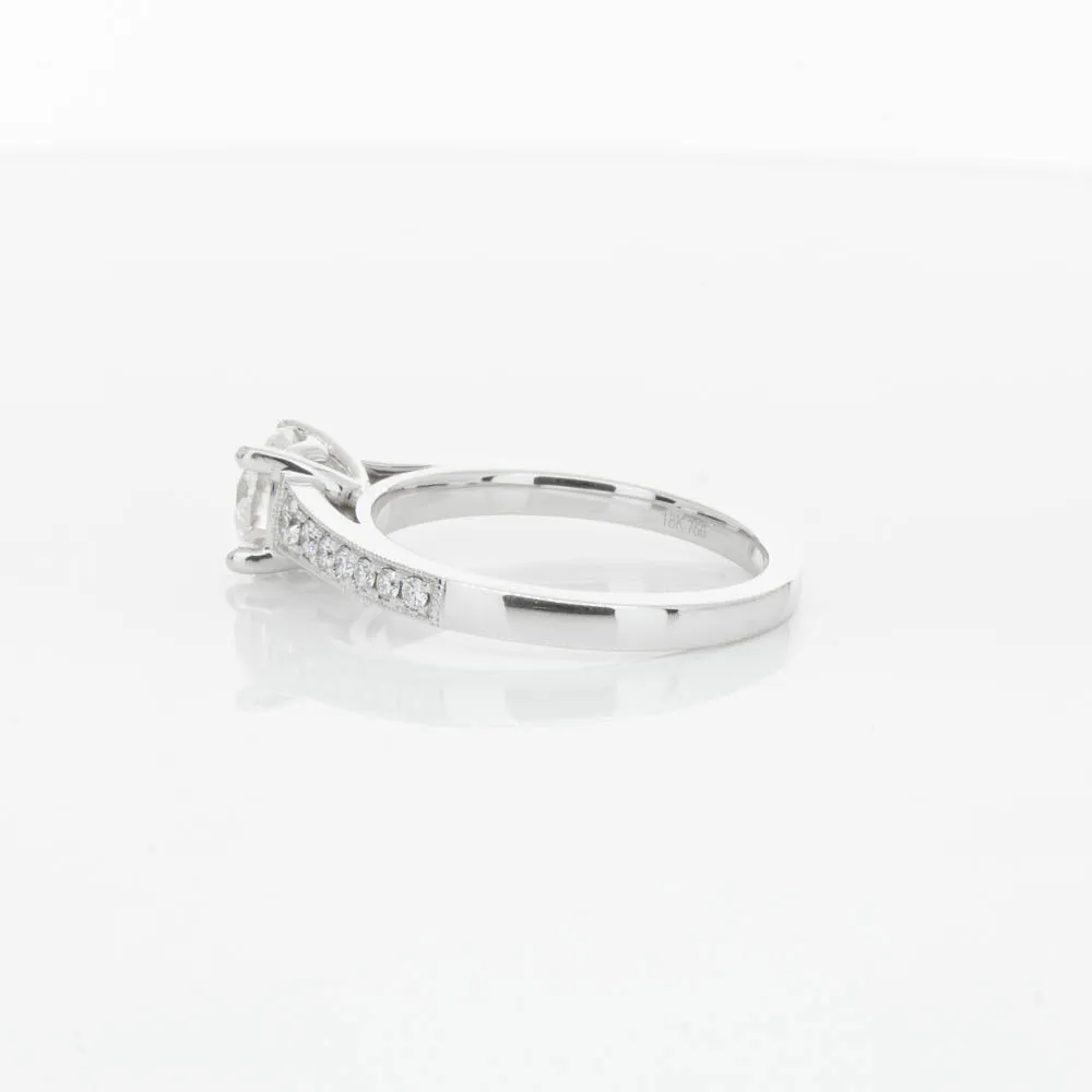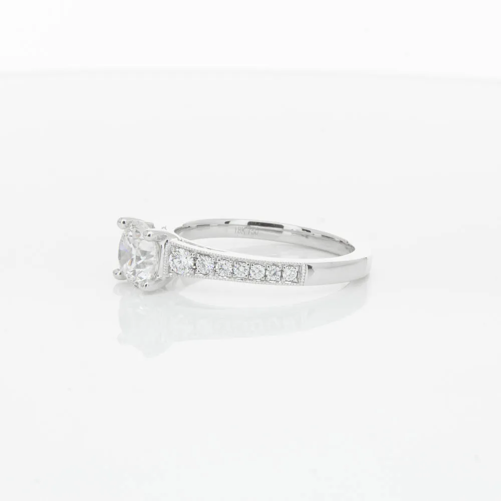 This impressive ring features a magnificent 1.01ct dazzling round brilliant cut diamond with bead set shoulders skilfully set in 18ct white gold from our signature 1899 collection.