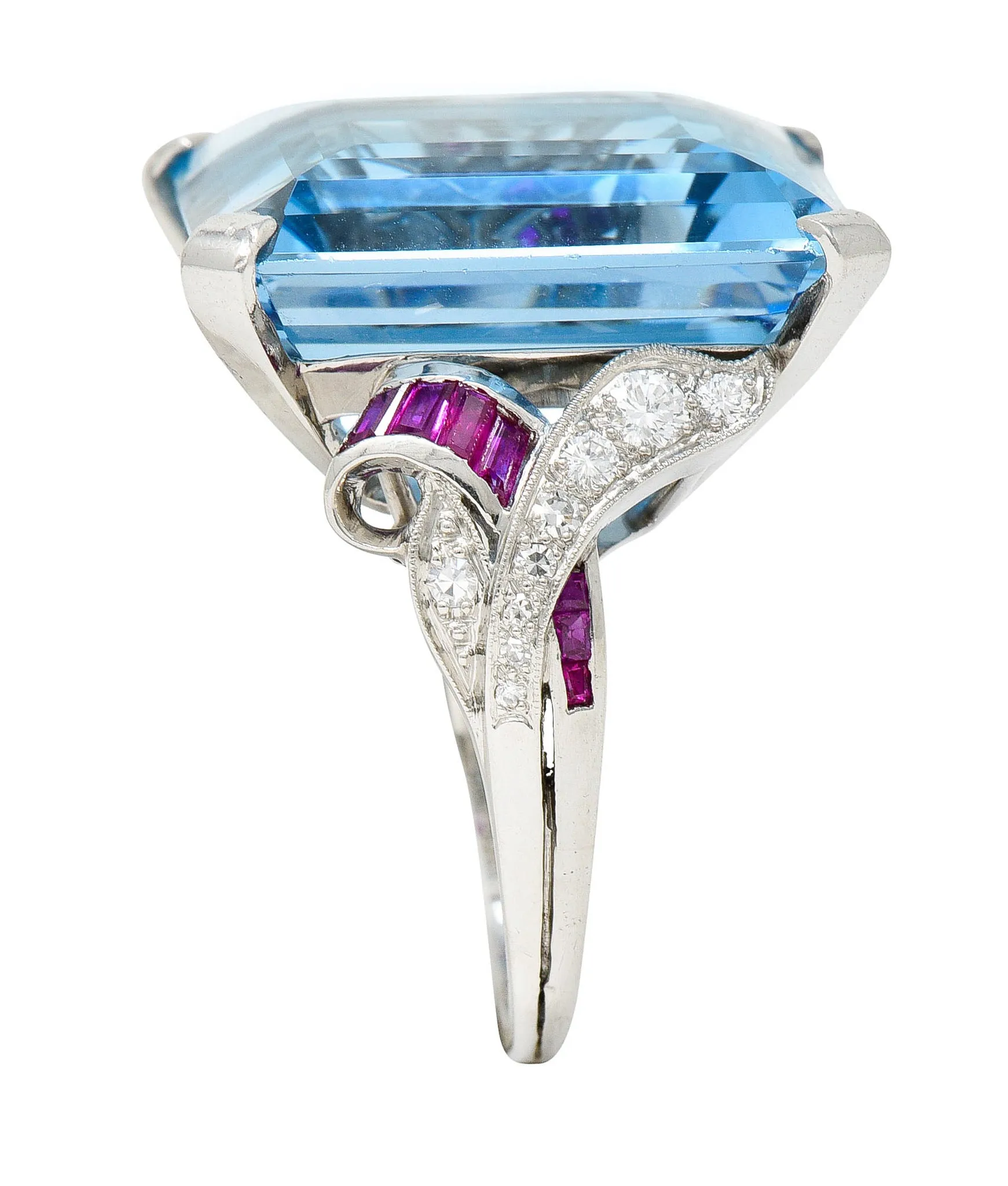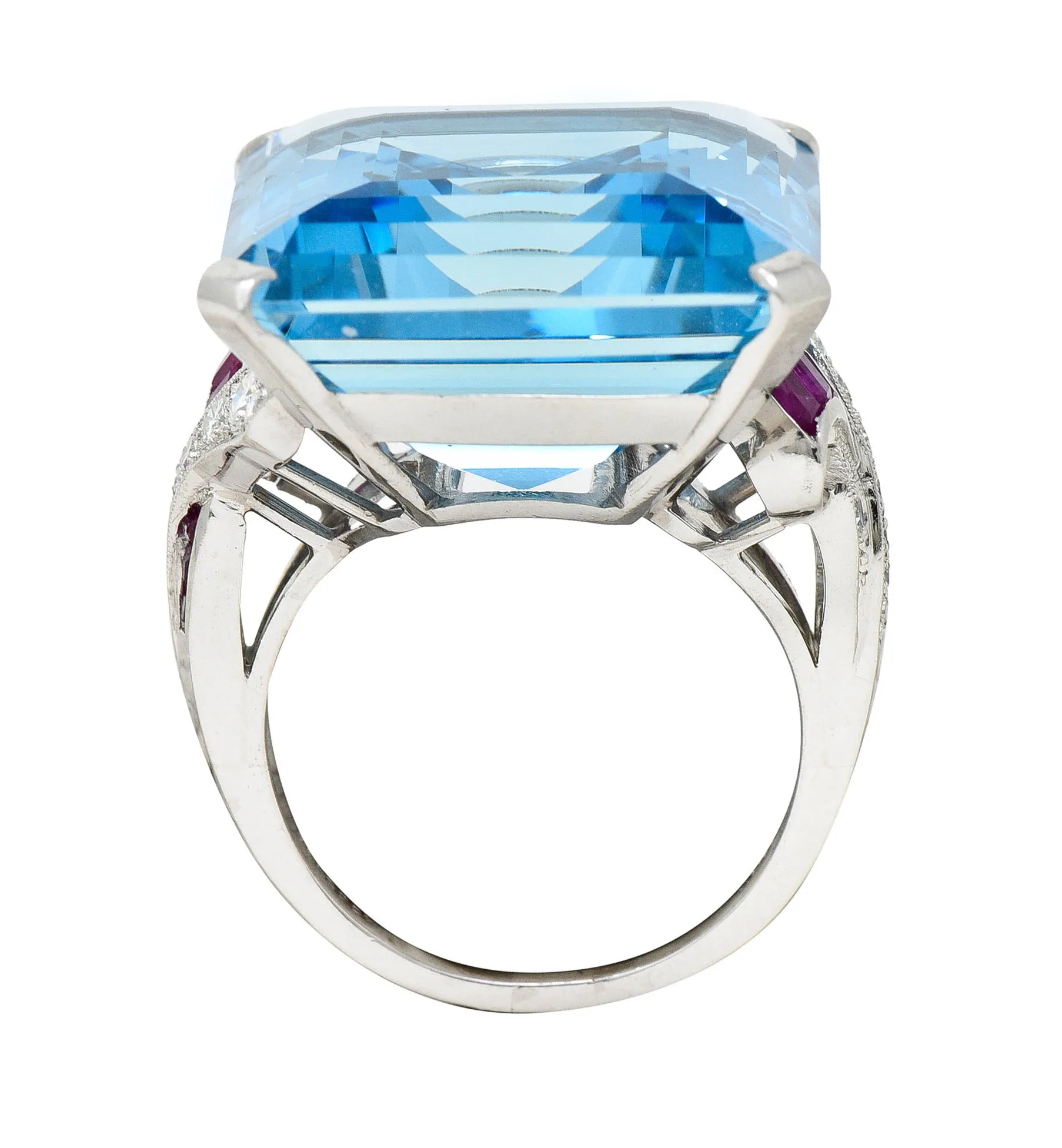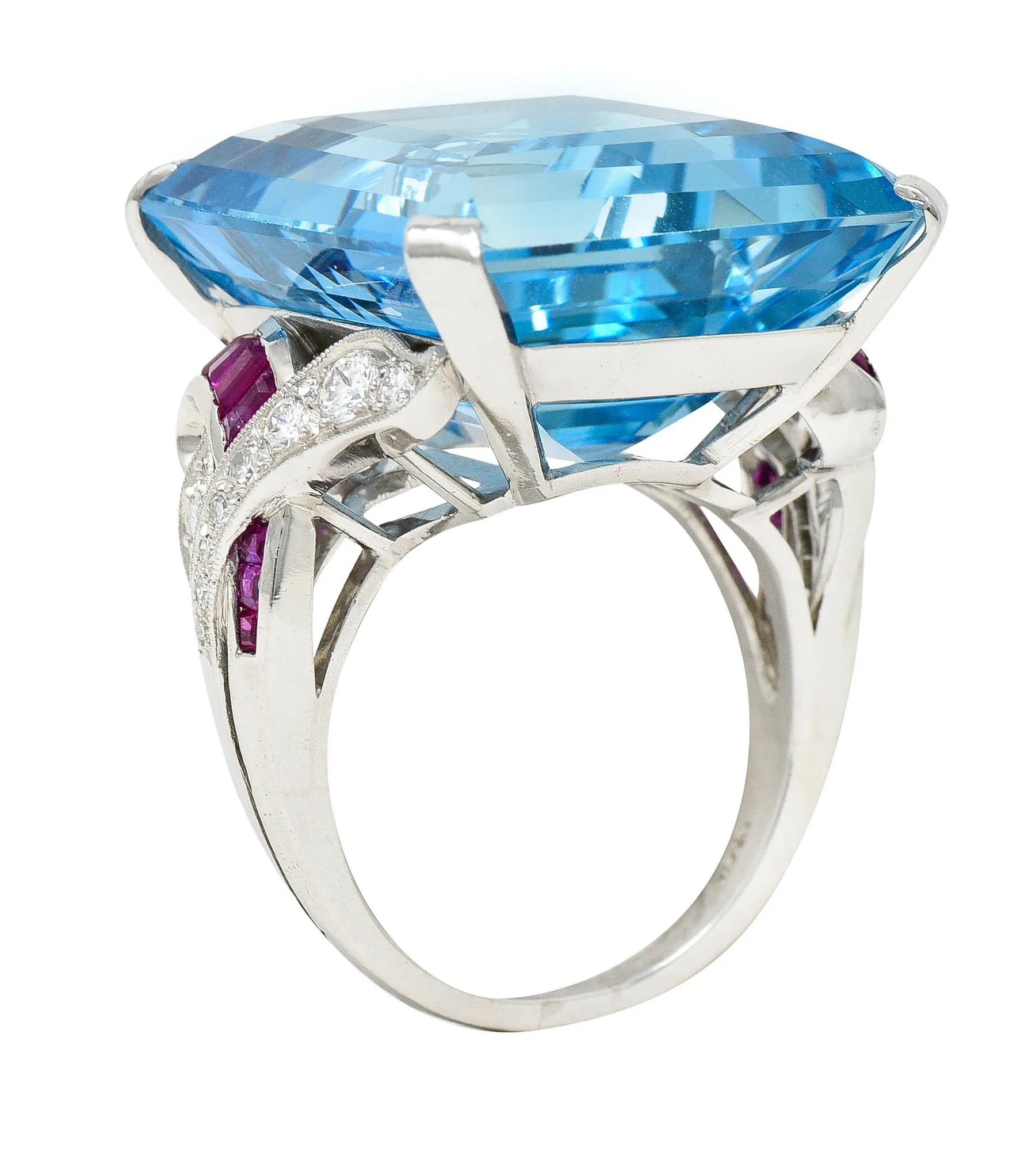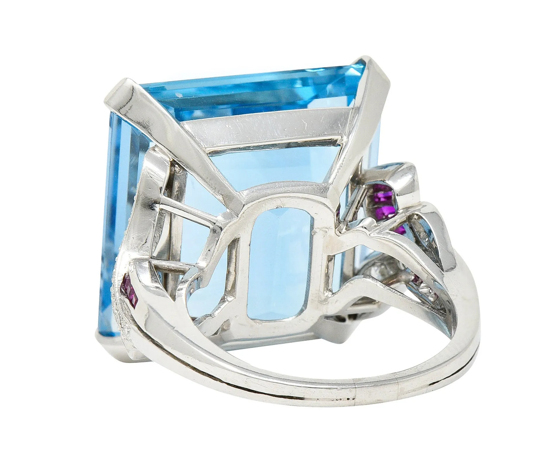 1948 Peacock 33.87 CTW Aquamarine Diamond Ruby Platinum Cocktail Ring