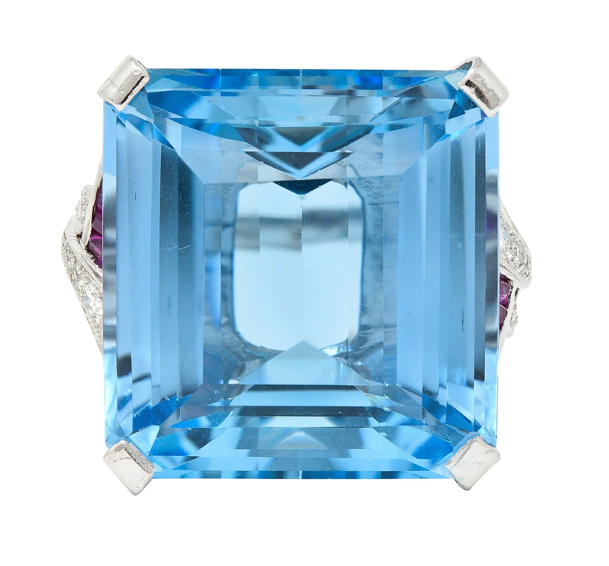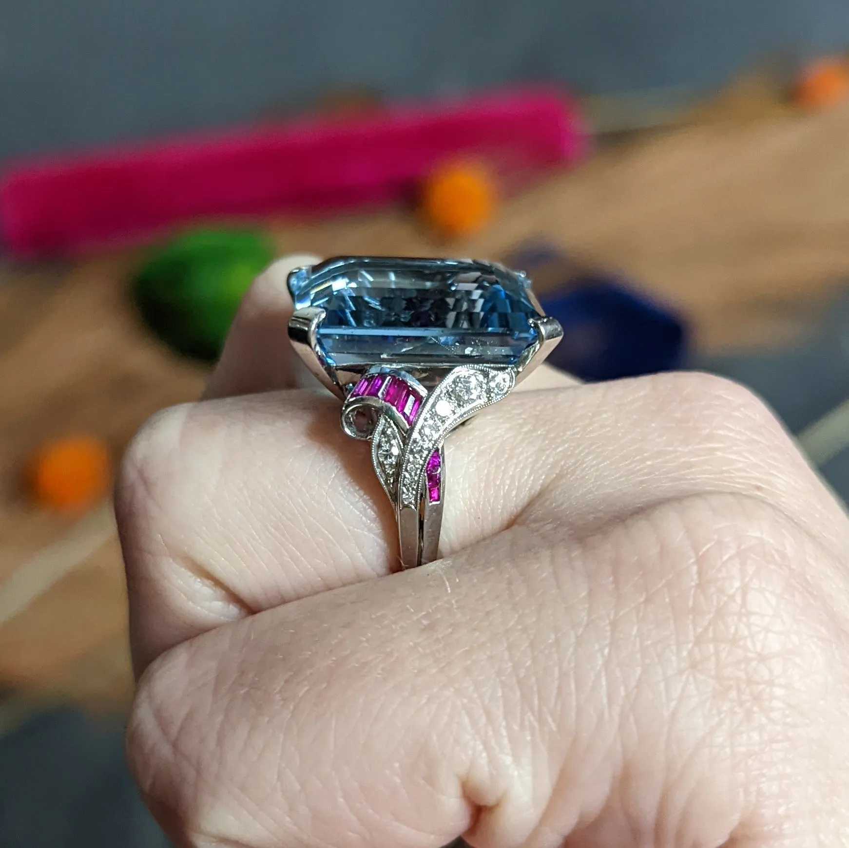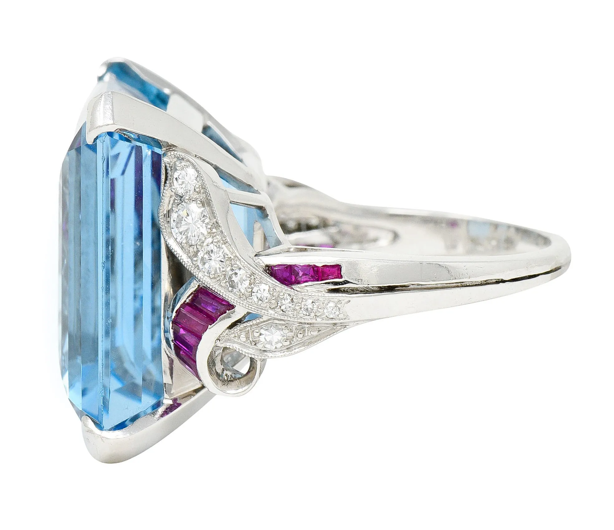 1948 Peacock 33.87 CTW Aquamarine Diamond Ruby Platinum Cocktail Ring