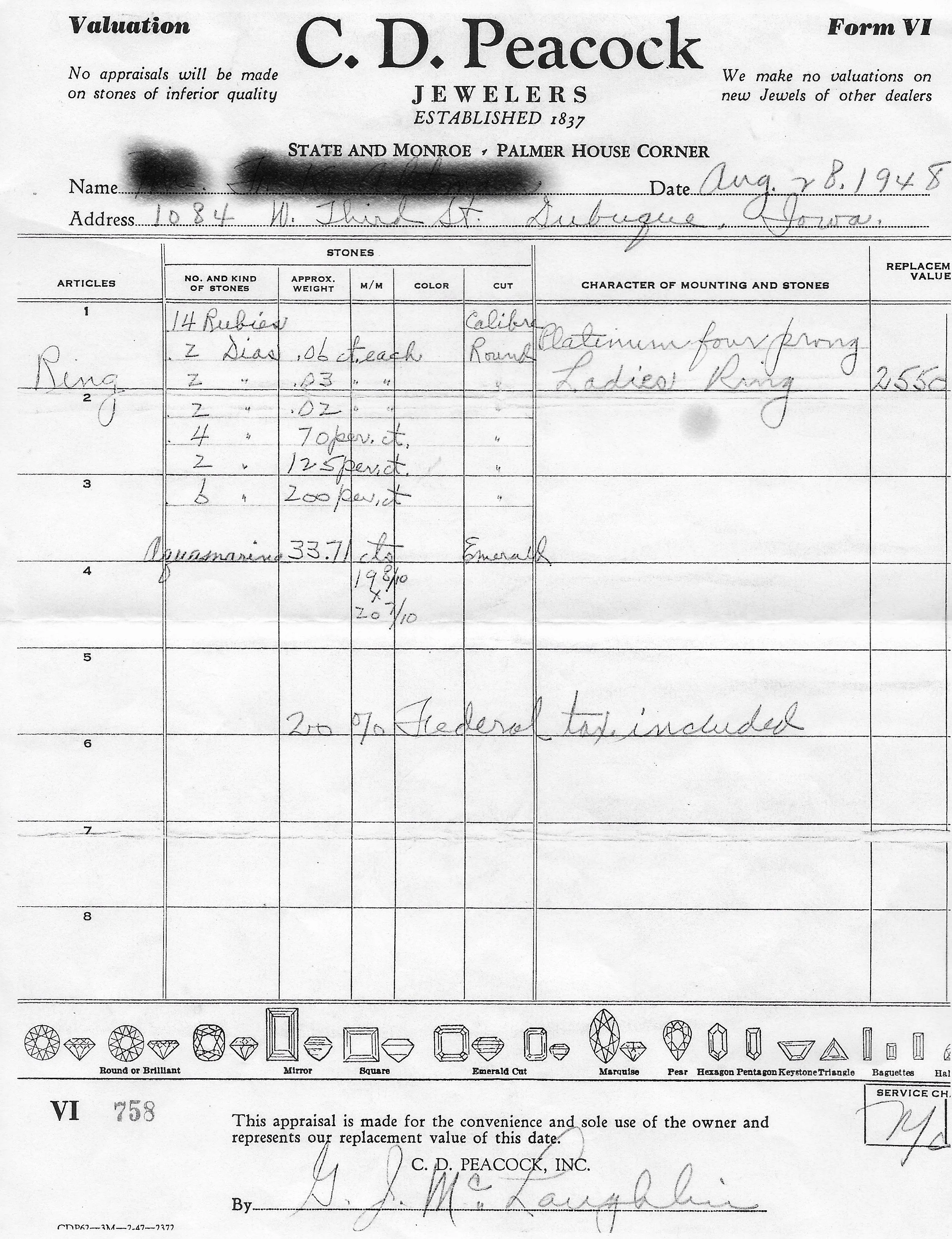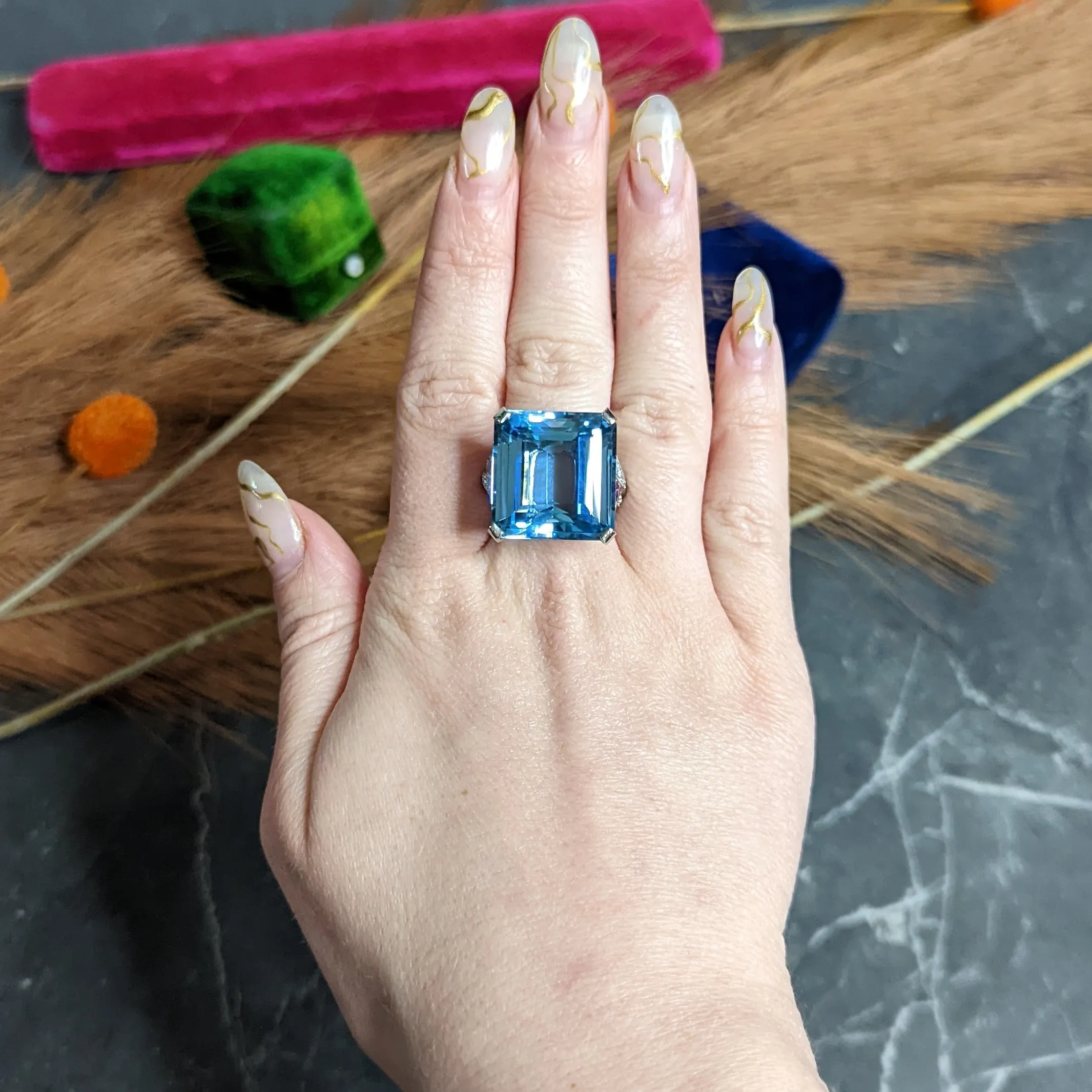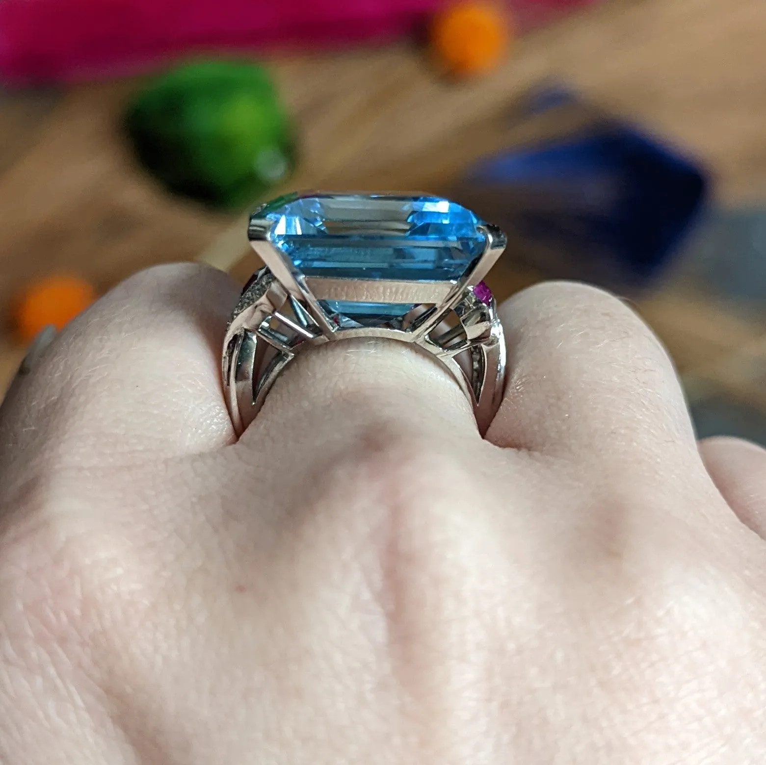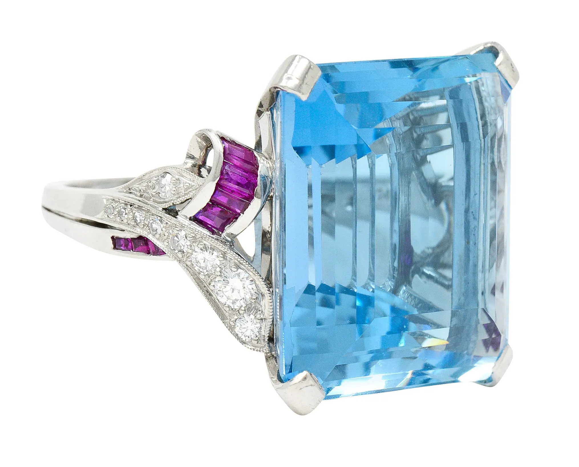 1948 Peacock 33.87 CTW Aquamarine Diamond Ruby Platinum Cocktail Ring
