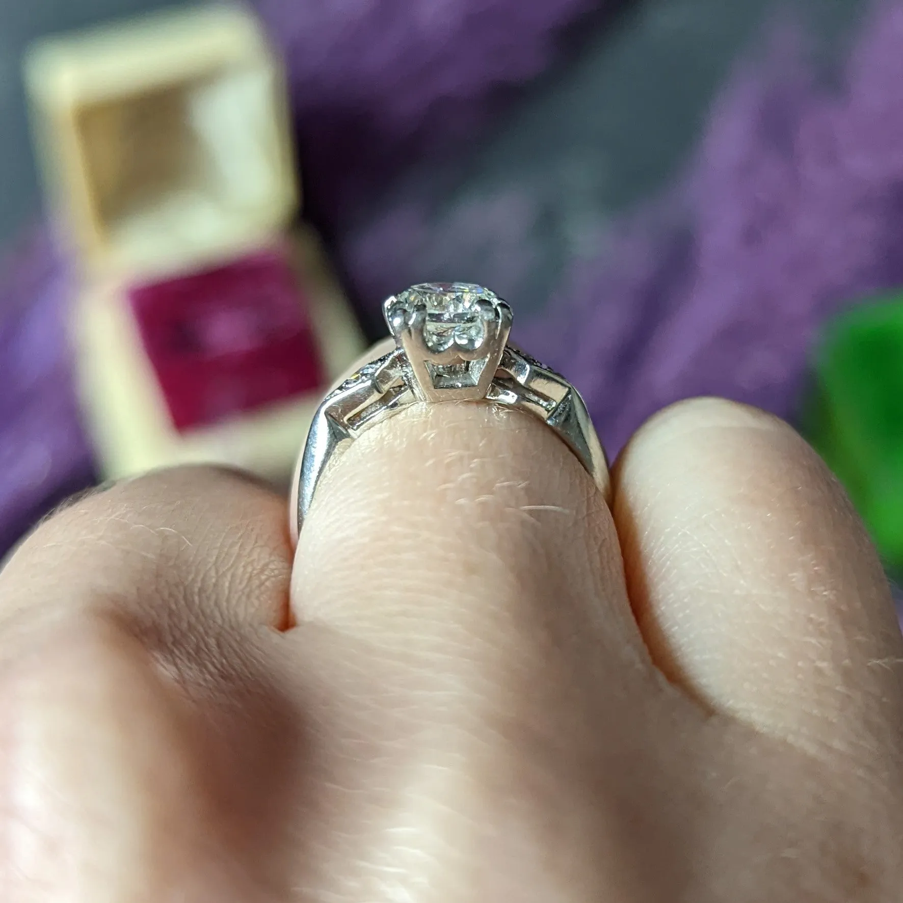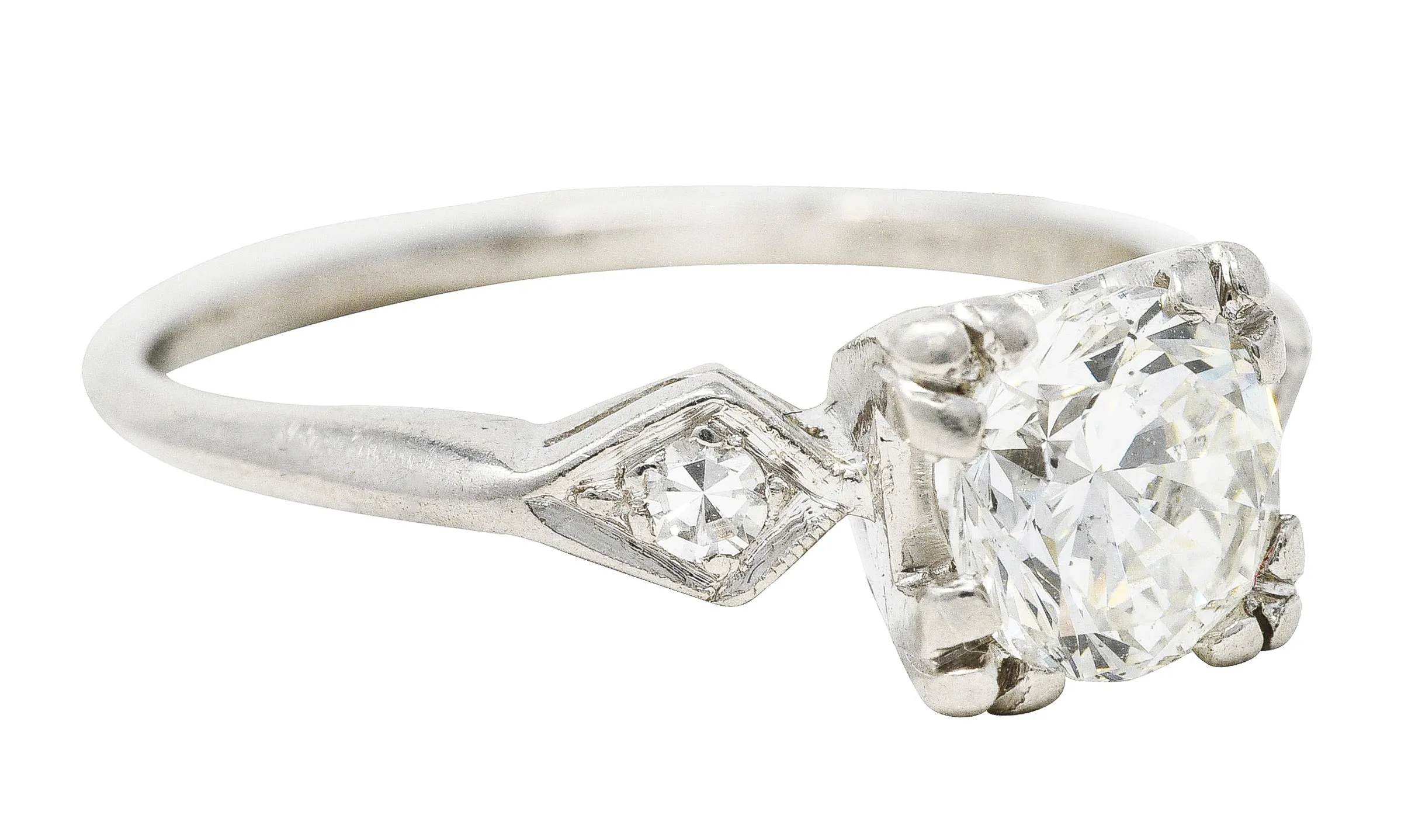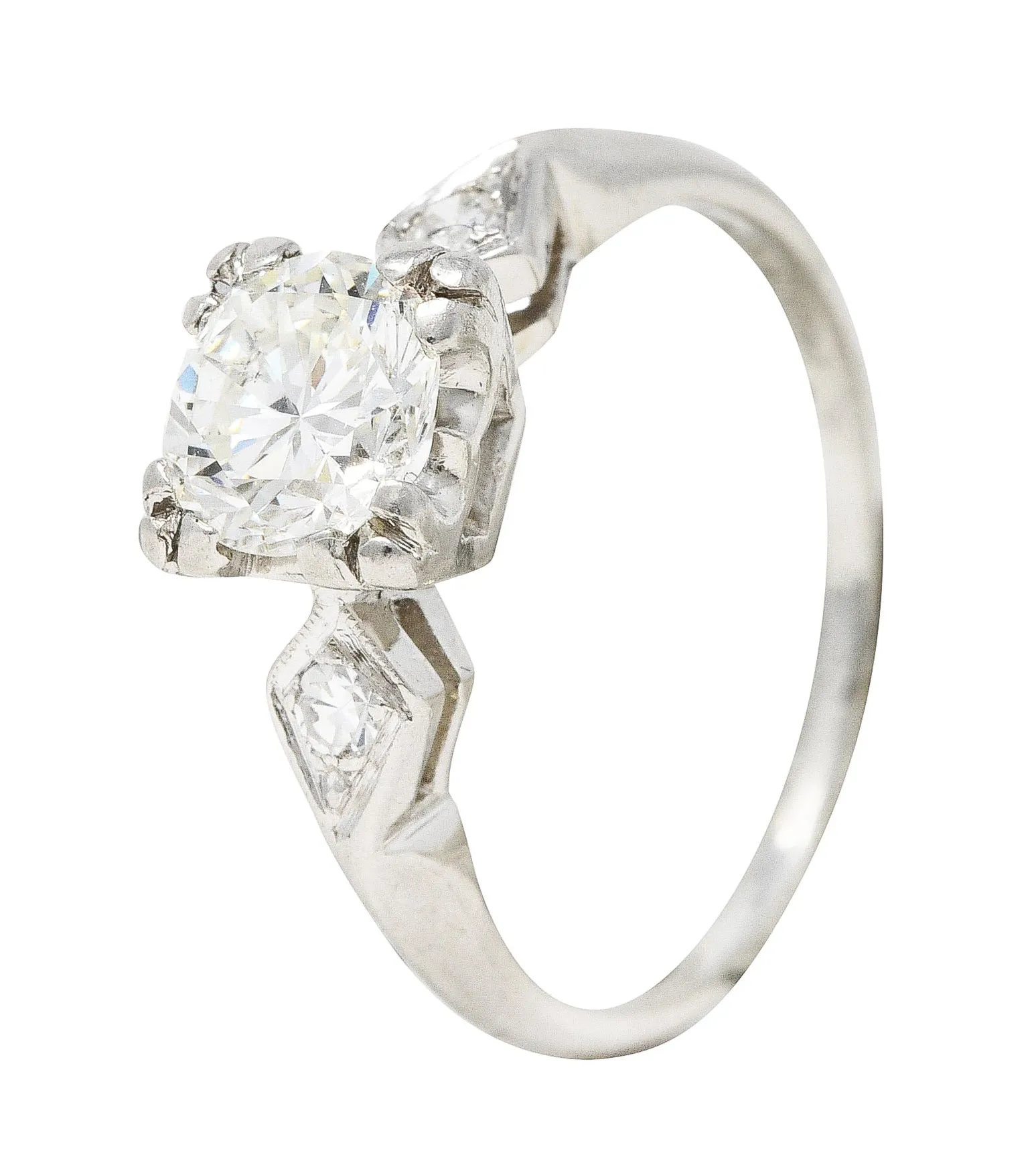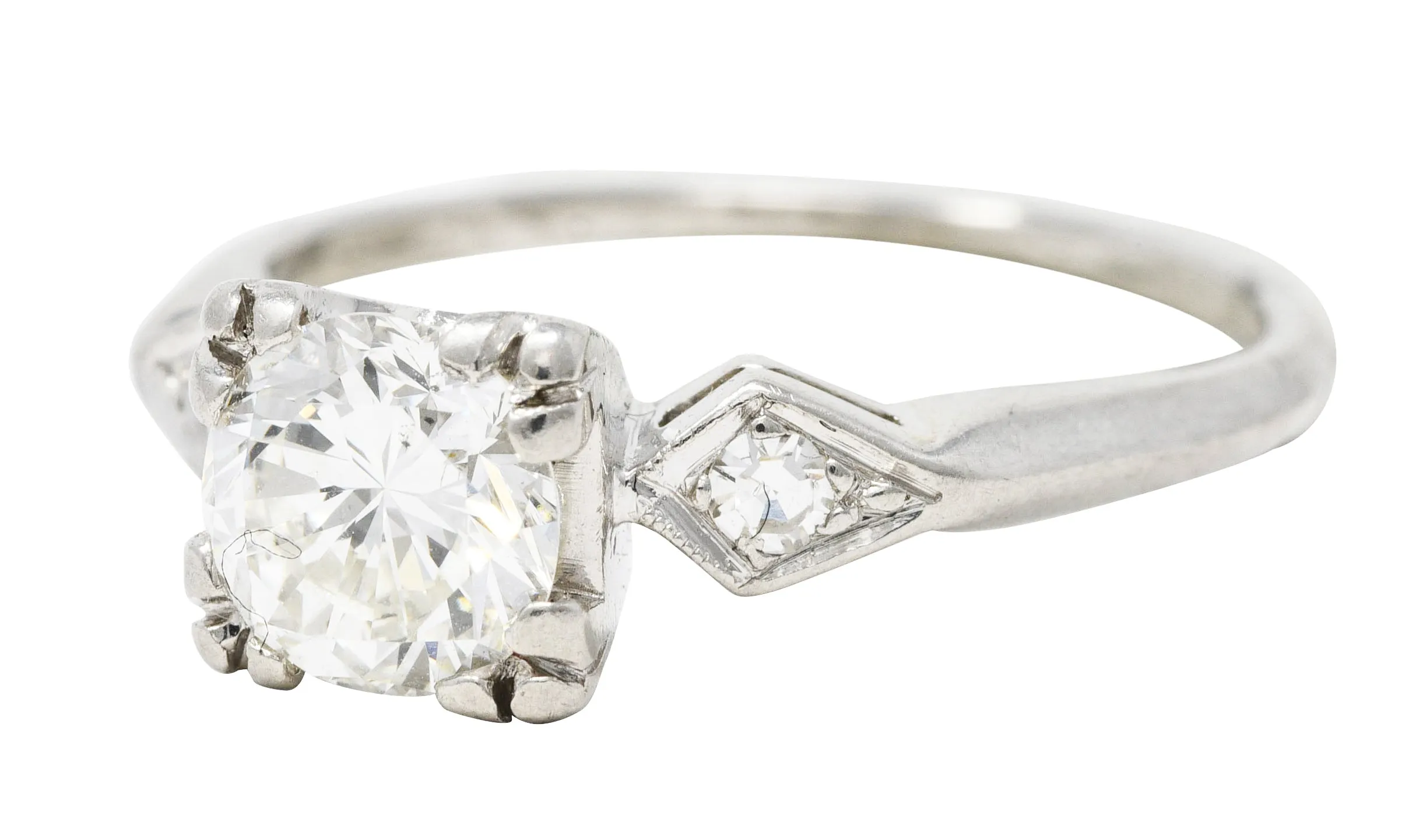 1950's Mid-Century 1.01 CTW Diamond Platinum Three Stone Engagement Ring