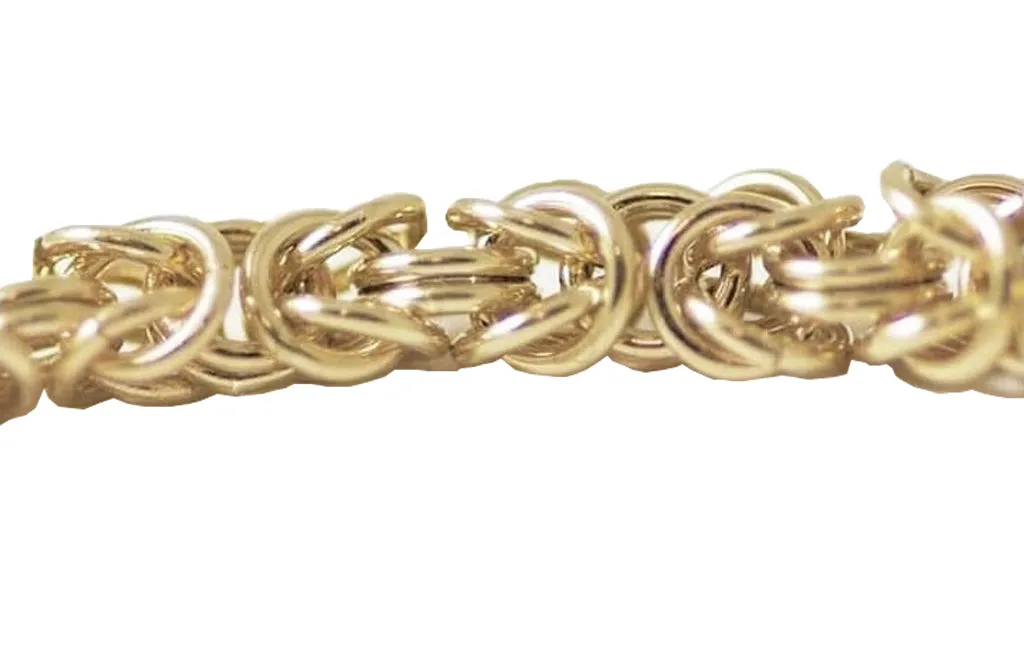 This solid 9ct gold bracelet is hand made by Ikiru Arts in the UK. Made to order, I have one in stock - but please allow for up to 2wks for delivery, as I have found in the past that my bespoke (for which read, hardest to make!!) pieces often sell in person and online simultaneously and I then run to catch up!!. I hand make each circle on a dowel from solid 9ct gold wire. Then I cut with a thin blade jewellery saw, and weave the pattern together. The drape is soft and lovely to wear. A very special bracelet completed with a solid 9ct gold clasp. Different lengths available - see drop down menu. Bracelet thickness / is 6mm.