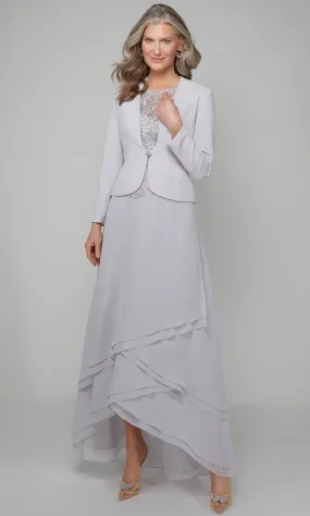 A-Line High Low Scoop Neck Asymmetrical Tea Length Satin Lace 3/4 Length Sleeve with Bow(s) Pleats Mother of the Bride Dress