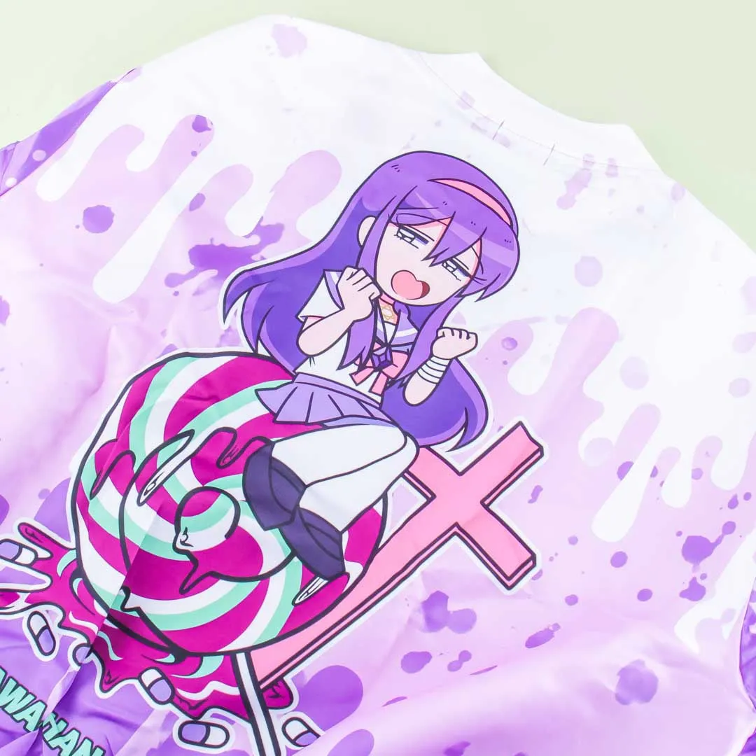 - A kawaii Harajuku-style bomber jacket illustrated with Yumekawa-chan from the Yamikawaii fashion trend
