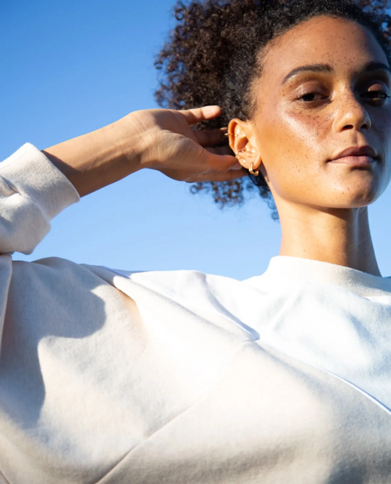 Features raglan sleeve with fine rib collar and cuffs, cut & sew panel with piping detail. Enjoy in our signature organic cotton, brushed both inside and out for a luxuriously soft feel.
