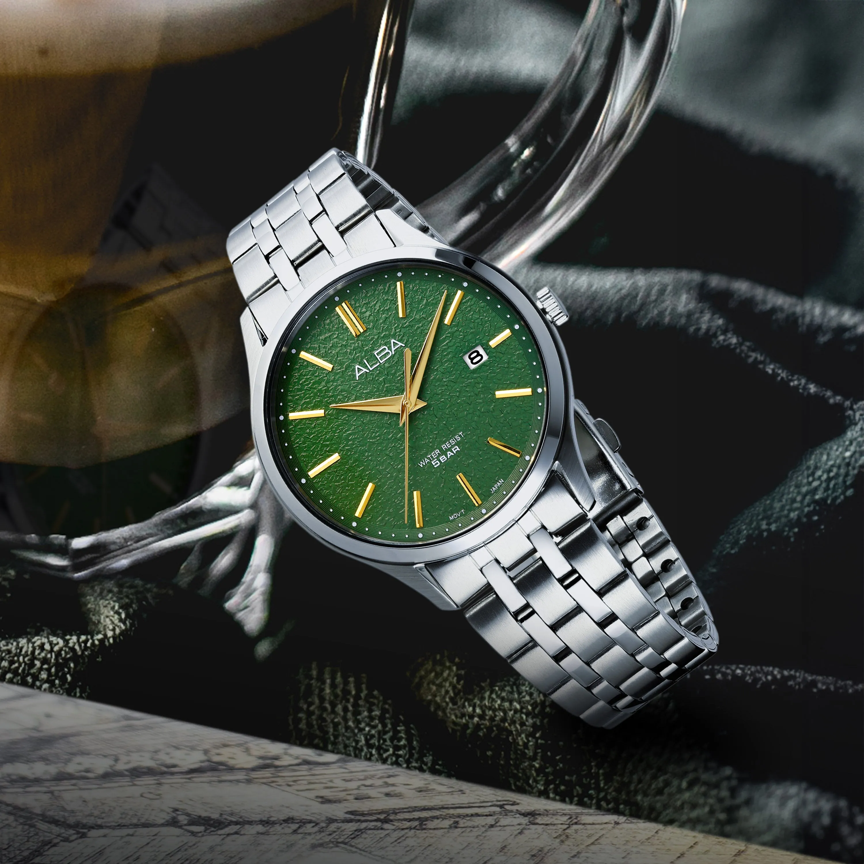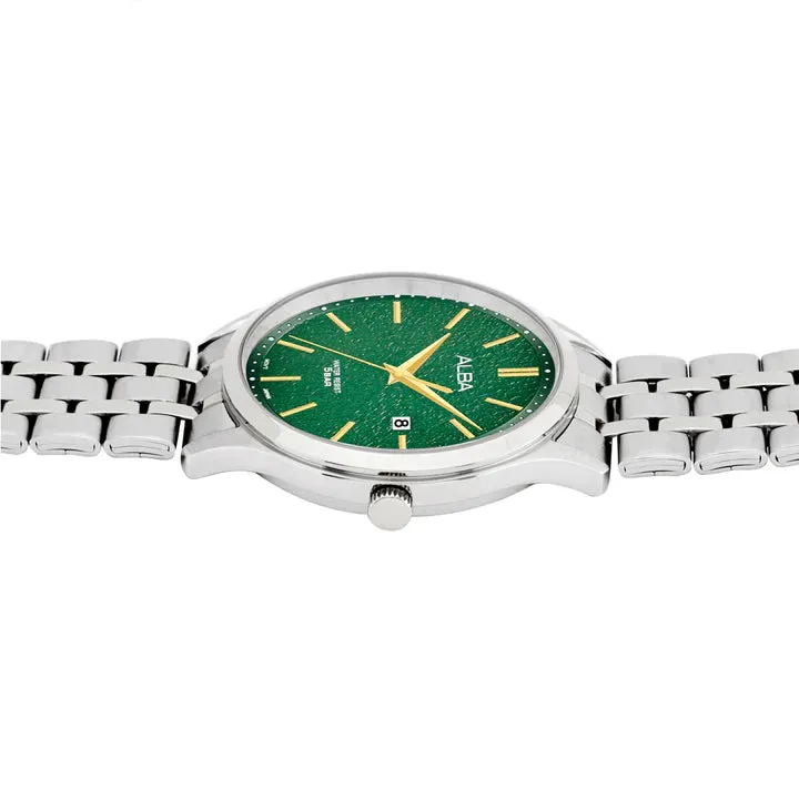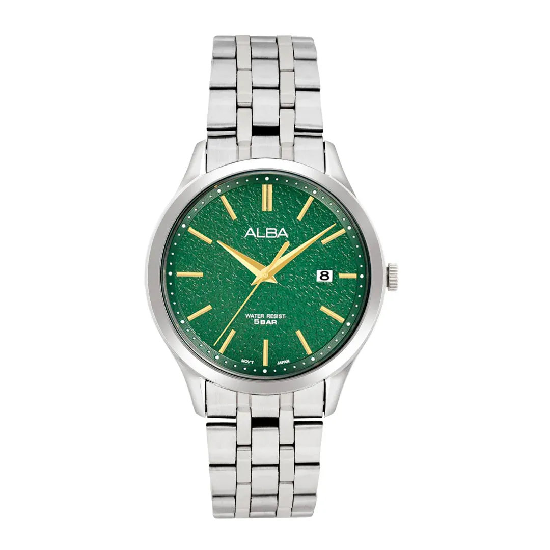 Introducing our Quartz Green Patterned Dial Men's Watch, a sleek and refined timepiece. With its sophisticated design, this watch is perfect for the modern gentleman. Made with precision and attention to detail, it's more than just a watch, it's a statement of luxury. Elevate your style with Alba.