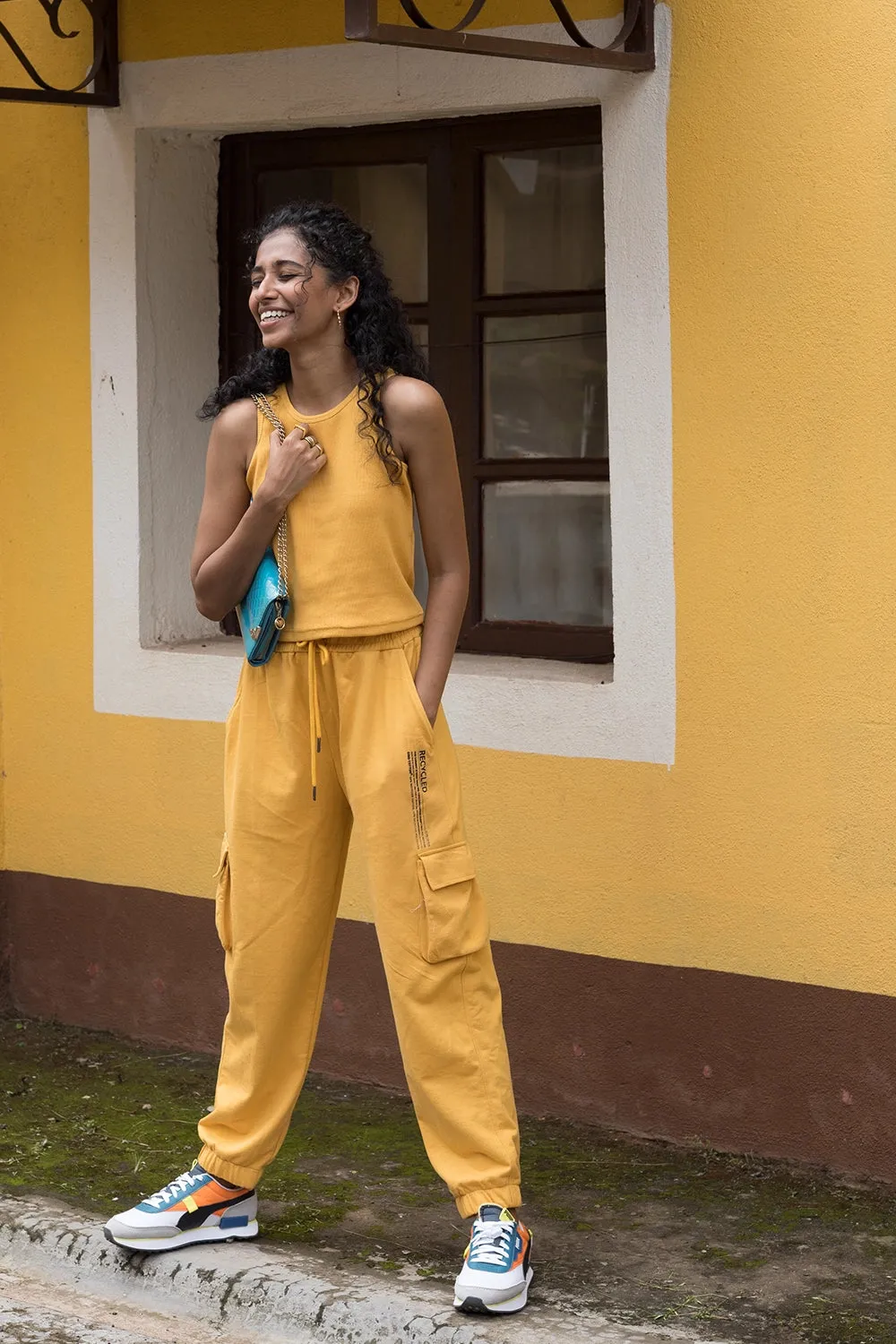 The Amber Cargo Jogger for the Gurls is a super comfortable piece of clothing, made from pre-consumer waste, and recycled into the fabric of 240 GSM. Be it a yoga day, busy running around or a sporty lounge party, the classic style rocks it all. It is accentuated with two side pockets, an adjustable waistband, a drawstring, and sculpted fitted cuffs. Pair it with your favorite hoodie from the Blue Street collection for running errands, chilling with friends, or cafe hopping, the possibilities are truly endless. Watch out for these joggers that can never go out of style!