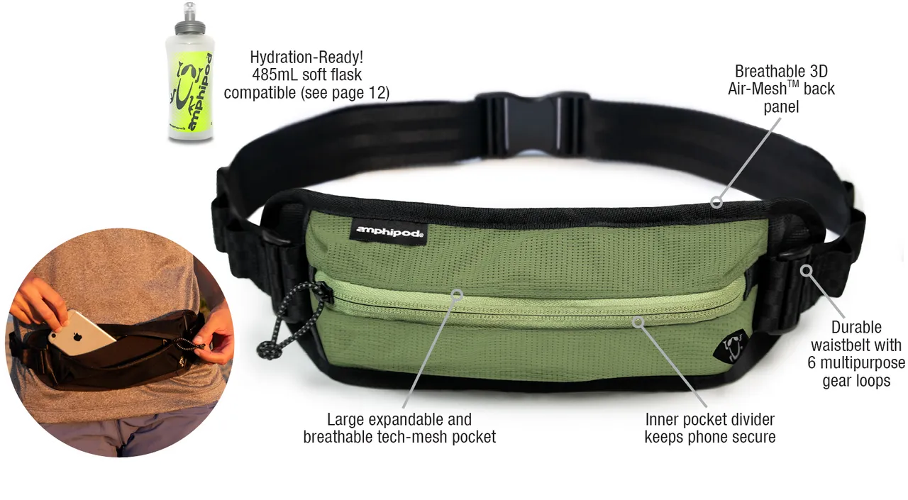 Taking lightweight functionality to another level, the Amphipod FKT Trail™ belt offers easy-access storage in a bulk-free, utility-forward design. Using a fully breathable 3D mesh back panel and a slender bounce-free belt, this pack was designed to go unnoticed, as you take it from road to trail and back again.
