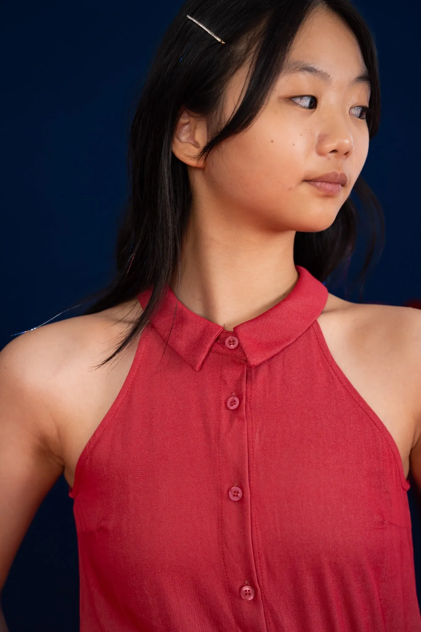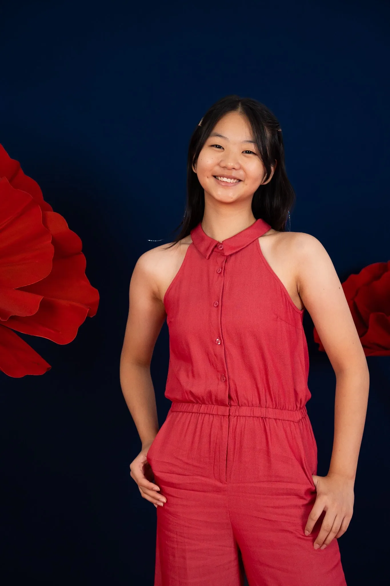 Annie Jumpsuit in Red is designed specially for the growing tween! We love this relaxed fit with a mandarin-collar so your tween can dress it up or dress it down, according to her mood!