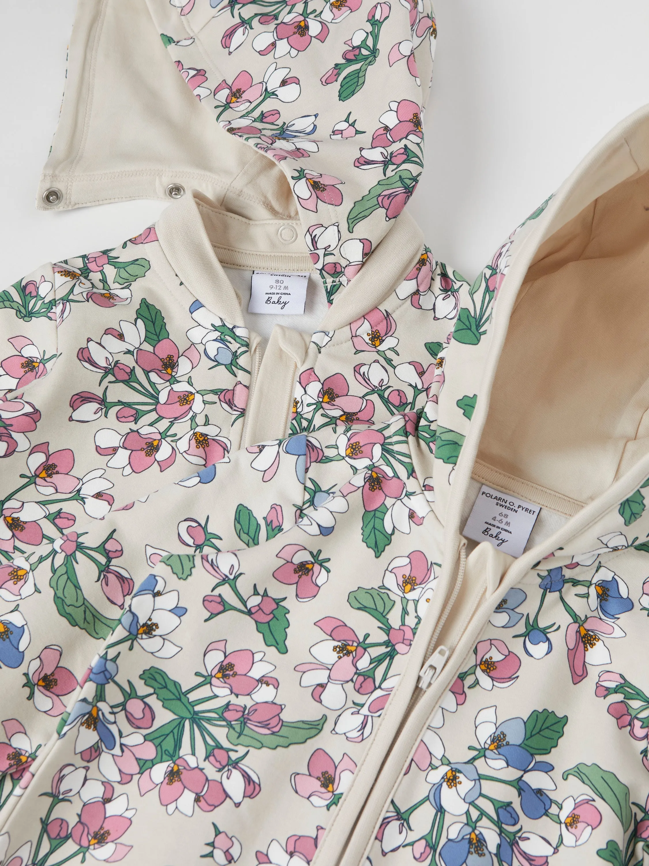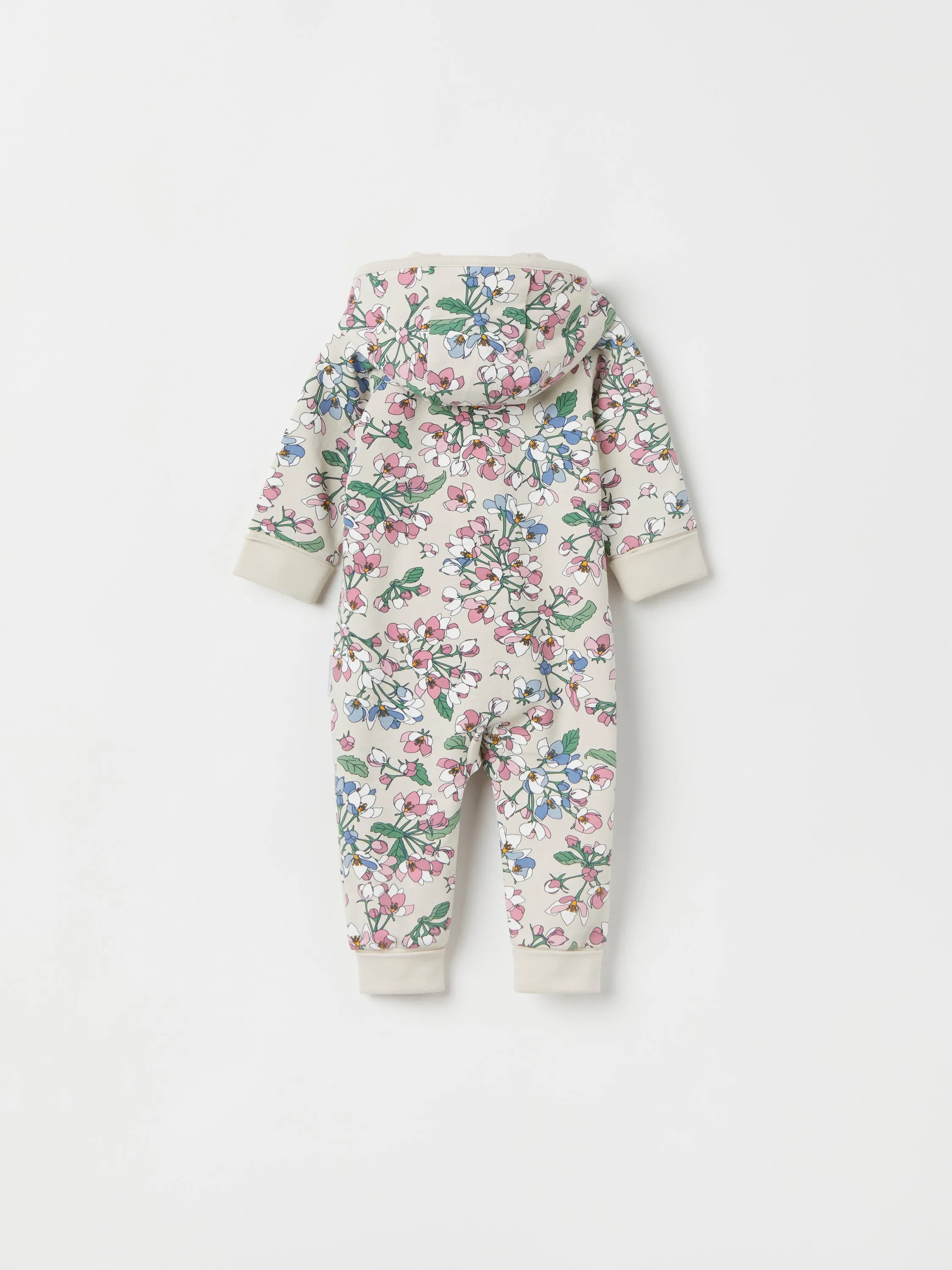 A must-have for babies everywhere our adorable apple blossom print baby all-in-one is as cool as it is comfy. The soft fleece will keep baby cosy as the seasons change while foldable cuffs give lots of growing room. This gorgeous baby onesie is robust, colourful and beautifully designed in organic cotton you can wash and rewash. Detachable hood size 80 (9-12m) only.