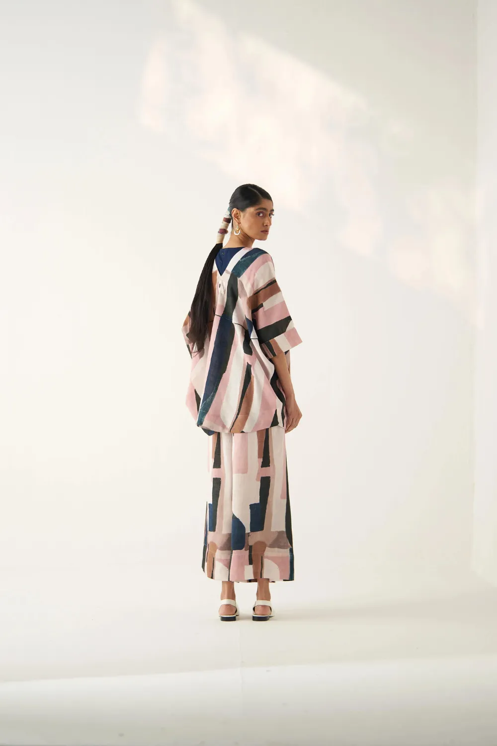 GOT certified azo-free dyes, Anti-Fit,Hand-painted abstract expressionist digitally transfered print, V neck, Top stitch detail, Hand-embossed vintage Indian coin detail.