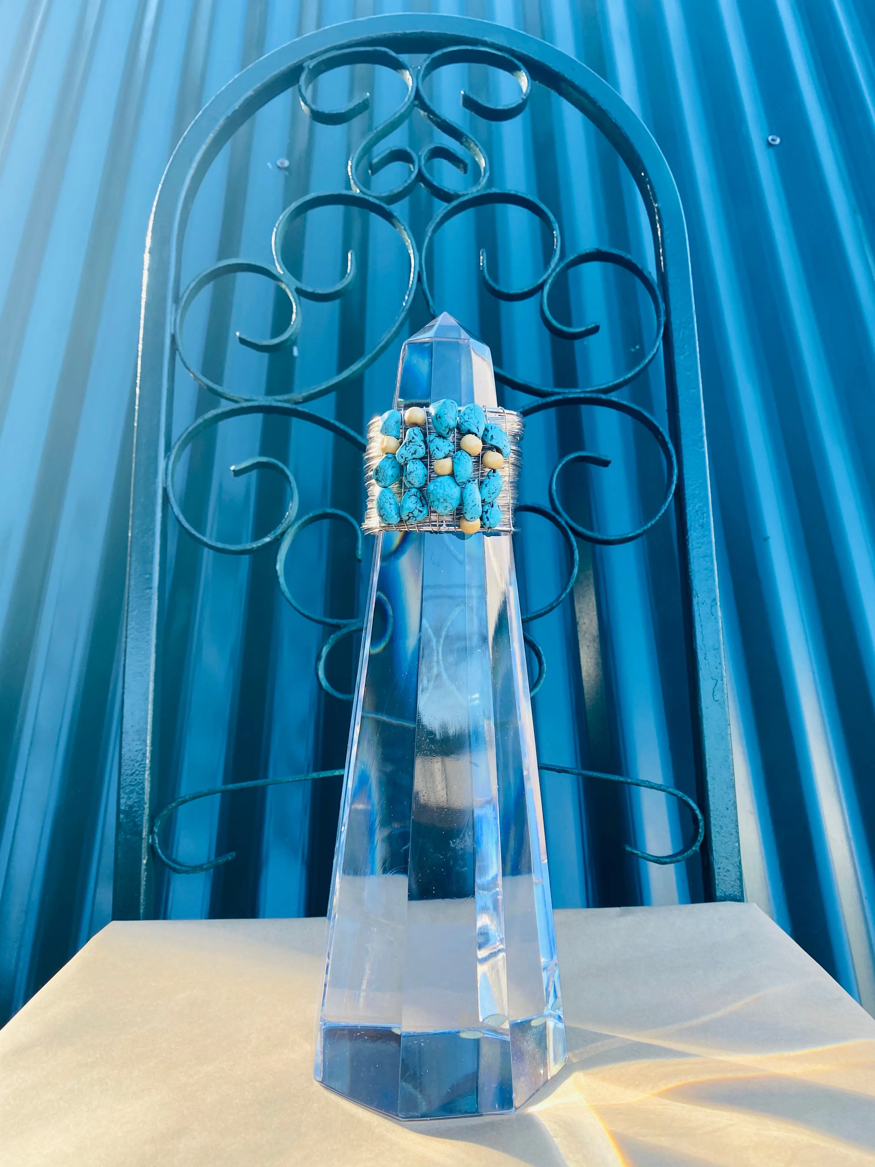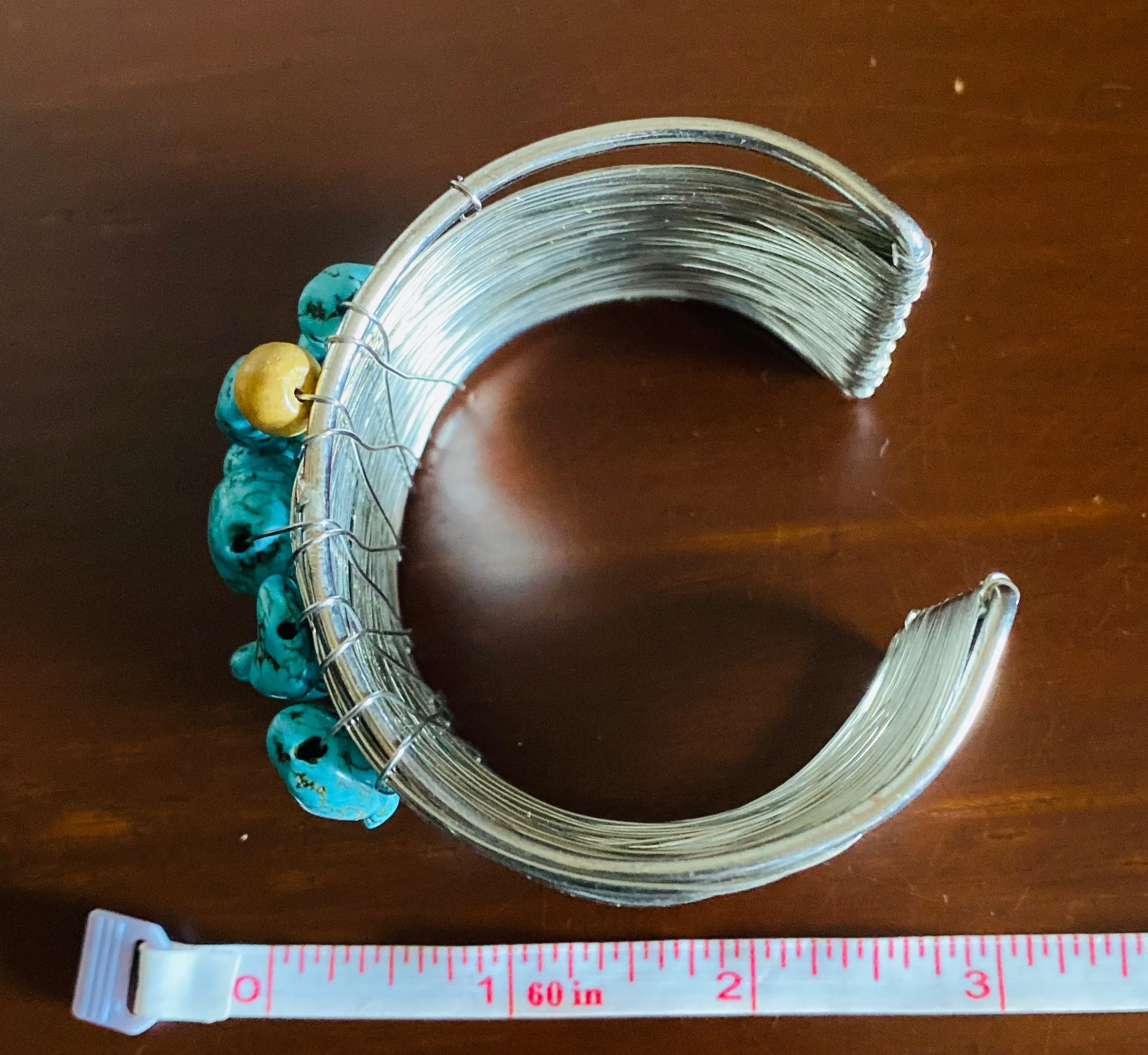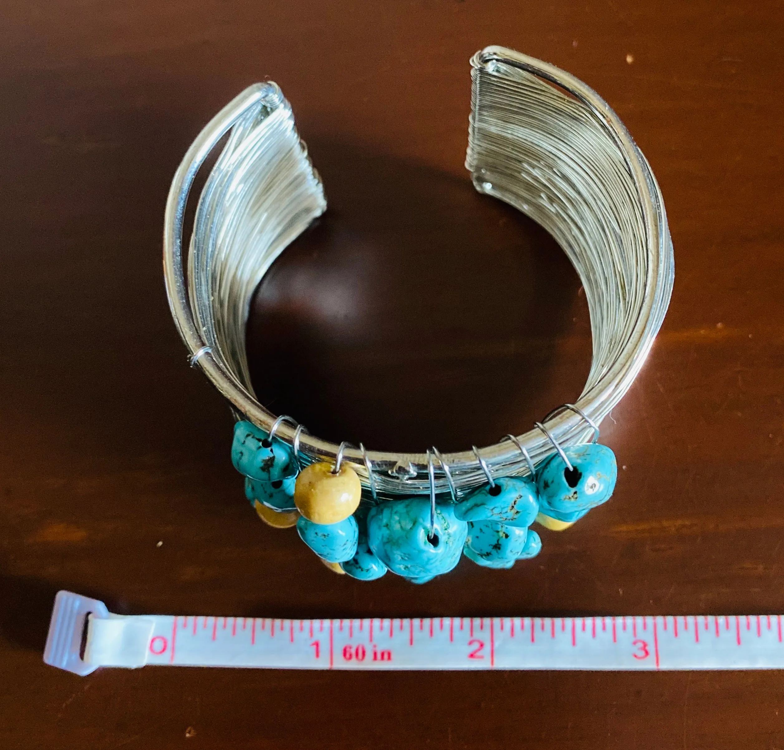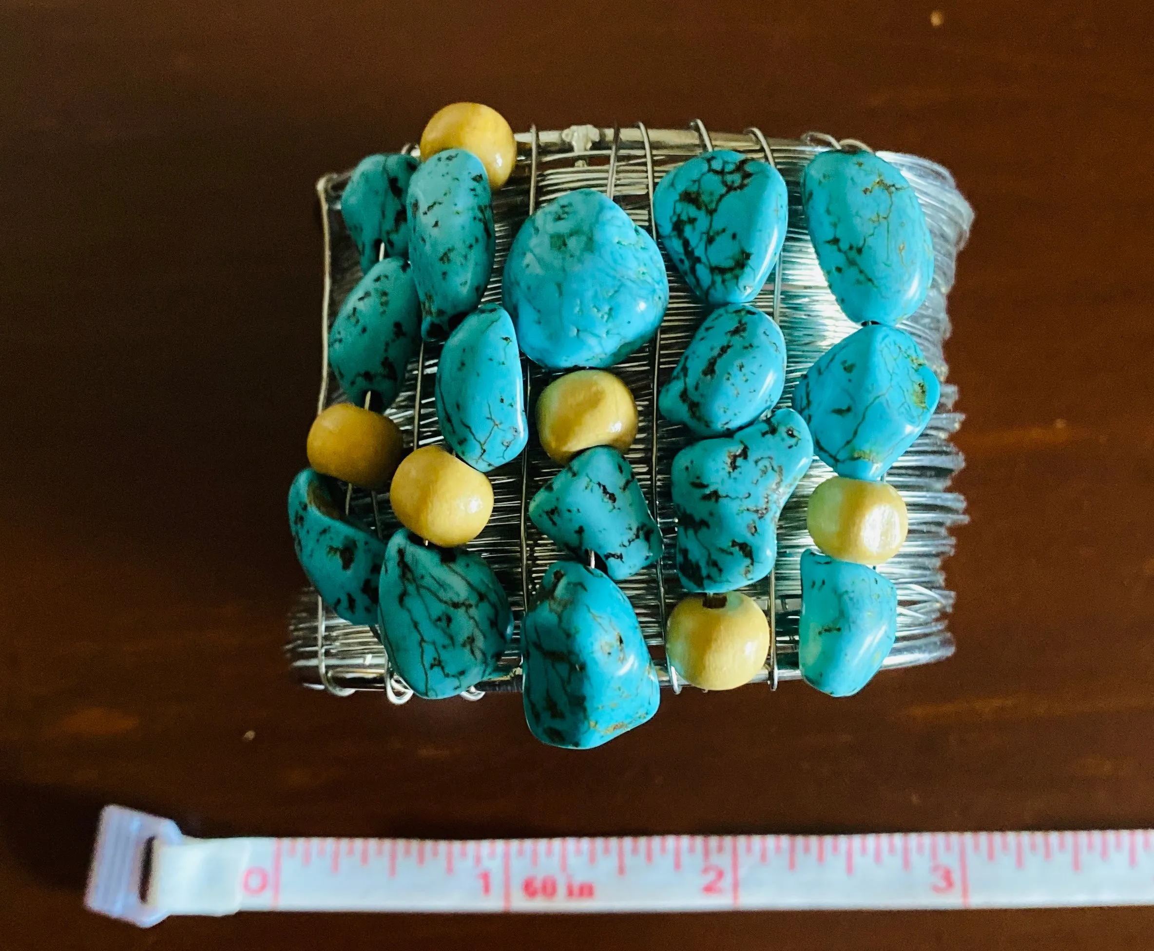 Artisan Blue Silver Tone FauxTurquoise Stone Beaded Wide Cuff Fashion Bracelet