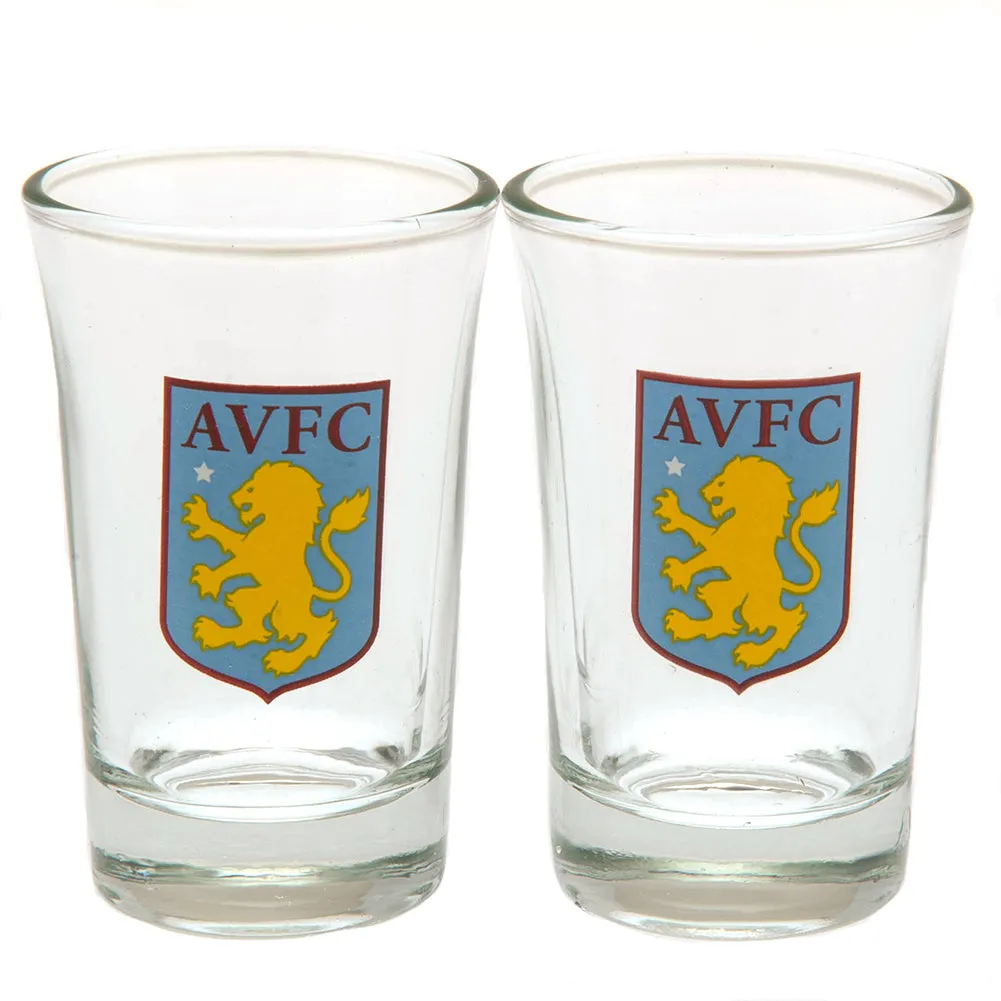 | Set of 2 shot glasses Featuring full colour Villa club crest Official licensed product Approx 50ml (2oz) Approx 7cm tall, 4cm in diameter Product weight 208g In a display packet |