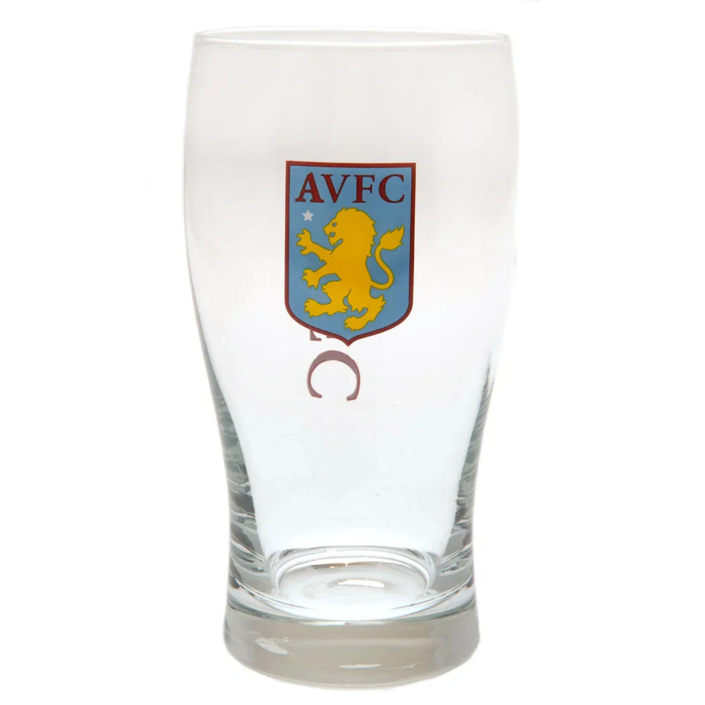 | Wordmark design tulip style pint glass Features AVFC text in claret and full colour club crest Official licensed product Approx 570ml (1 pint) Approx 15cm tall, 8cm in diameter Product weight 392g In a blister pack |