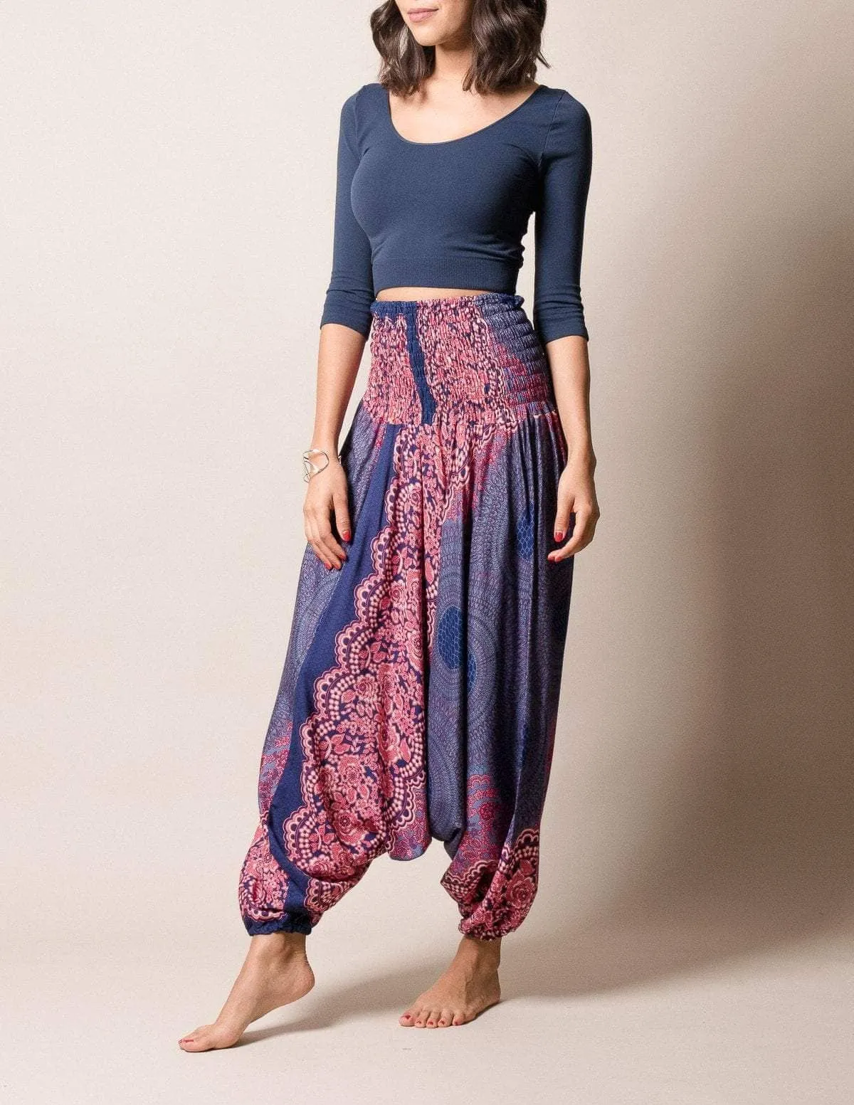 Bohemian dreams come to life with our Aurora Harem Pant. Two outfits in one, silky soft fabric easily transform from a chic jumpsuit to flattering harem pants with feminine ruching at the top and a loose-fitting silhouette at the bottom.