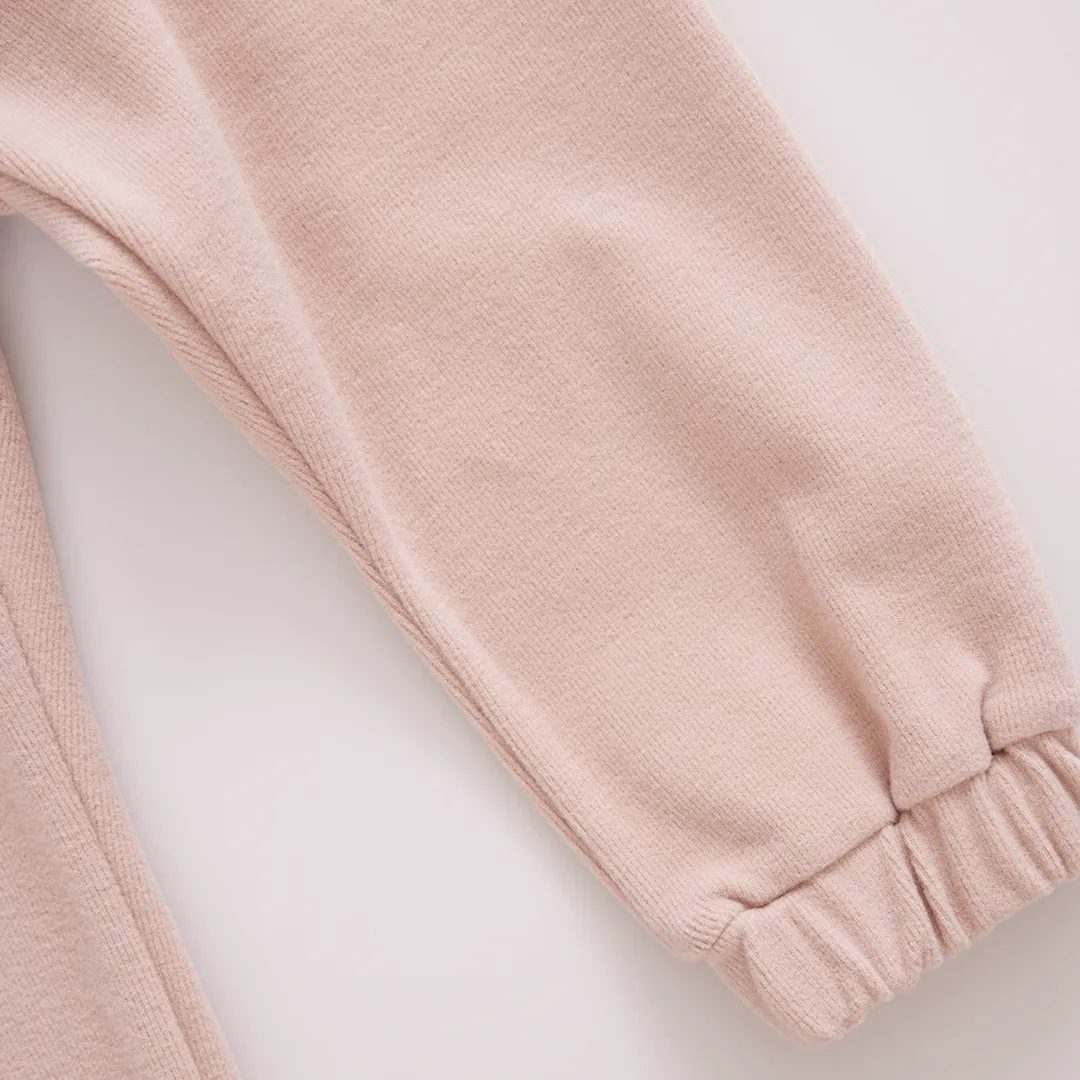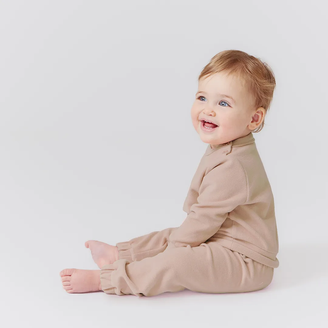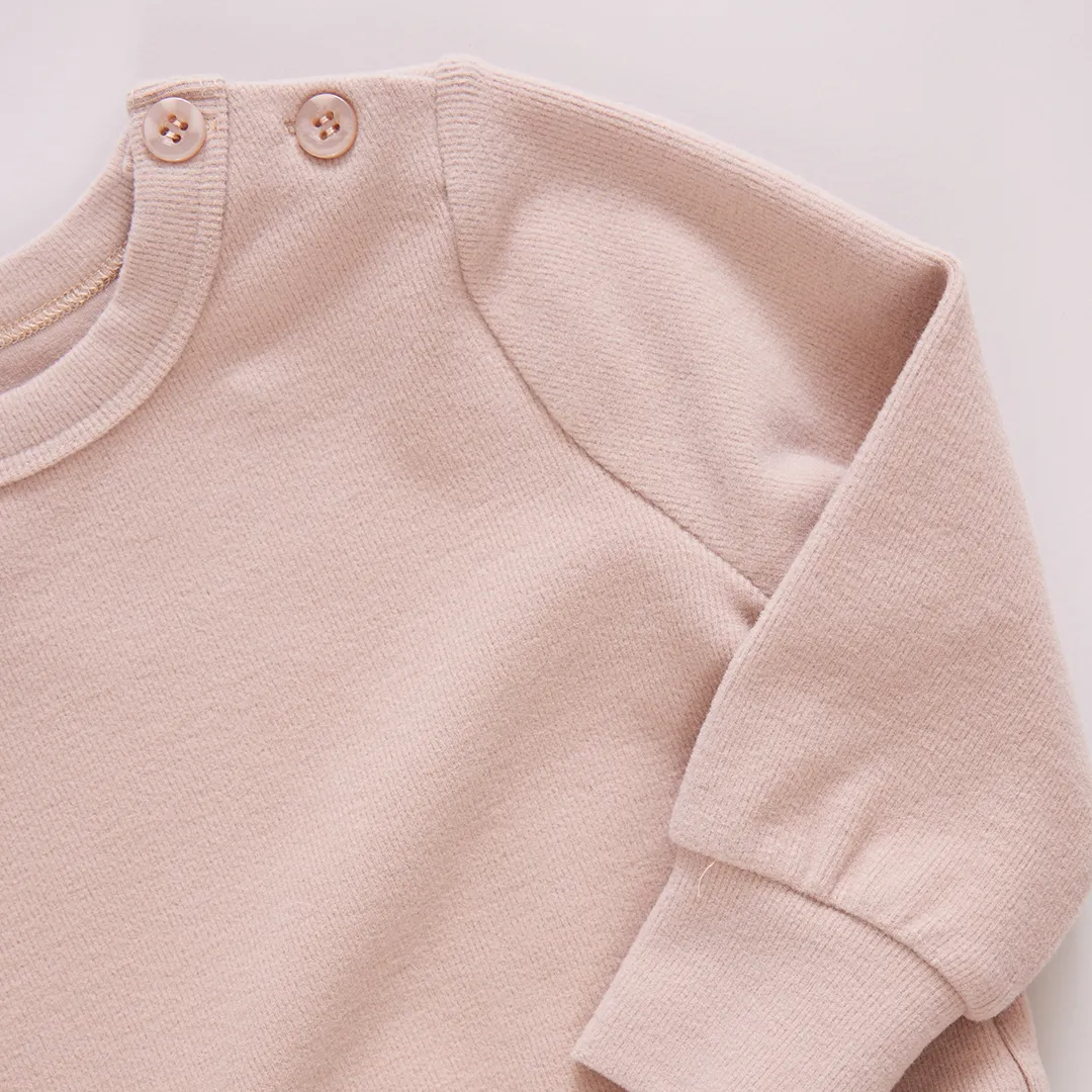 New To The Collection! Our Baby Cordy Set, made from the softest fine wale corduroy, will be the chicest, coziest, and most comfortable outfit you dress your little one in this Fall! The set includes a crewneck top adorned with color matched buttons at the shoulder and easy to move in elastic waist pants with cozy elastic cuffs at the ankle. Available in Beige, Light Blue and Light Pink.