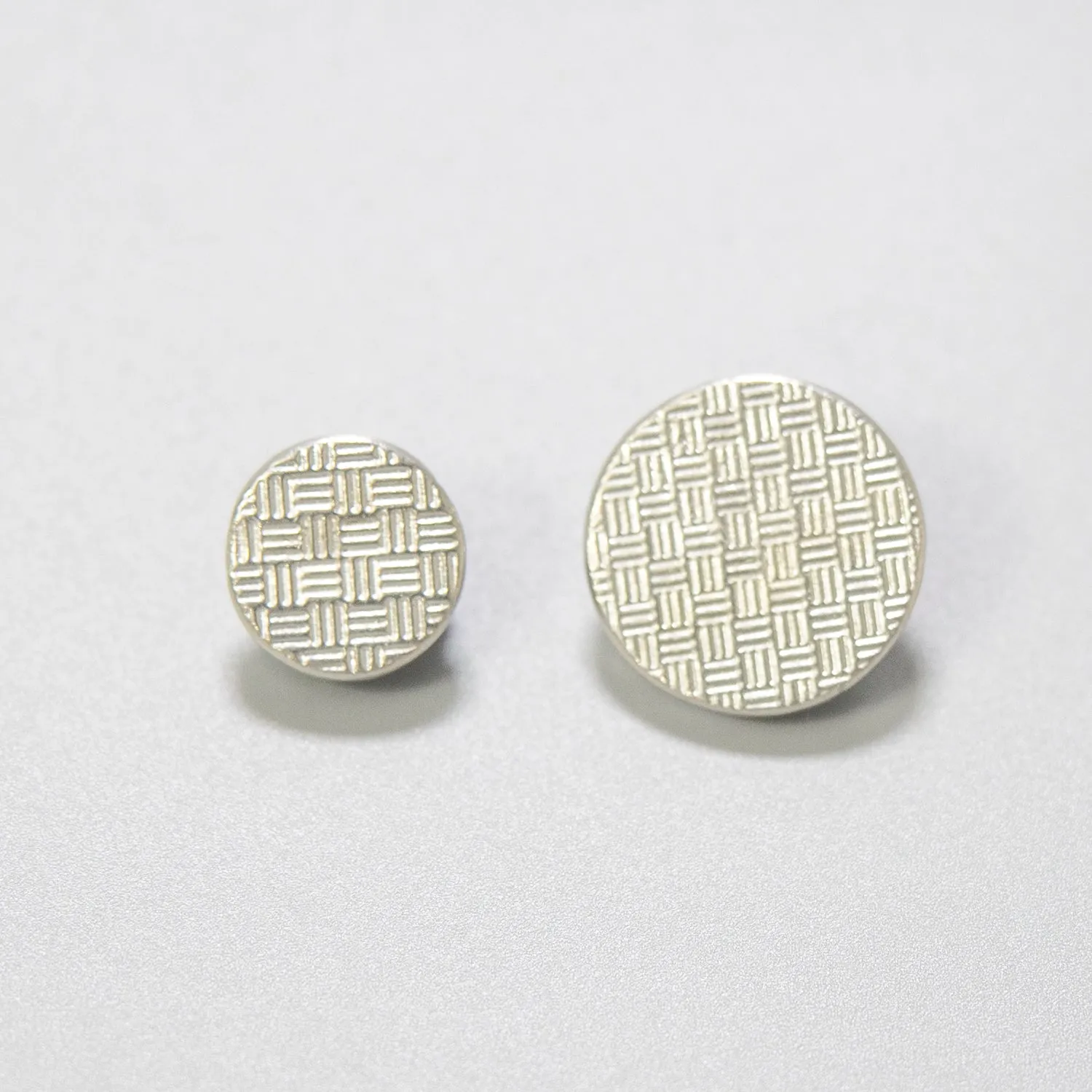 The basket-weave pattern was a popular thread button pattern. In the 18th century, you often found stamped or cast buttons that imitated the popular thread buttons, such as these "Basket-Weave" Pewter Buttons .