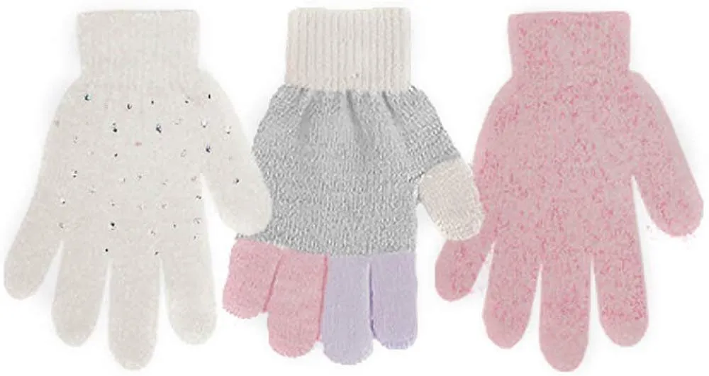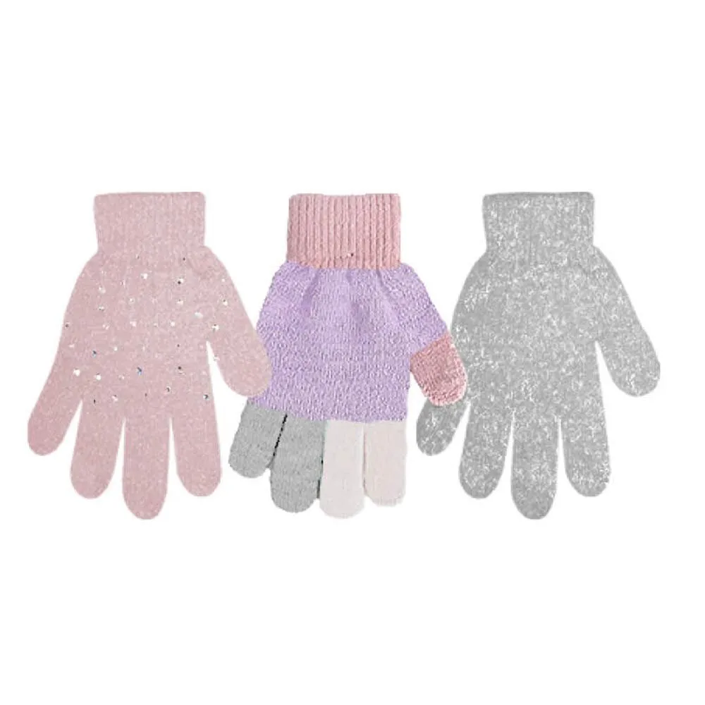 Protect your little girl’s hands this winter with these cute rhinestone embellished magic gloves. The perfect winter accessory to cover her hands and stay warm and toasty in the cold. These gloves are soft, lightweight and cozy, and come in assorted packs of three to match with almost anything in her wardrobe.