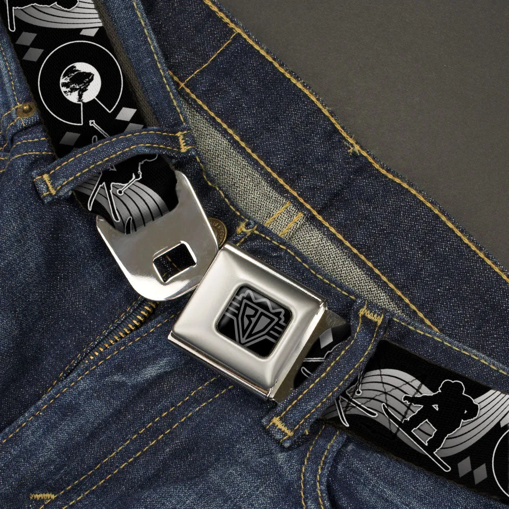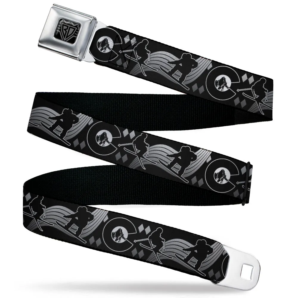 BD Wings Logo CLOSE-UP Black/Silver Seatbelt Belt - Colorado Skier/Snowboarder Black/White/Grays Webbing