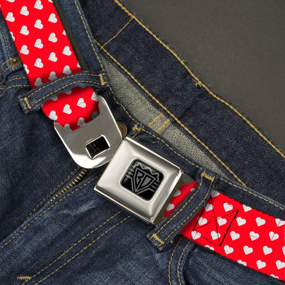 BD Wings Logo CLOSE-UP Black/Silver Seatbelt Belt - Mini Hearts Monogram Red/White Webbing