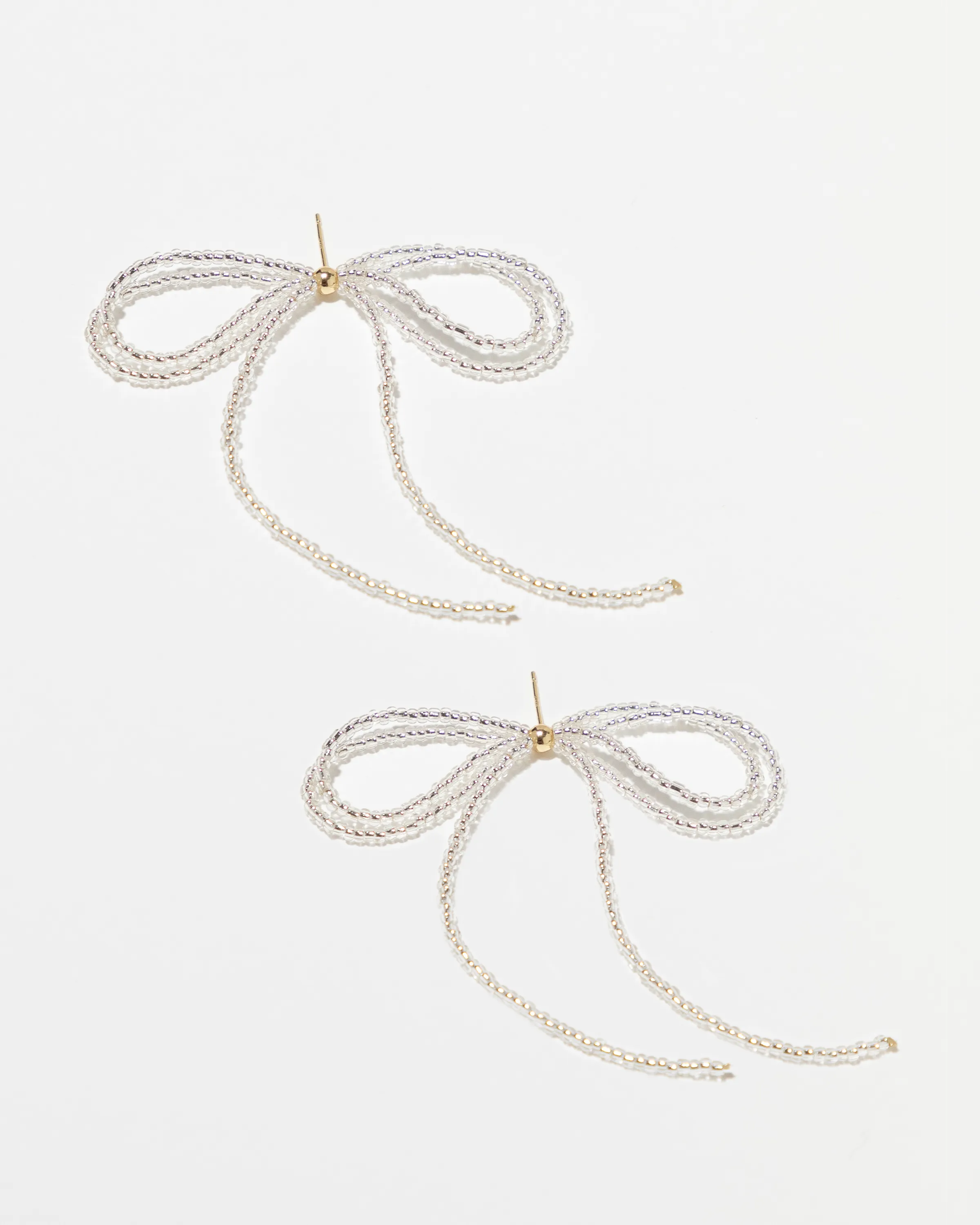 Introducing our Beaded Bow Earrings - dainty and chic, perfect for adding a touch of elegance to any outfit. The adorable beaded bows hang delicately, fastened to a golden stud for a secure fit.