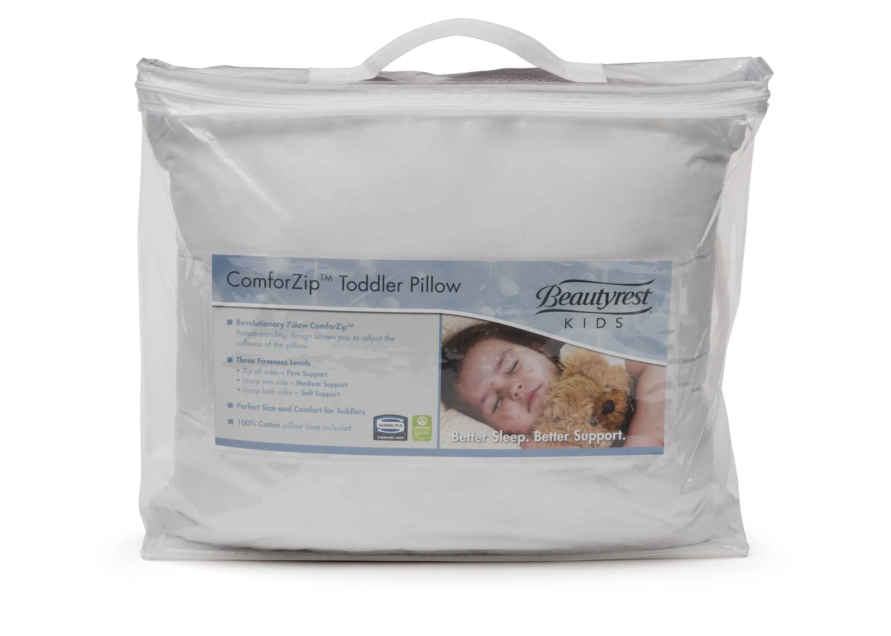 Your little one will zip their way to the perfect kids’ pillow with the ComforZip Toddler Pillow from Beautyrest KIDS. The pillow’s revolutionary patent-pending design allows your child to adjust the firmness level to create a pillow that’s just right from them. For firm support, zip up both sides. For medium support, unzip one side. For soft support, unzip both sides--–the possibilities are as endless as they are comfy. A must-have for children making the transition to a big-kid bed, this pillow will help them get the good night’s sleep they need and deserve with its clever construction. GREENGUARD Gold Certified, the ComforZip Toddler Pillow from Beautyrest Kids is made of materials with low chemical emissions, which means it’s built to ensure the air your child breathes is cleaner. The pillow’s included natural cotton pillowcase is removable, and can easily be machine-washed. Zip it up (or down!) today!