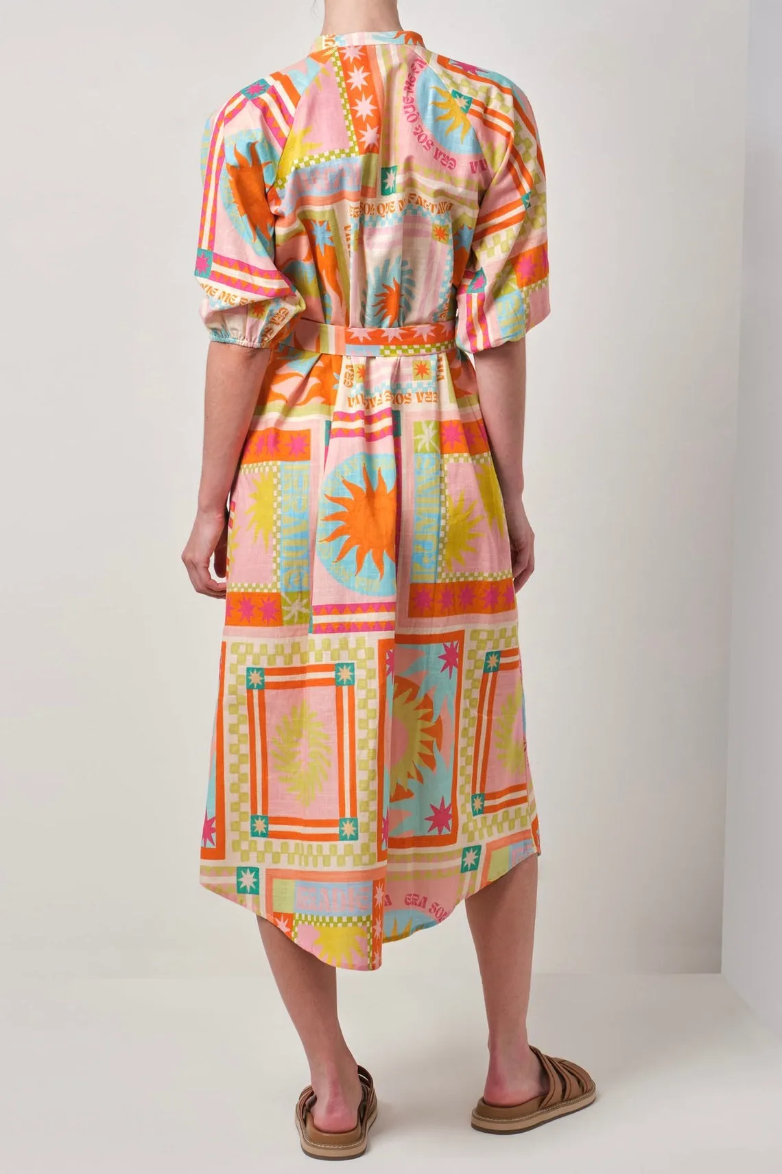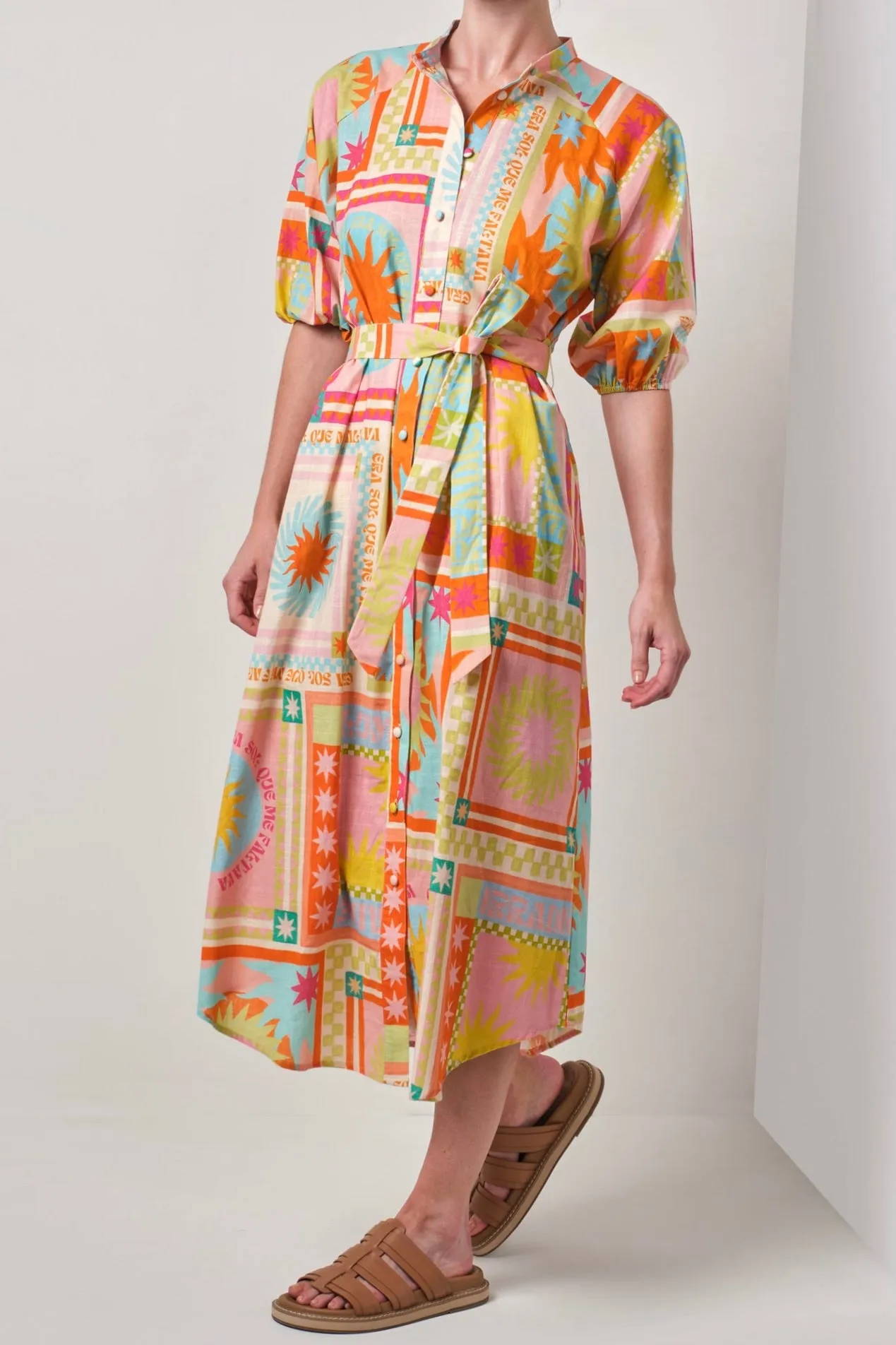 Experience untamed sophistication in the Berlin Dress in lluminae! With its high neckline featuring a mandarin collar and flattering belted waist, this dress exudes an aura of elegance and charm, making it a captivating choice for any special event.