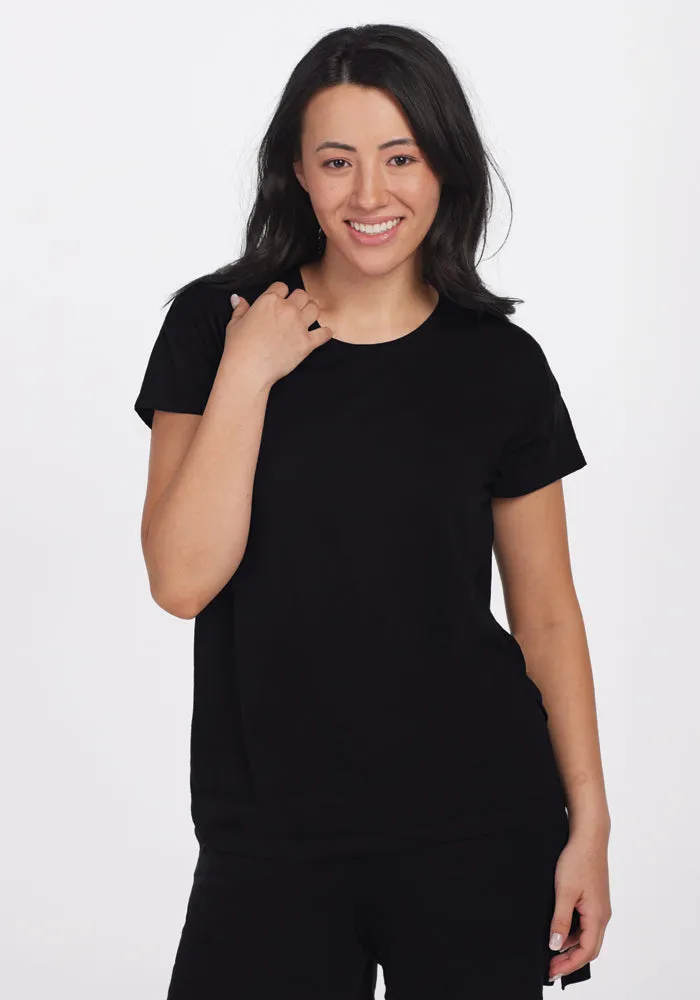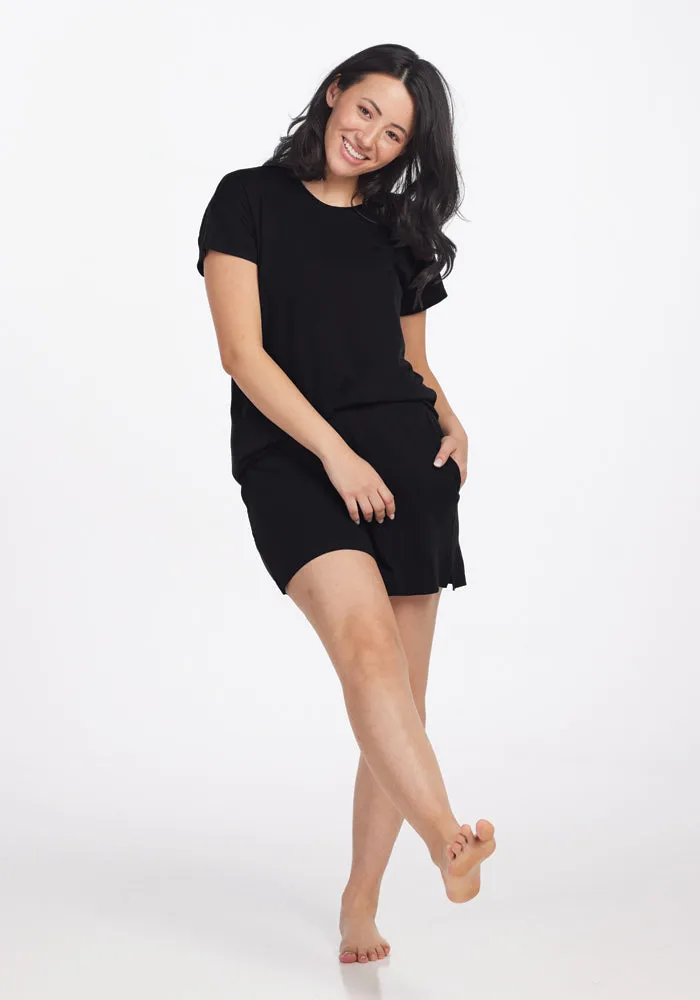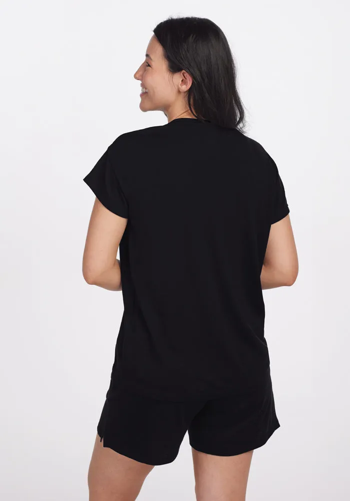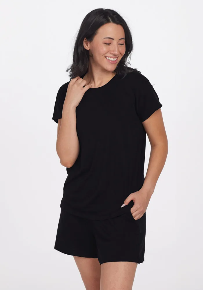 Perfect for life on the go, the Billie Sleep Top in Black is the ultimate travel pajama that combines style, comfort, and functionality.