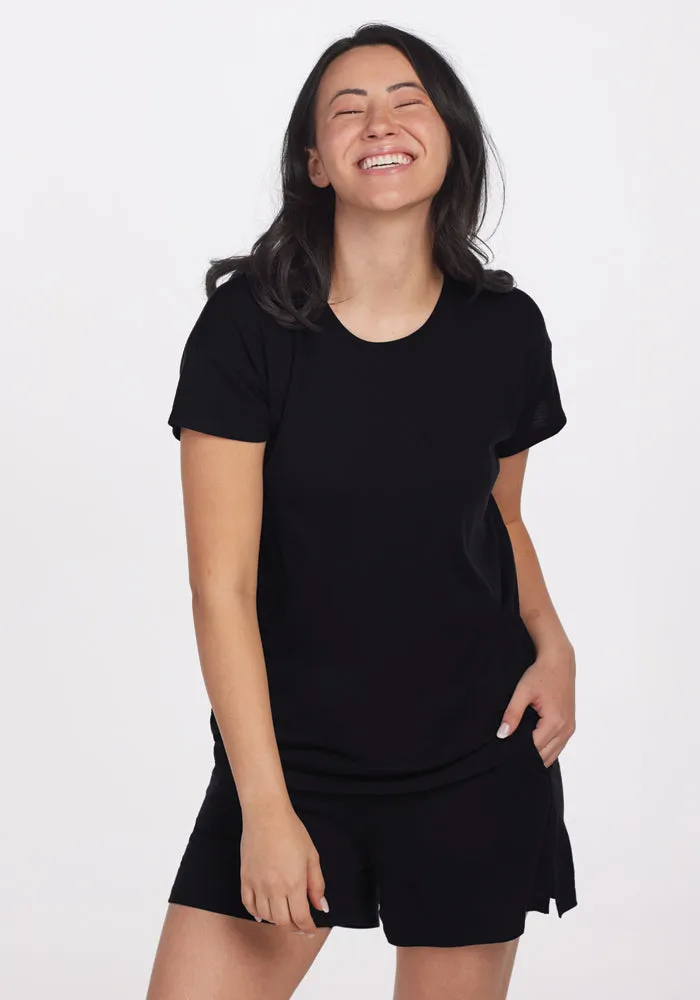 The classic Black color makes it easy to mix and match with other sleepwear or loungewear, while the natural temperature-regulating properties of Merino wool ensure that you stay cool in warm climates and cozy in cooler weather.