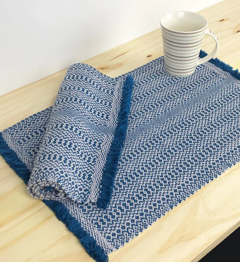 Easy one shuttle weave with luxurious cotton bamboo yarn makes this project go quickly. The pattern looks complex but is simple enough for a beginning weaver.