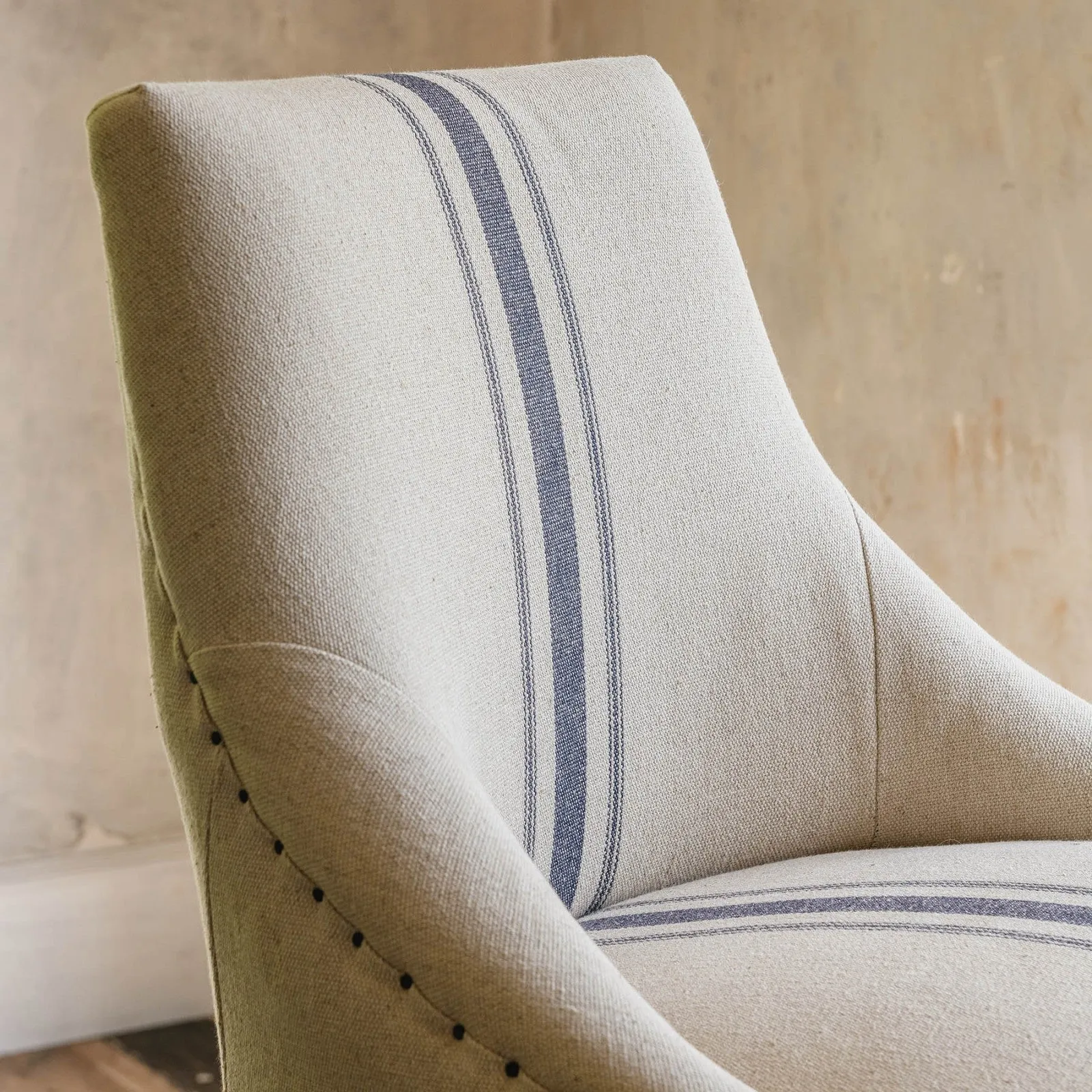 Blue Stripe Bar StoolThis blue stripe bar stool is the perfect blend of style and sophistication and makes a great addition to any home bar or kitchen island. With its high-quality materials and elegant design, this blue stripe bar stool is sure to impress. Dimensions:W55cm H110cm D55cm Seat Height 76cm cm Materials:Oak and Linen If you have any questions, please use the contact link below to speak to us.Or use the CHAT WITH US button for further information. | Delivery:From date of placing order, delivery will be 7-10 working days, |