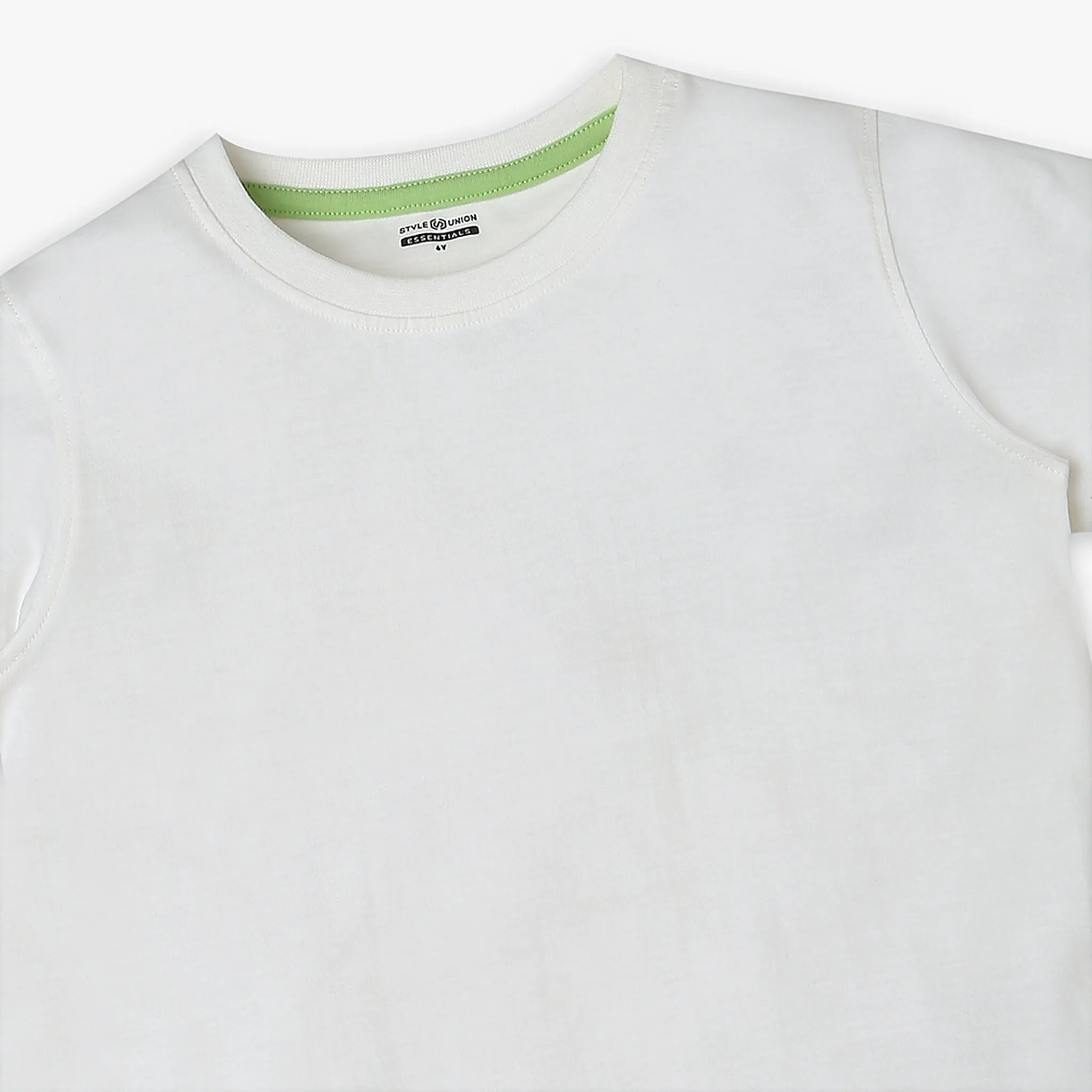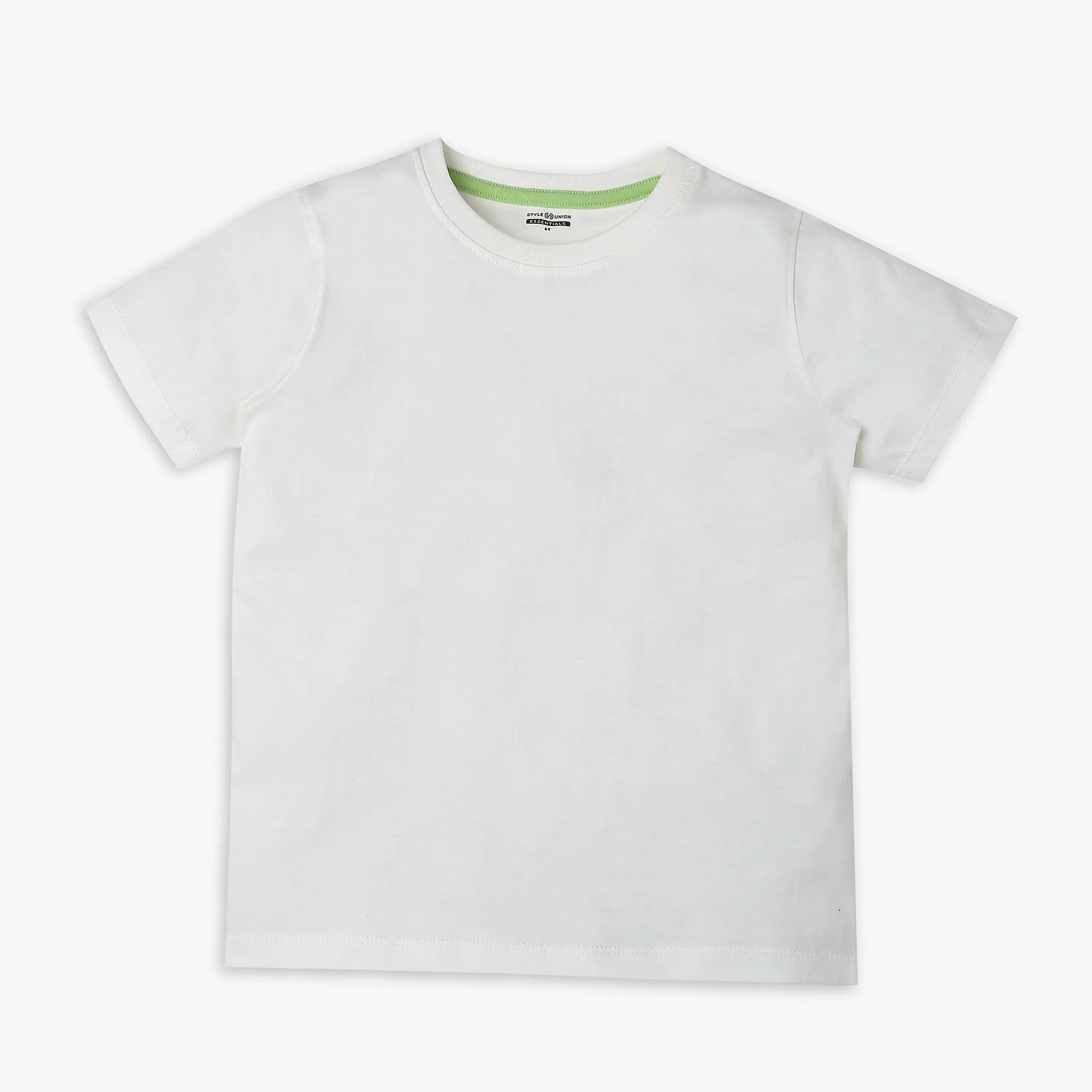 These solid pattern t-shirt has crew neck and half sleeve. Made from cotton, your kid's feel comfortable wearing the product.