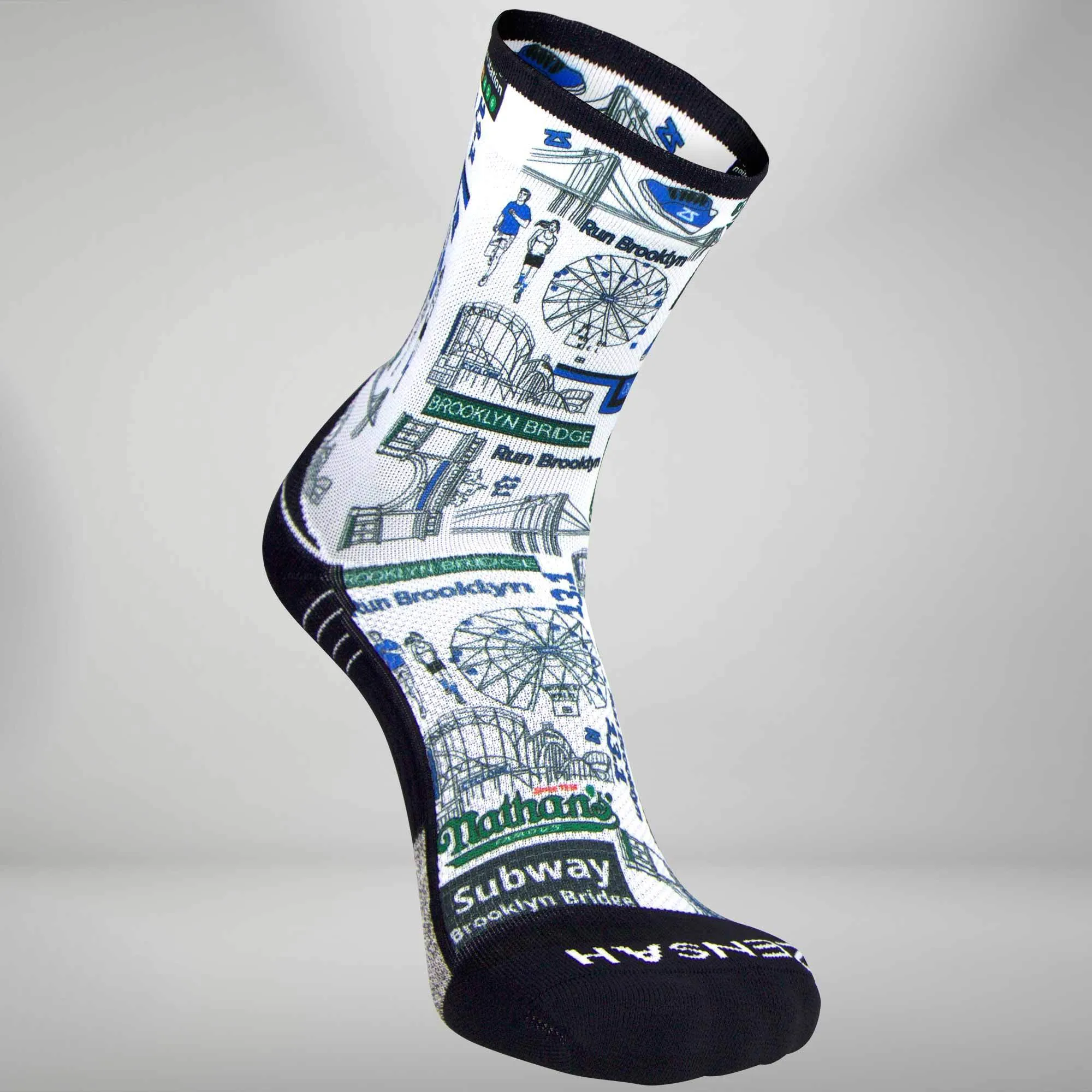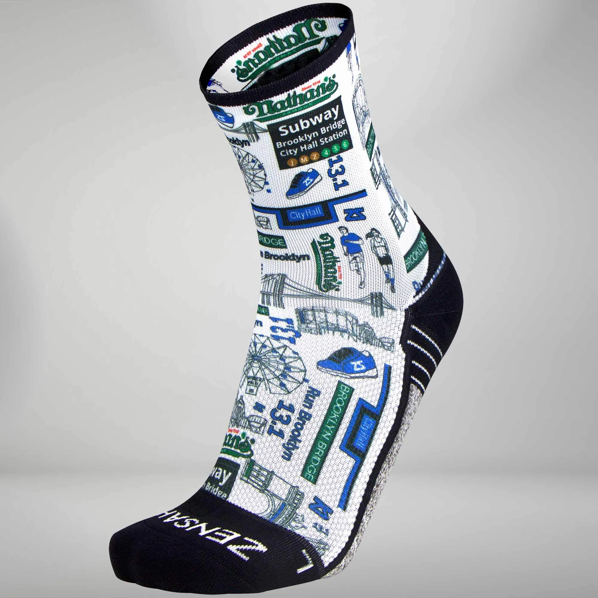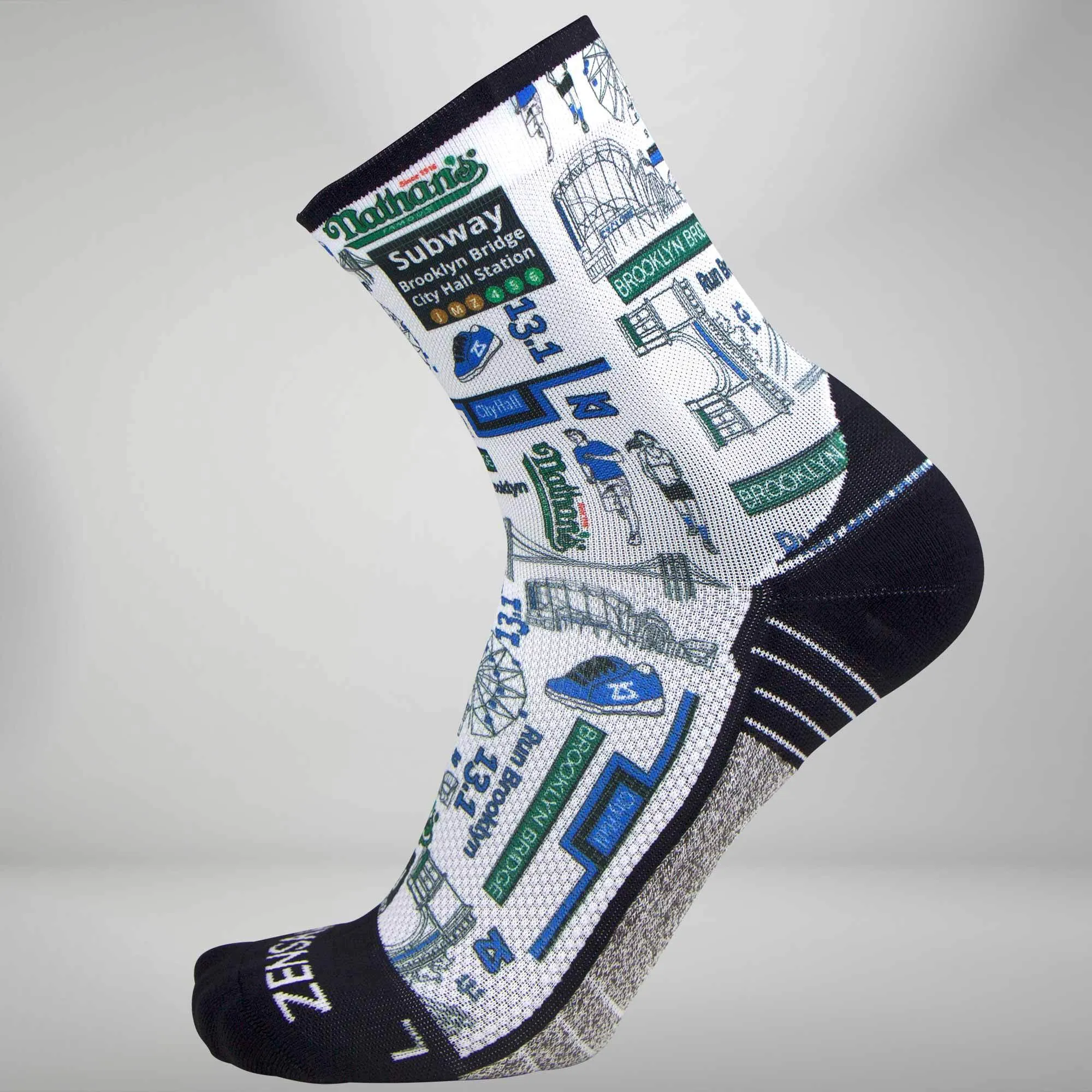 Our Shakeout Running Socks with a Brooklyn limited edition print showing symbolic marathon landmarks! Use to stay motivated while training or remember your accomplishment.
