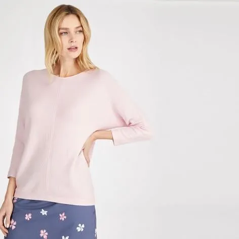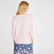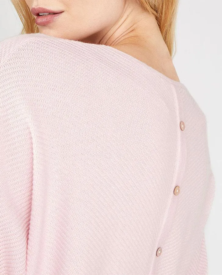 Beautiful ribbing detail and soft camellia pink make this sweater a feminine weekend favourite. Subtle textural changes at the neck and cuffs, plus button detailing down the back, give this piece a contemporary feel.