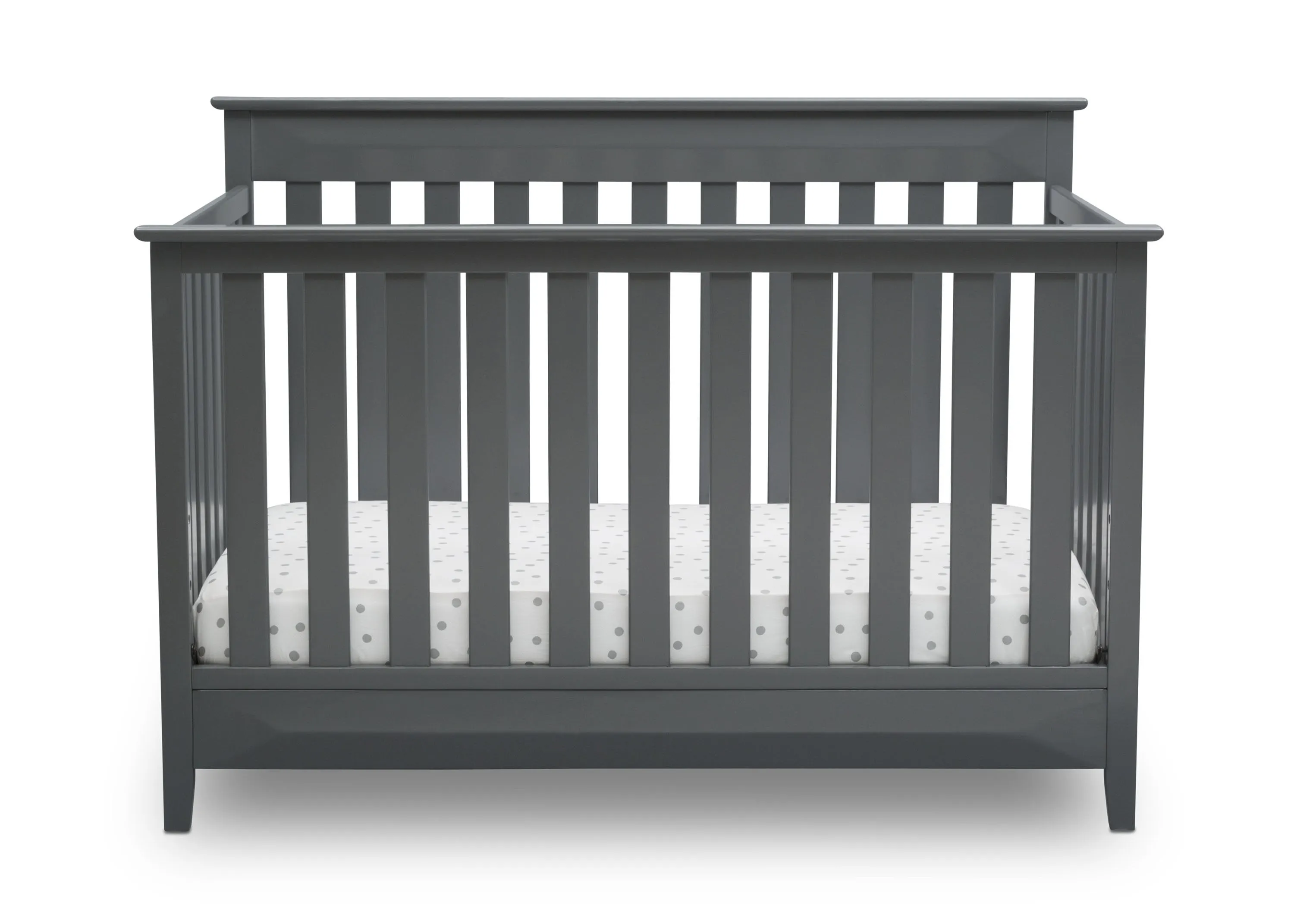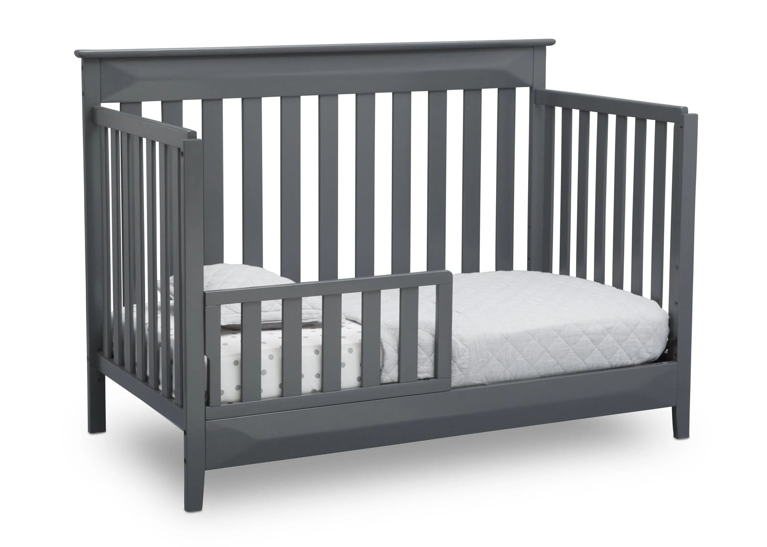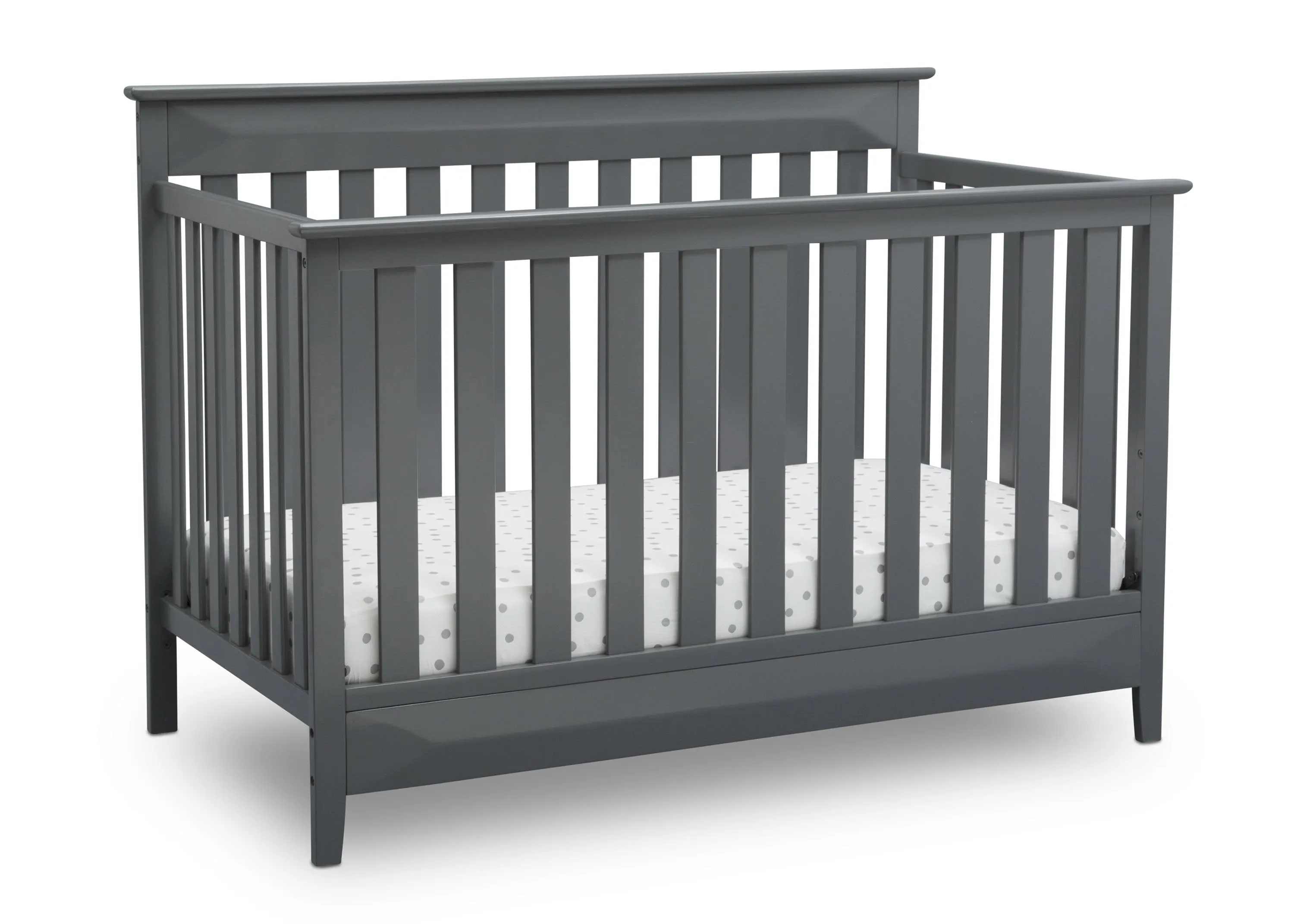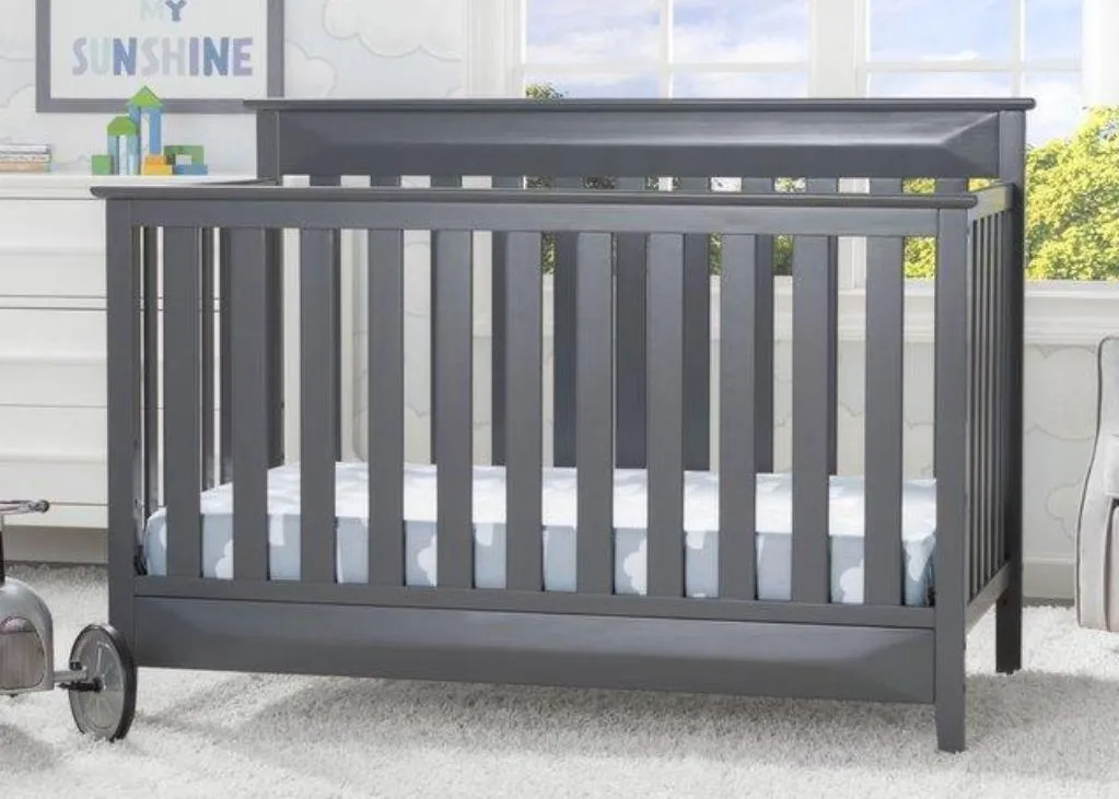 The Cameron 4-in-1 Convertible Crib from Delta Children is a timeless option for your baby’s nursery. Crafted of strong and sturdy wood, this classic baby crib features three-dimensional sculptural detailing on the headboard and footboard panels for added interest while the airy slats all around offer a clear view to your little one. The crib’s grow-with-me design adapts to each stage of your child’s life. As a crib, it features an adjustable height mattress support that allows you to keep your baby safe by lowering the crib mattress as they begin to stand. When your little one is ready to make the move to a big-kid bed, the crib converts into a toddler bed, daybed or full size bed (Daybed Rail included; Toddler Guardrail and Full Size Bed Rails sold separately). Available in Charcoal Grey.