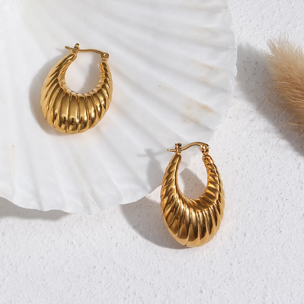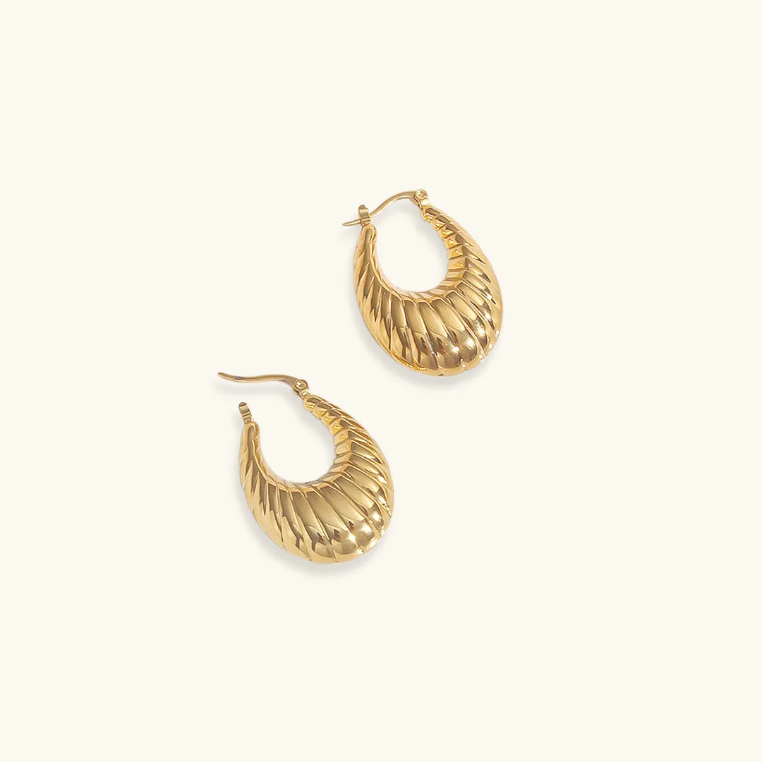 Adorn yourself with a touch of elegance. The Camila croissant hoops boast a sleek, textured design that delicately embraces any attire combination of your choice for a discreet, yet rather captivating shimmer... And yes, they're waterproof as well giving you a lot less to worry about.