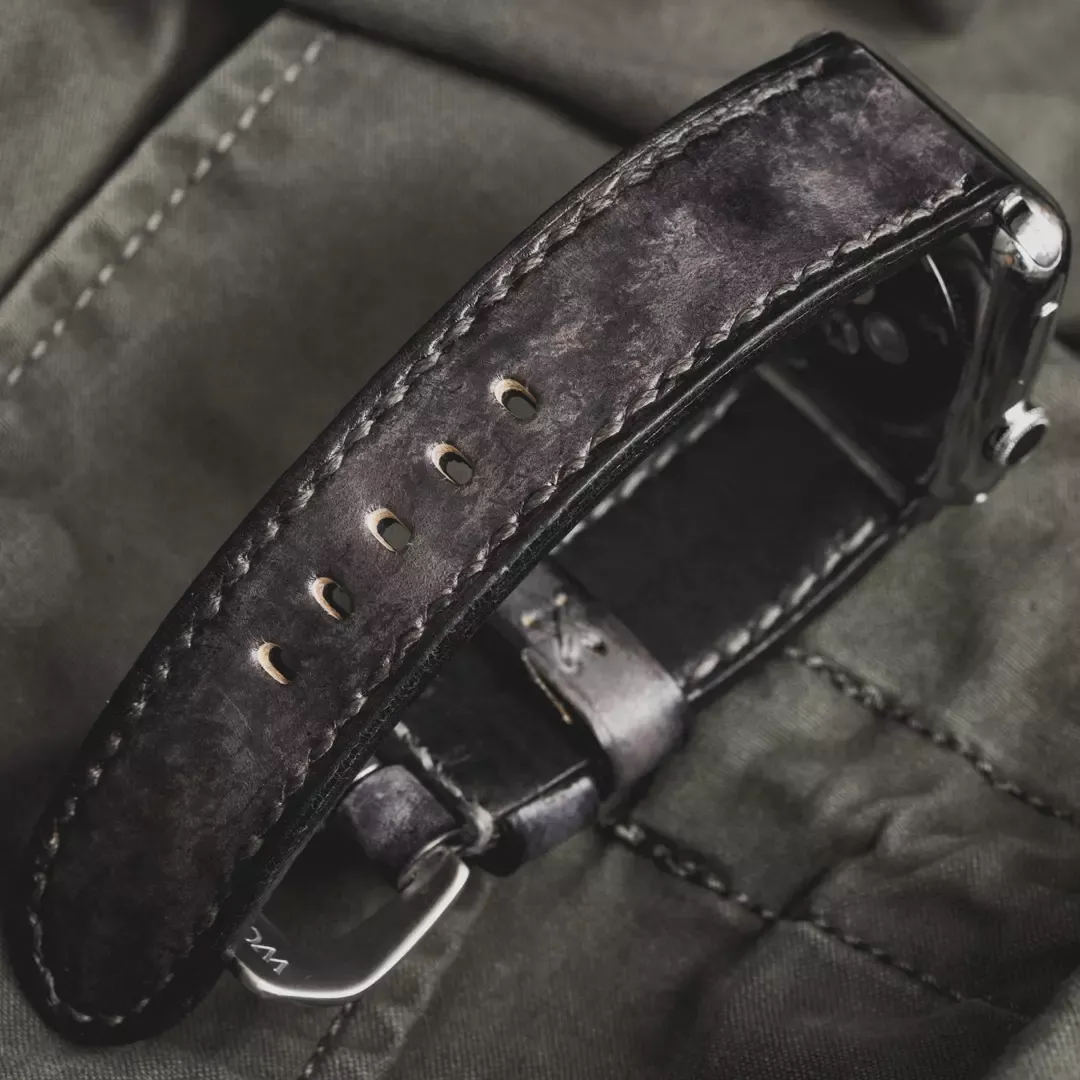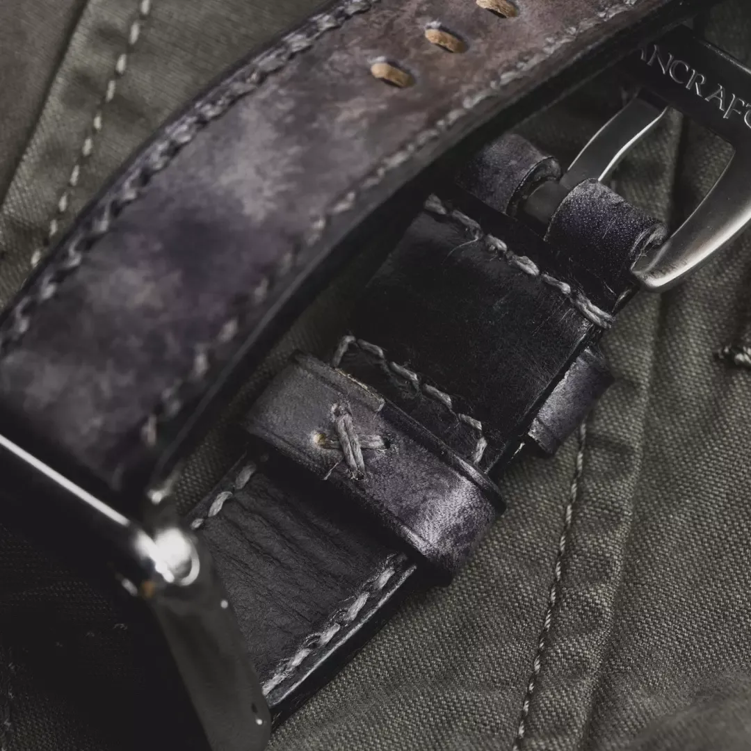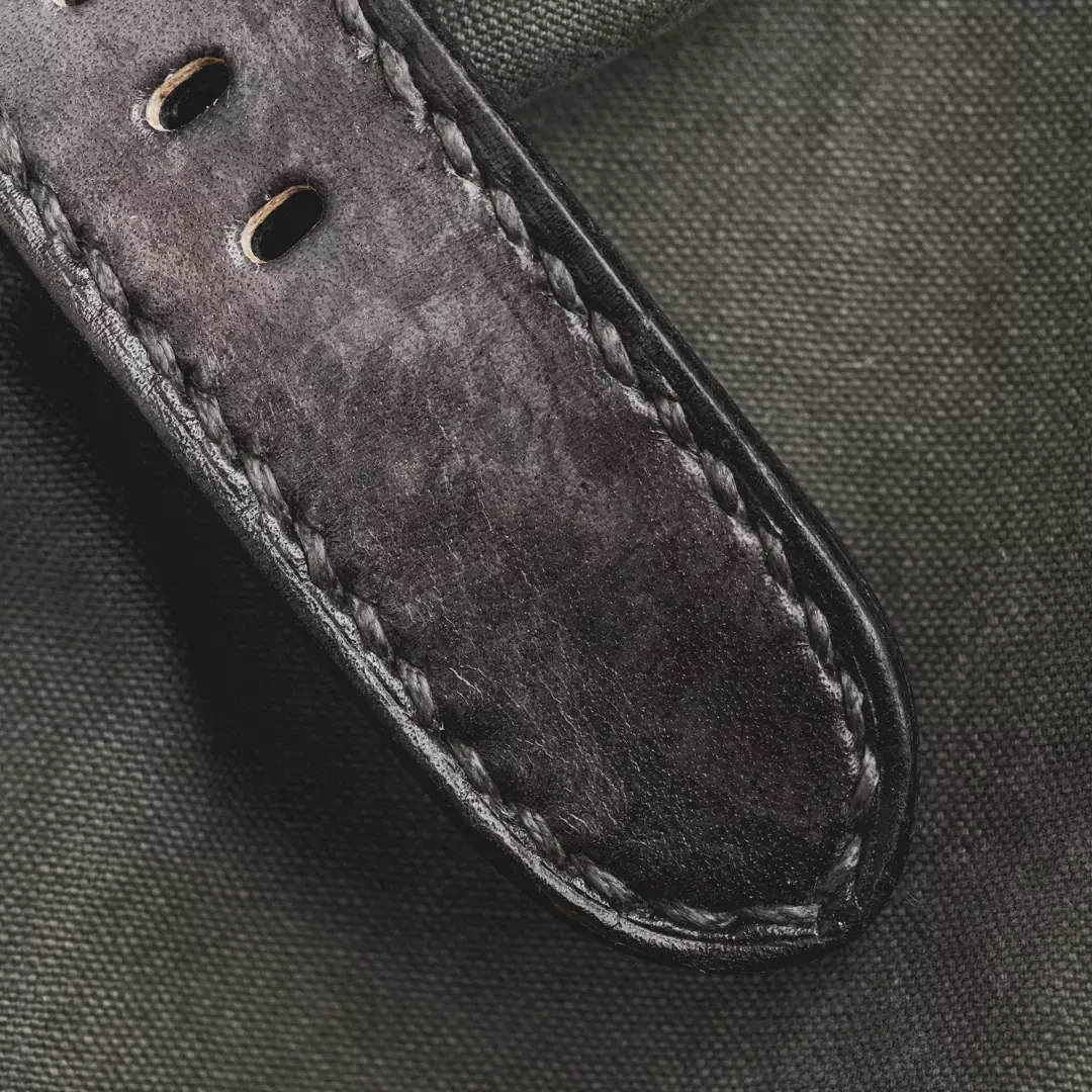 The leather edge is first sealed with edge paint for humidity resistance, and then repeatedly layered with iron-heated waxed coating