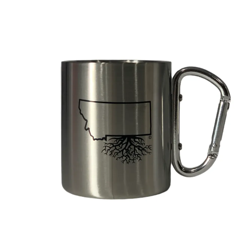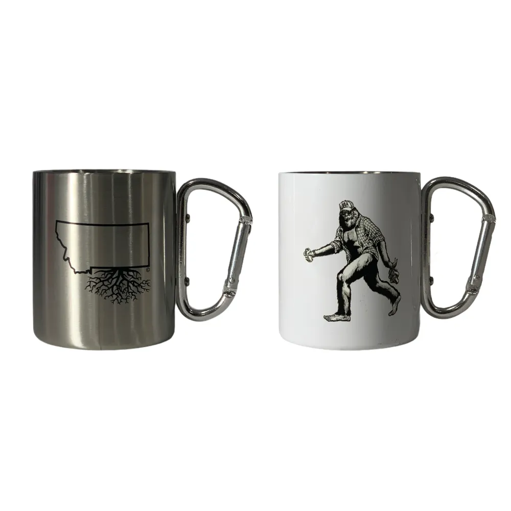 Introducing our Carabiner Mug - the ultimate accessory for any adventurer. With a high-quality stainless steel construction, it keeps drinks hot or cold for hours. A carabiner handle clips to your backpack or gear for easy access. The perfect companion for any outdoor adventure, this mug lets you stay hydrated and show off your state pride. Make a bold statement and stay refreshed with our Carabiner Mug.