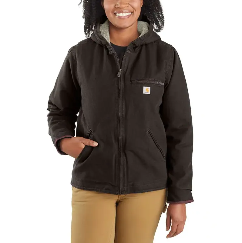 The Sierra Jacket comes in a 12-ounce 100% cotton sandstane duck. Our warm Sherpa lining runs through the body and hood of the jacket. The sleeves are lined in quilted nylon. Rib-knit storm cuffs also keep the cold at bay. The coat has two convenient interior pockets, two hand pockets, and features a handy left chest pocket that zips shut. Main seams are all triple-stitched for extra strength. And a bi-swing back design and pleated elbows add to your comfort and easier on-the-job movement.