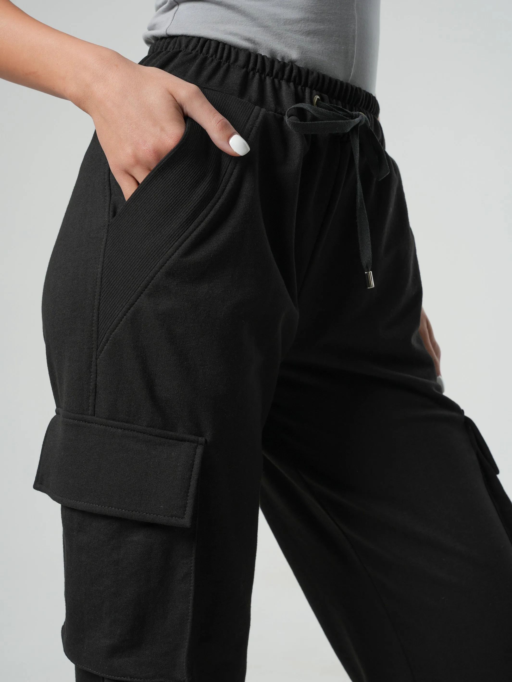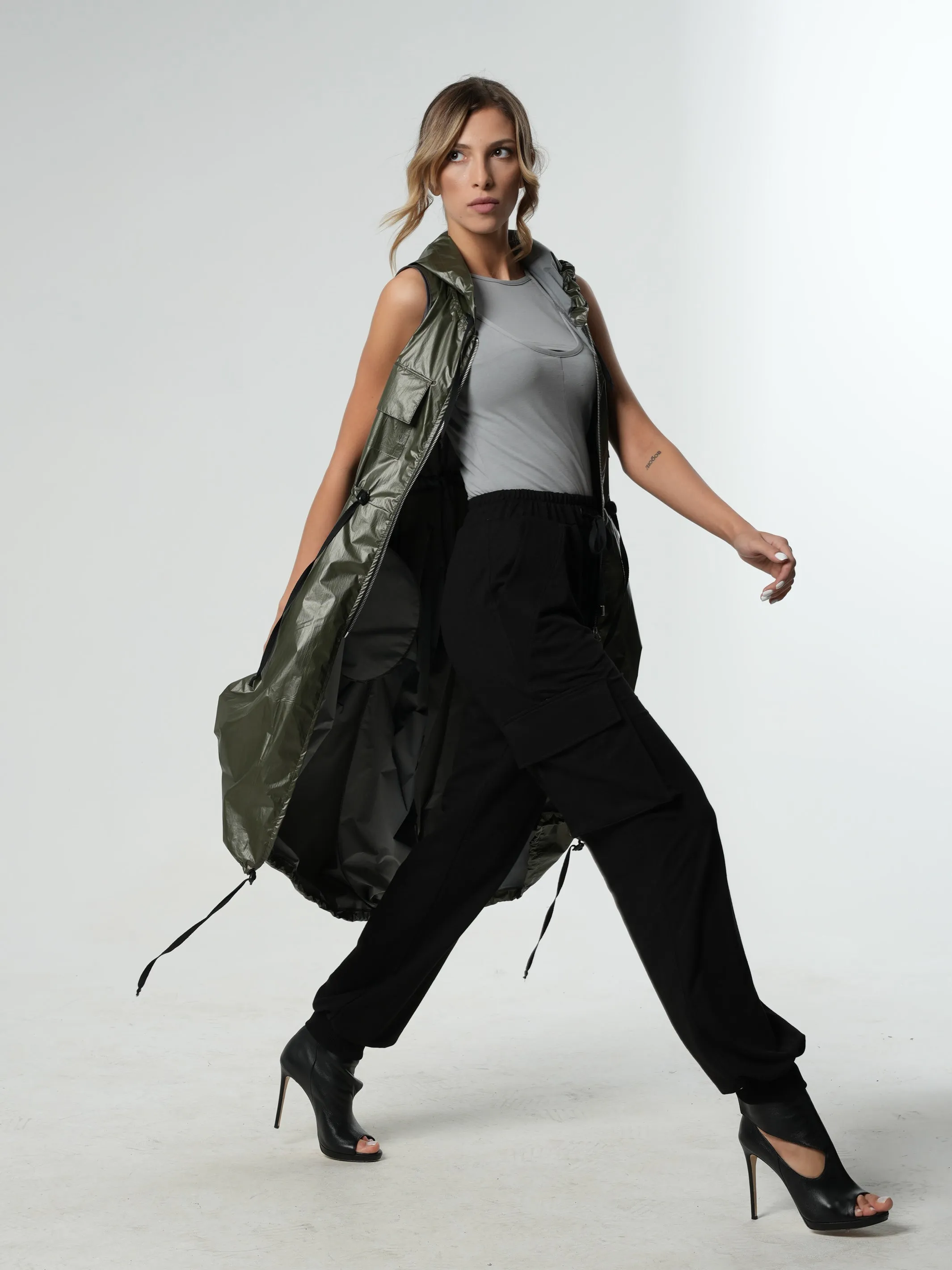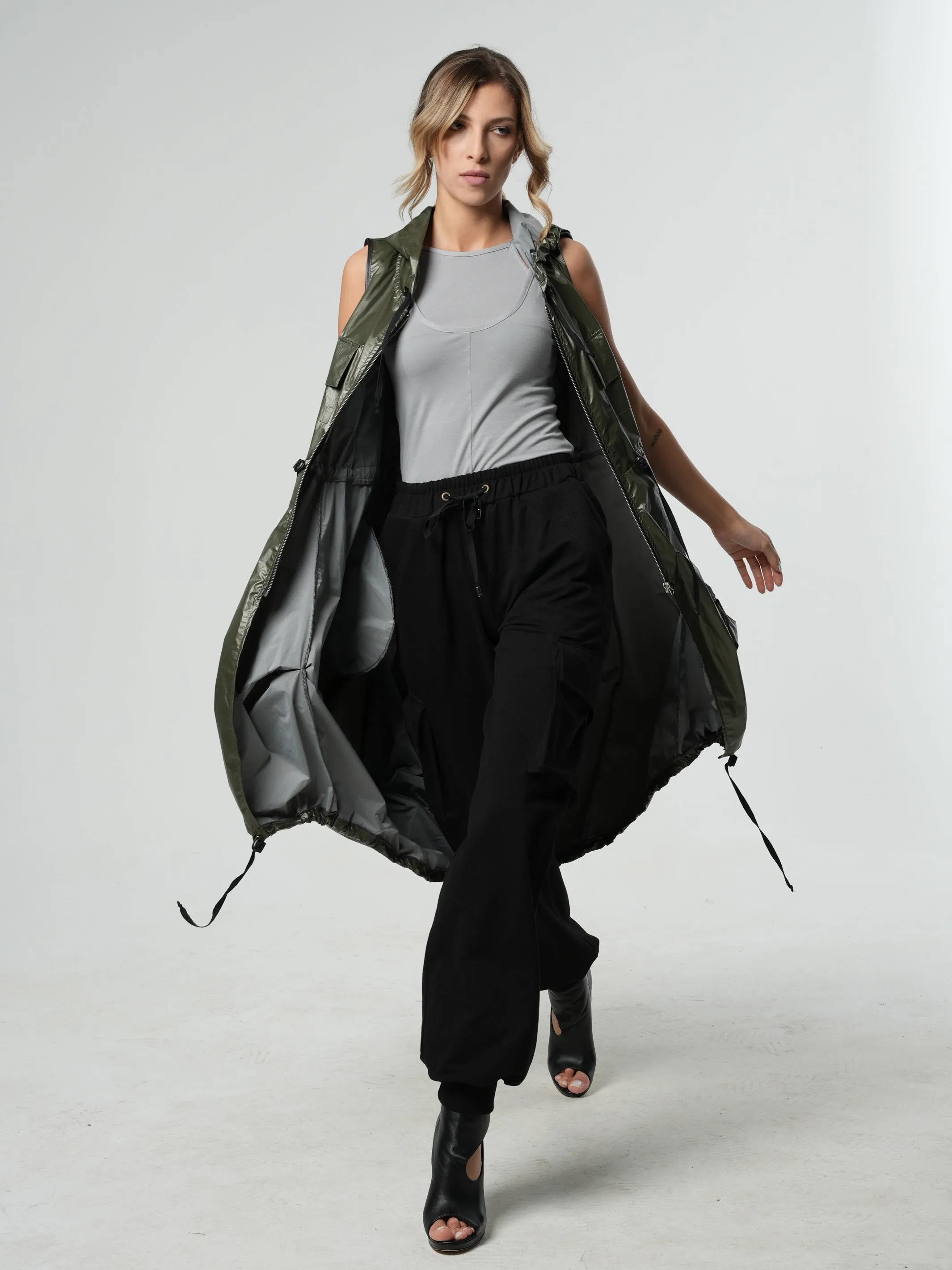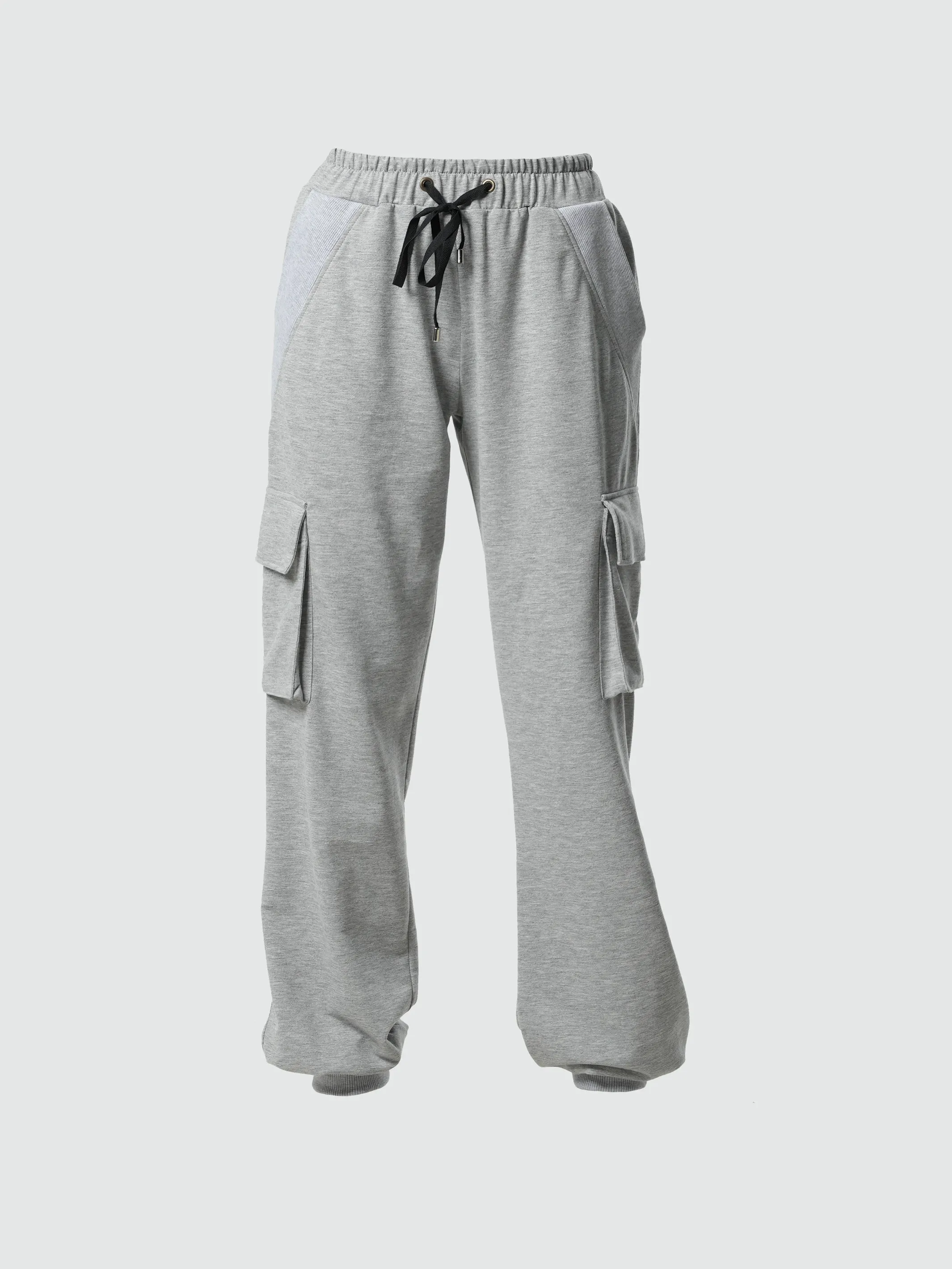 They have a total of 4 pockets - 2 on their sides and 2 at the front. There is a ribbed material detail on the cuffs and pockets. Their length is about 109 cm/ 42.9''.