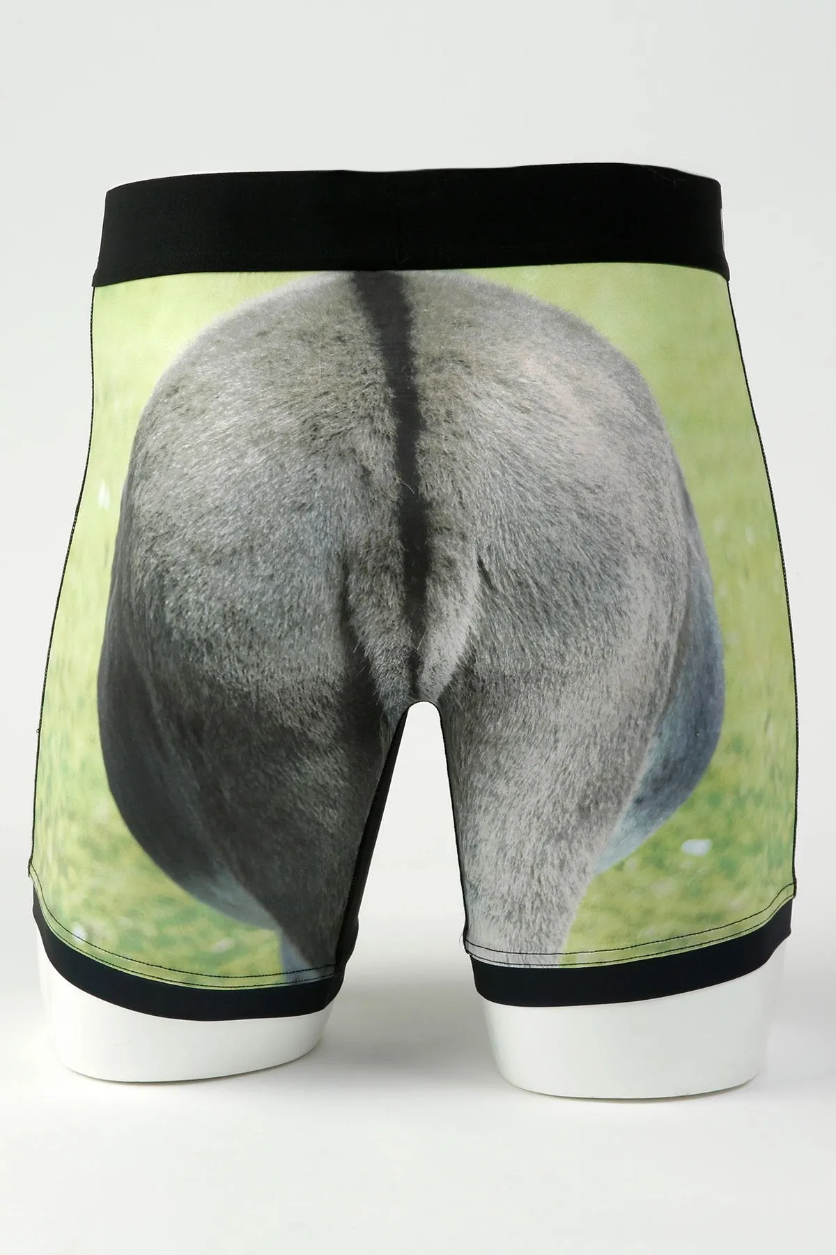 The perfect boxers for a Jack of all trades, these donkey-themed boxers kicks it into gear to work just as hard as you do. Multi-colored poly-spandex construction features a regular fit, four-way stretch moisture wicking fabric, contrast topstitch, no-ride leg seams, tag-free design, jacquard waistband with logo and antimicrobial treatment.