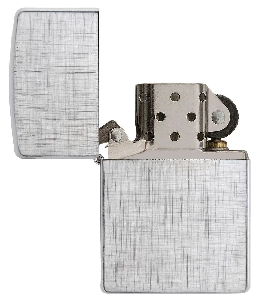 Zippo’s classic brushed chrome finish takes on a new look! Directional brushing results in creative design patterns with the enduring appeal of traditional brushed chrome, but with a fresh new perspective. The linen weave pattern on this windproof lighter gives it a simple but textured look and feel. Comes packaged in a gift box. For optimal performance, fill with Zippo lighter fuel.