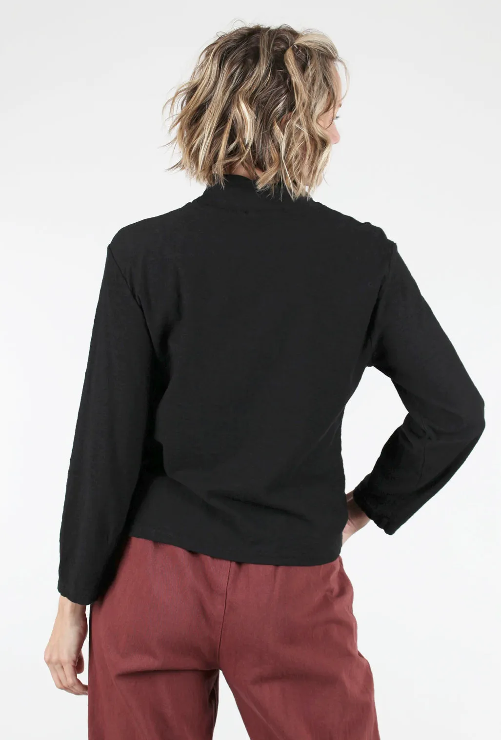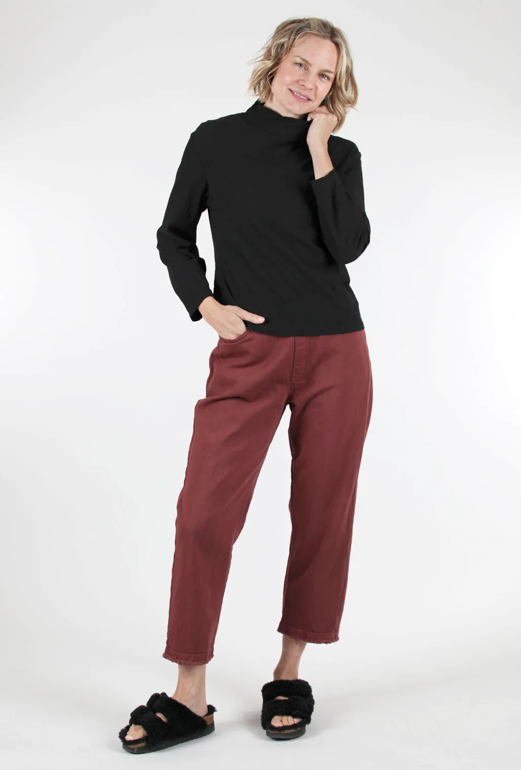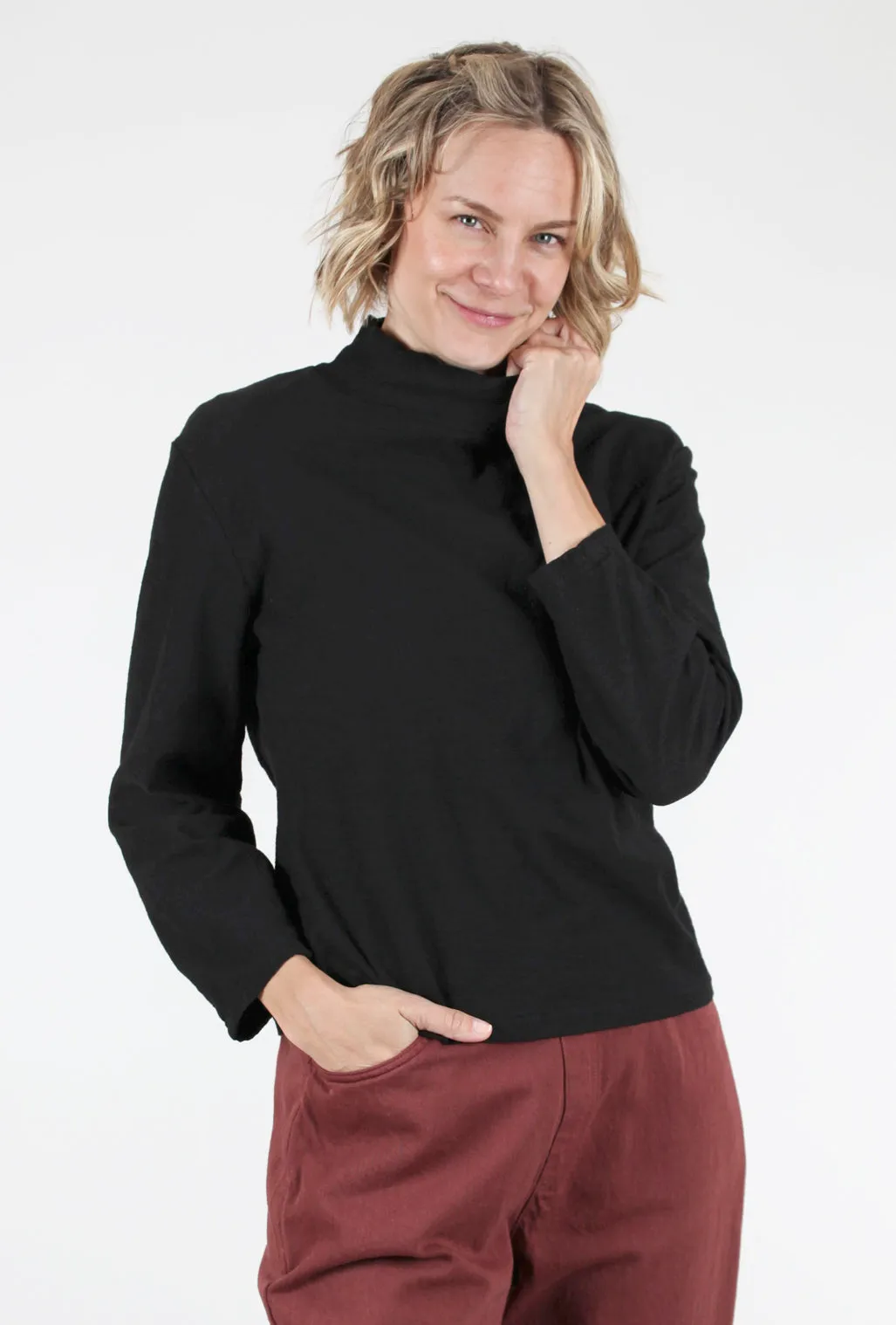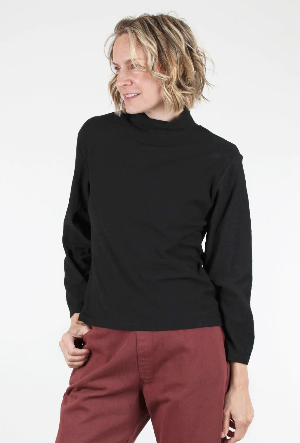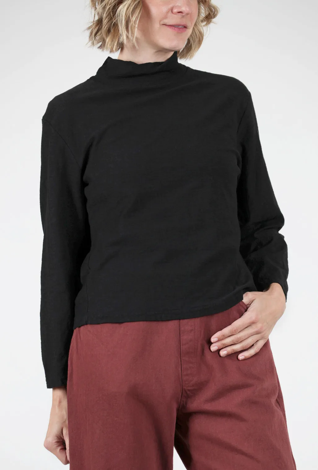 Done in Cut Loose's signature cotton-linen slub jersey, this trim top has a mock turtle neckline, long full sleeves that nip in a bit at the wrist and a deliberately boxy silhouette. The hip-skimming length makes this a terrific partner to higher-waisted bottom. Running true to size.